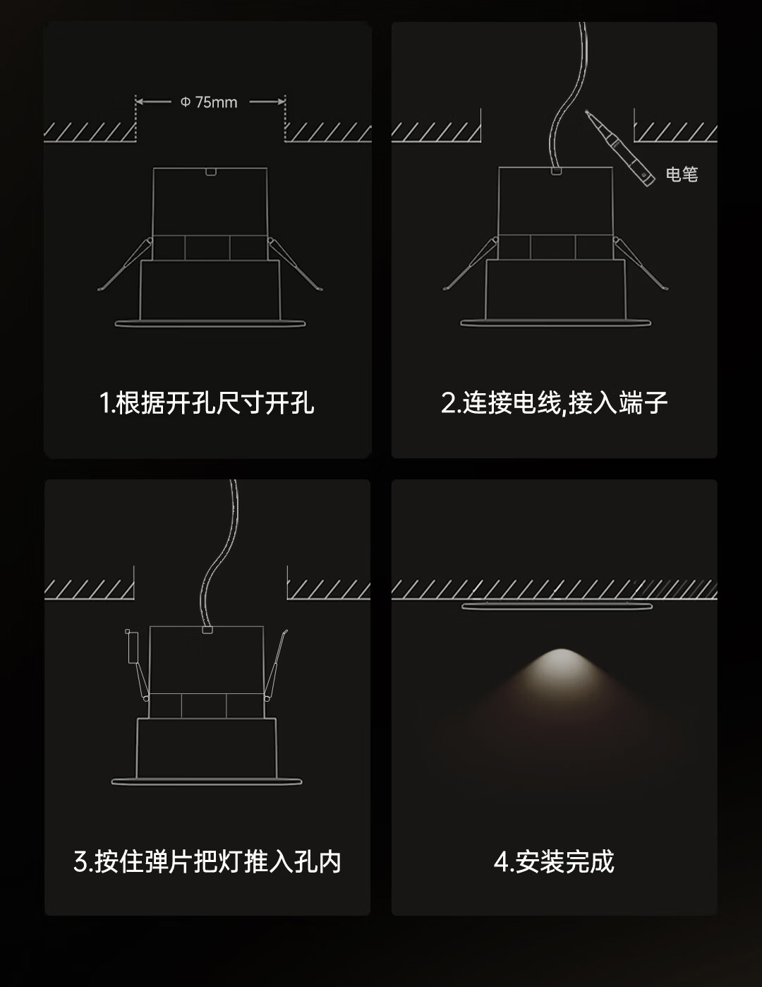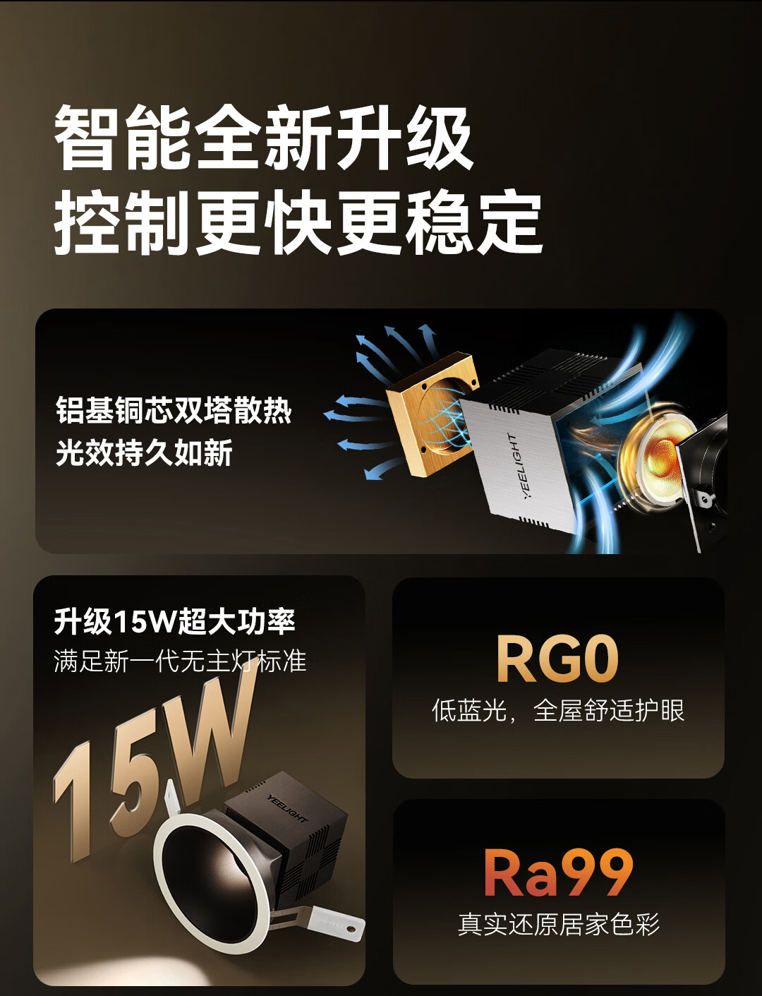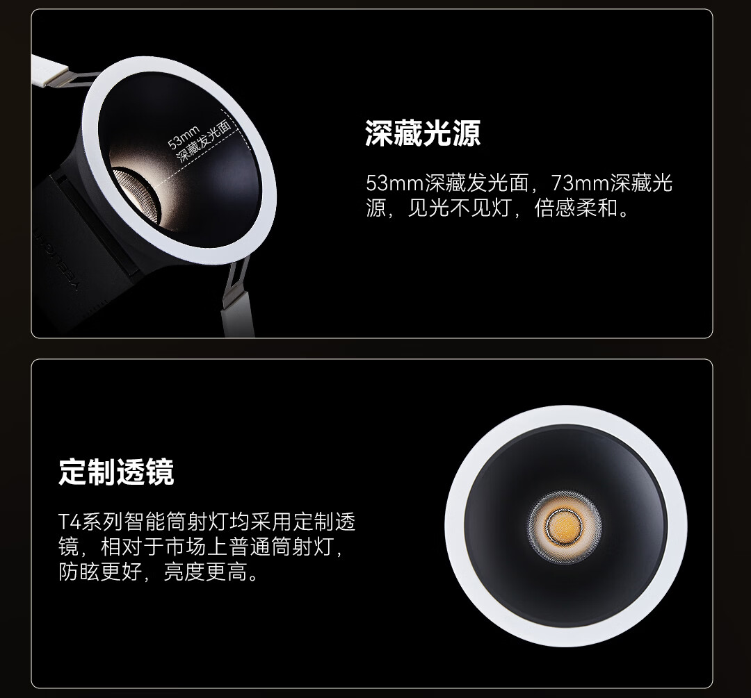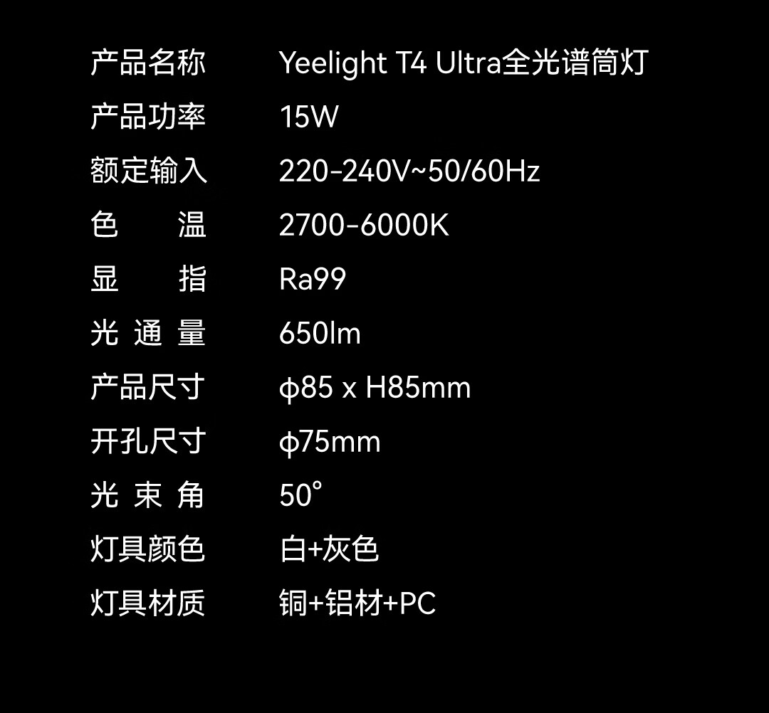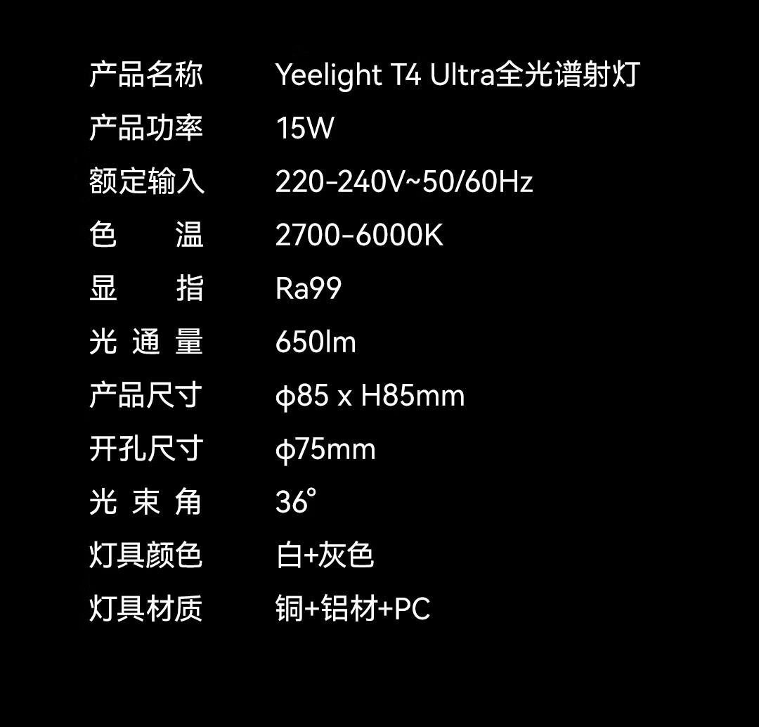 Yeelight智能窄边筒射灯T4 Ultra嵌入式照明全光谱护眼灯卧室客厅走廊灯 T4 Ultra射灯-15W-Ra99-黑杯