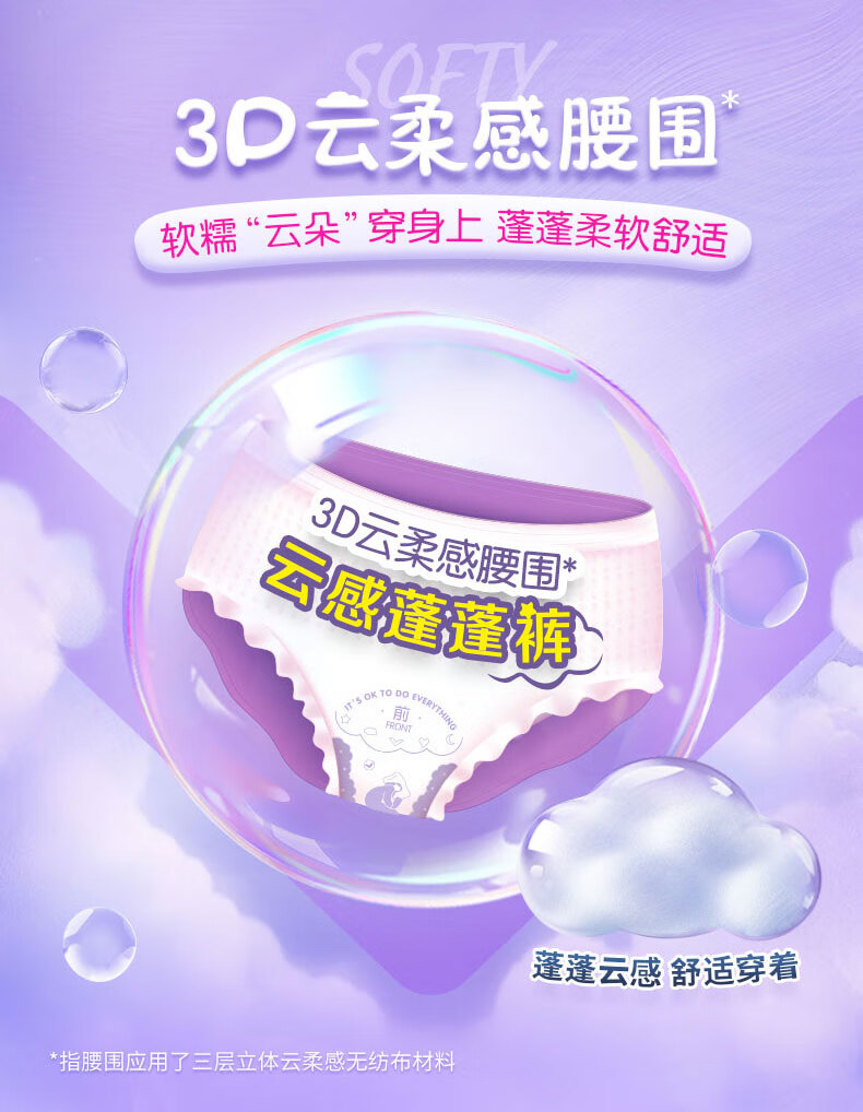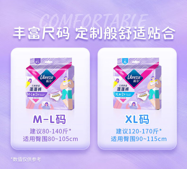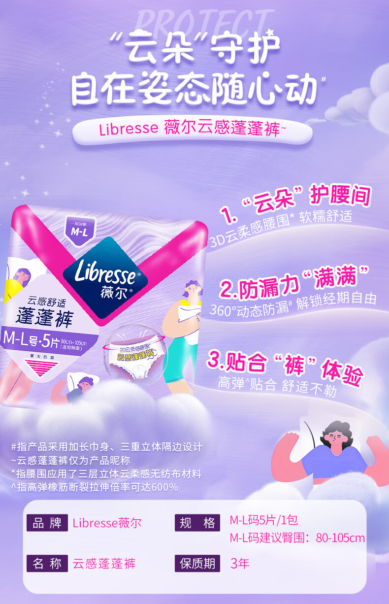 薇尔云感蓬蓬裤贴合加长防漏M-L码5片安睡裤京东自营姨妈巾
