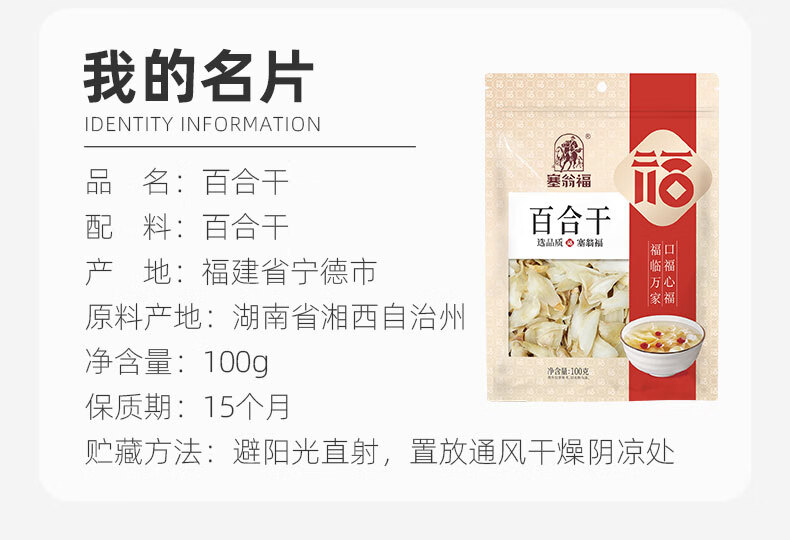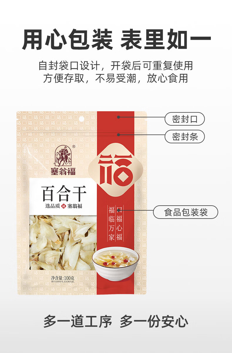 塞翁福百合干100g 莲子枸杞银耳羹配料 干货 煲汤食材