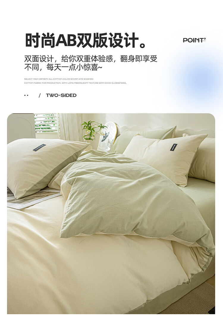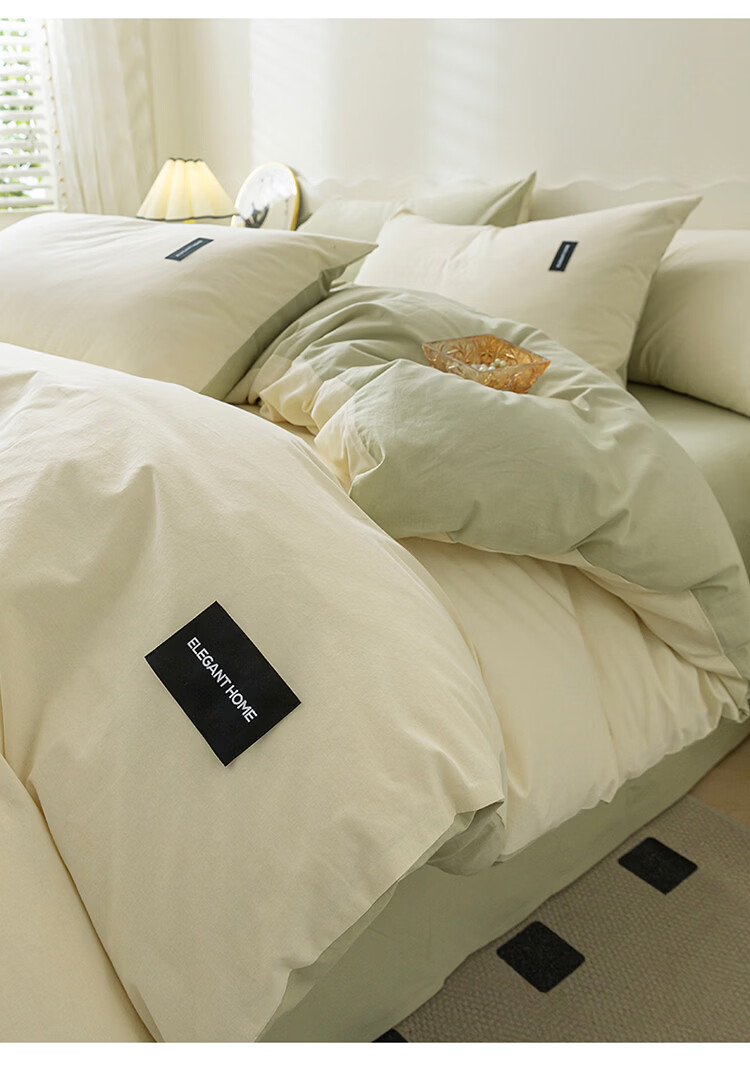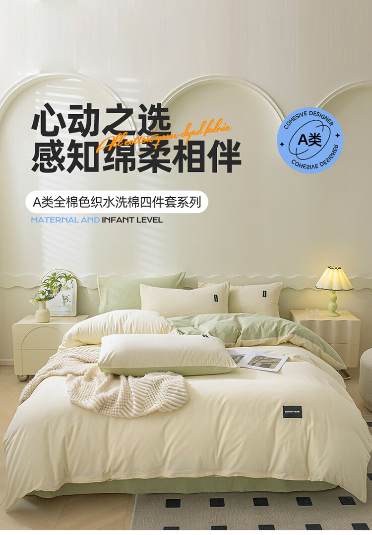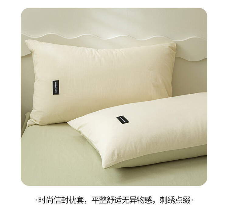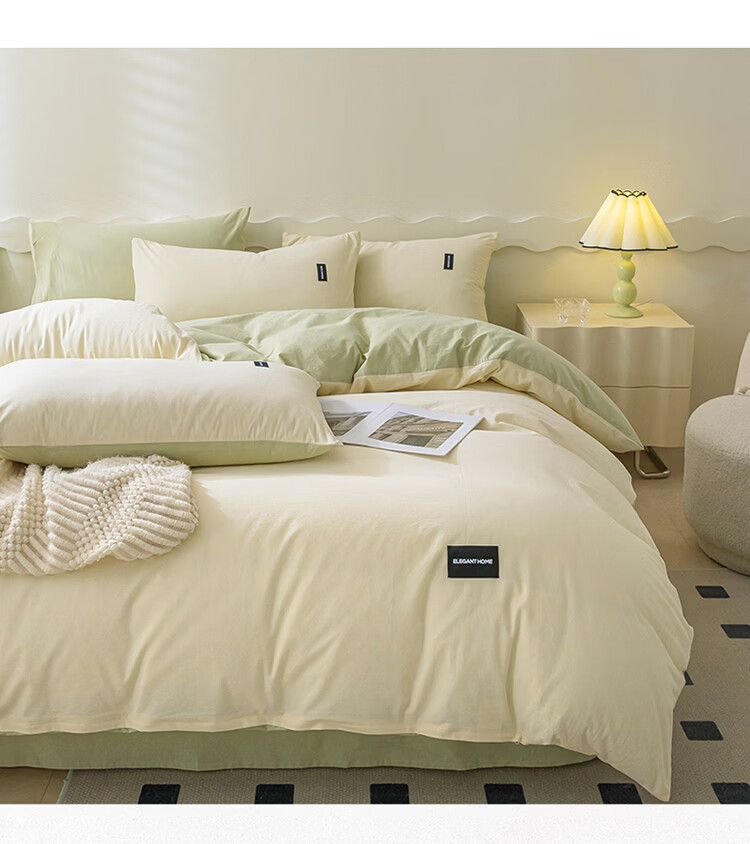 无印良品A类100%纯棉床上四件套全棉家用可裸睡床单被套床笠款床品三件套4 奶白薄荷绿【A类全棉面料】 1.8m 床单款 四件套-被套200x230cm