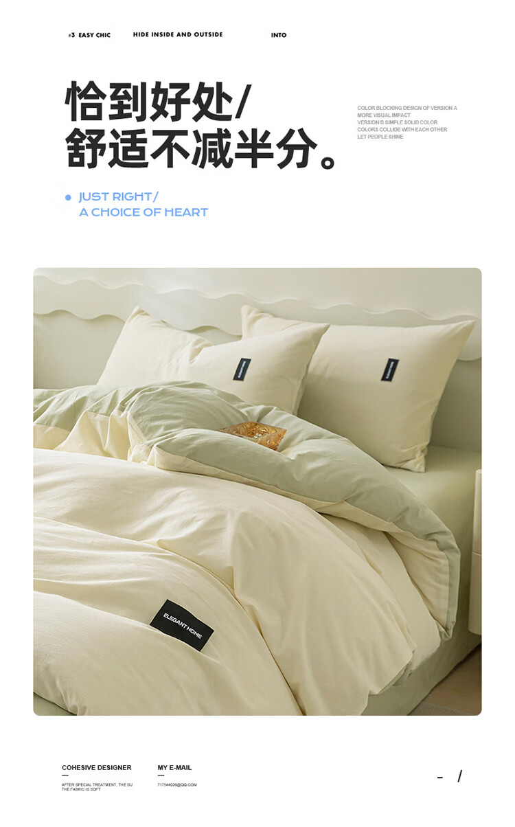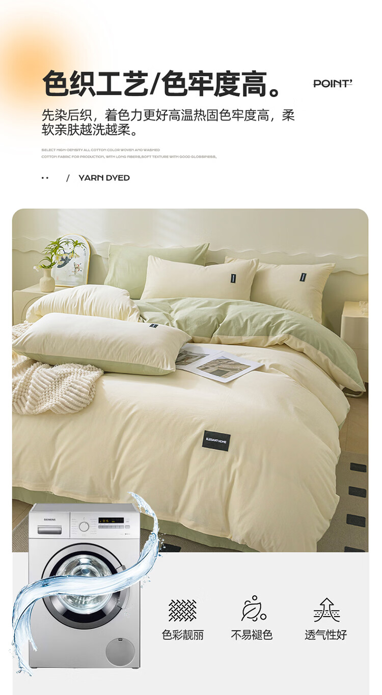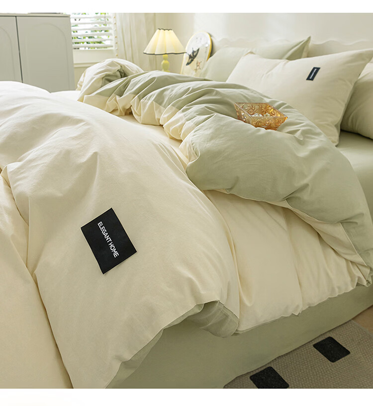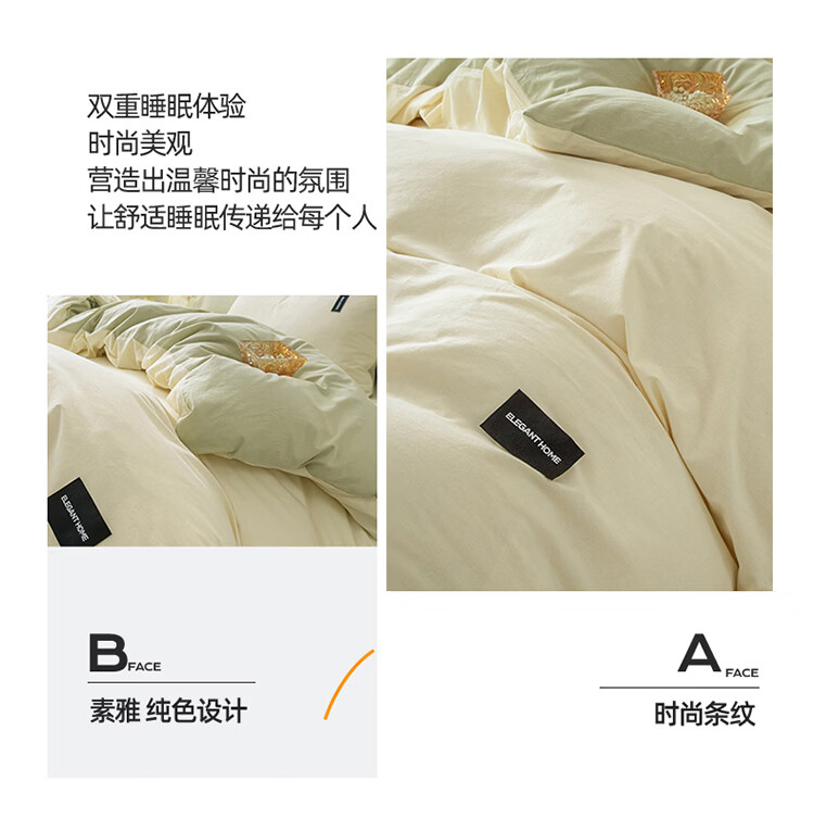 无印良品A类100%纯棉床上四件套全棉家用可裸睡床单被套床笠款床品三件套4 奶白薄荷绿【A类全棉面料】 1.8m 床单款 四件套-被套200x230cm