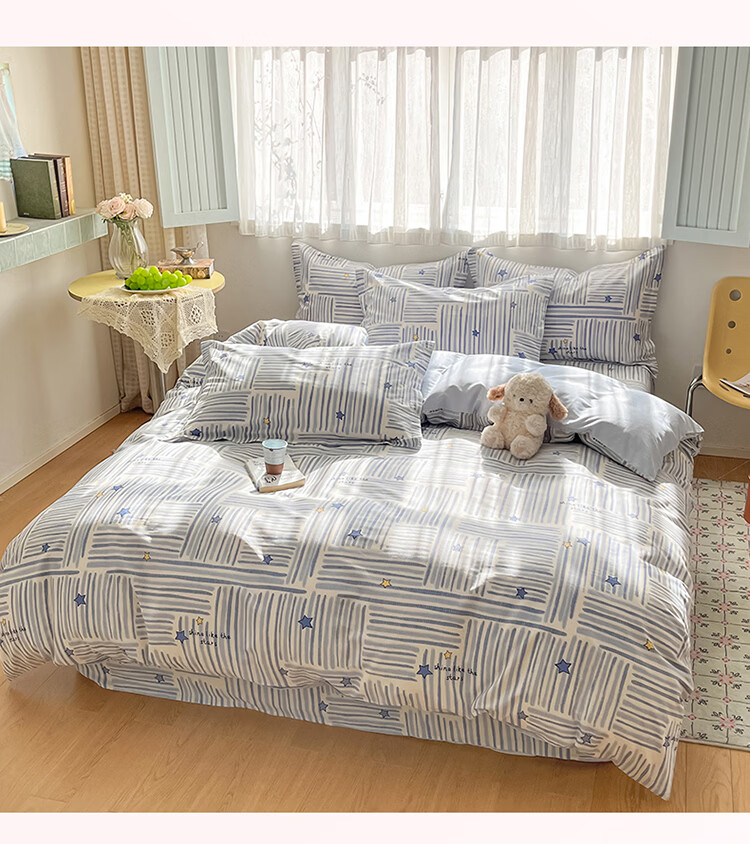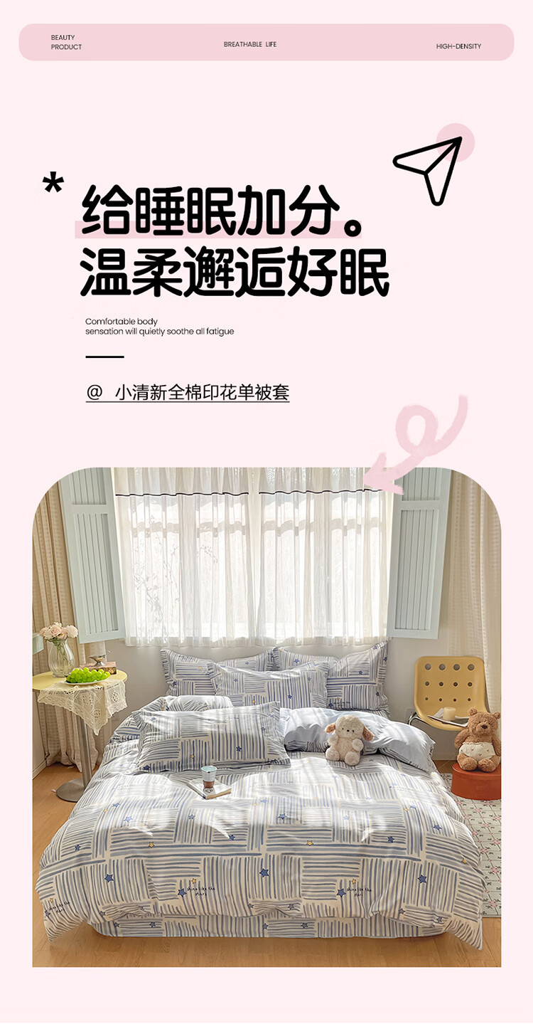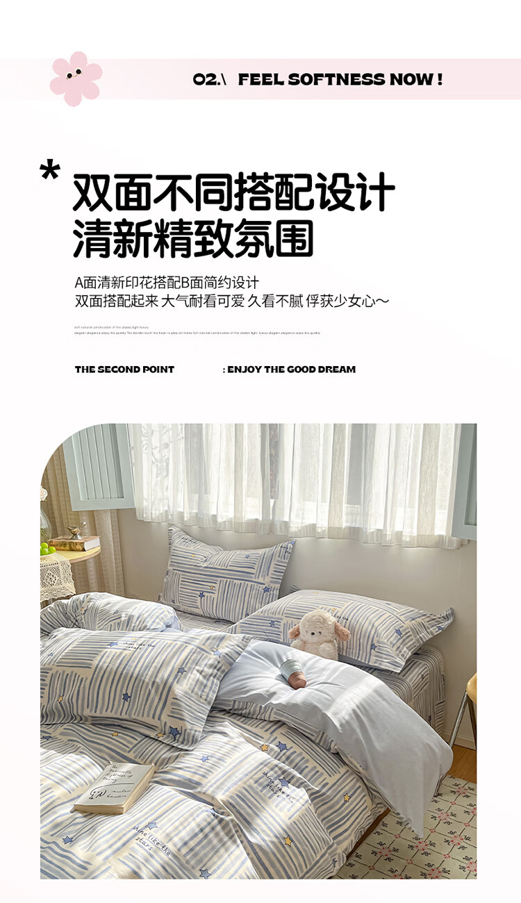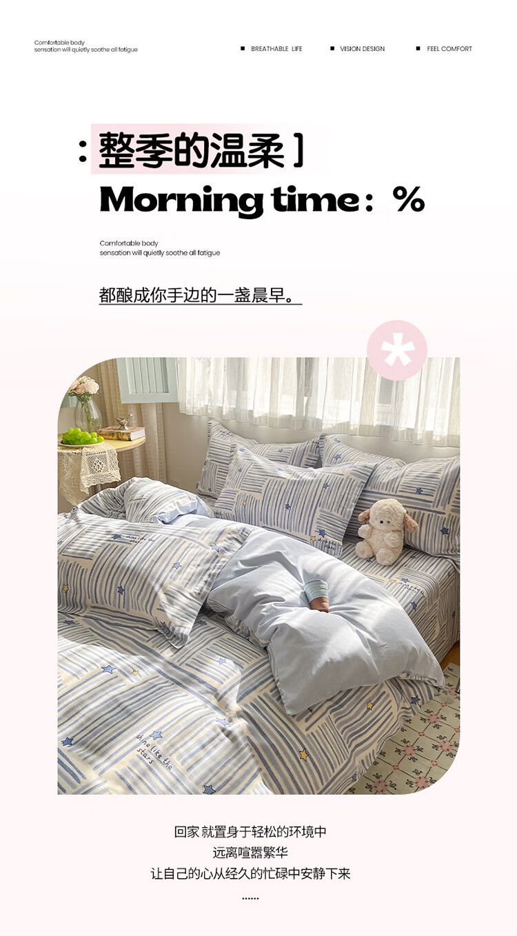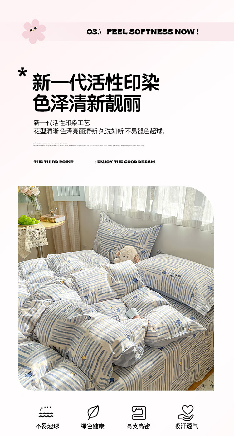 无印良品全棉床品四件套纯棉100%小清新花卉风单双人四季通用可裸睡三件套 苏屿【全棉面料 清新印花】 1.8m 床单款 被套200*230cm