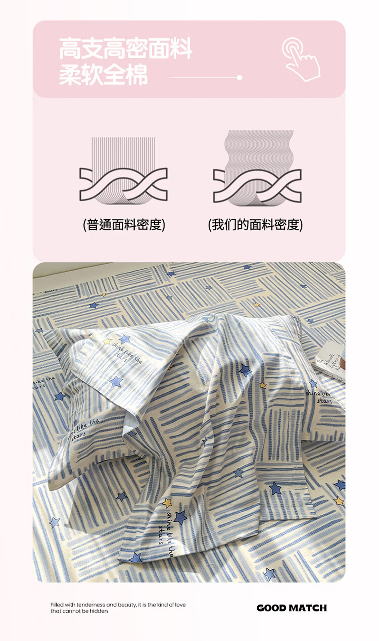名创优品(MINISO)纯棉床笠1.8米x2米 全棉床笠罩床垫保护套被单枕套三件套 全棉-香槟 90cm*200cm 单床笠