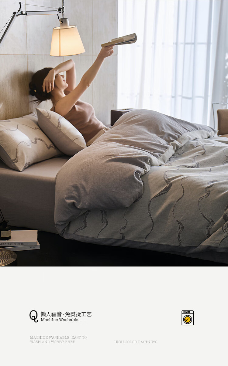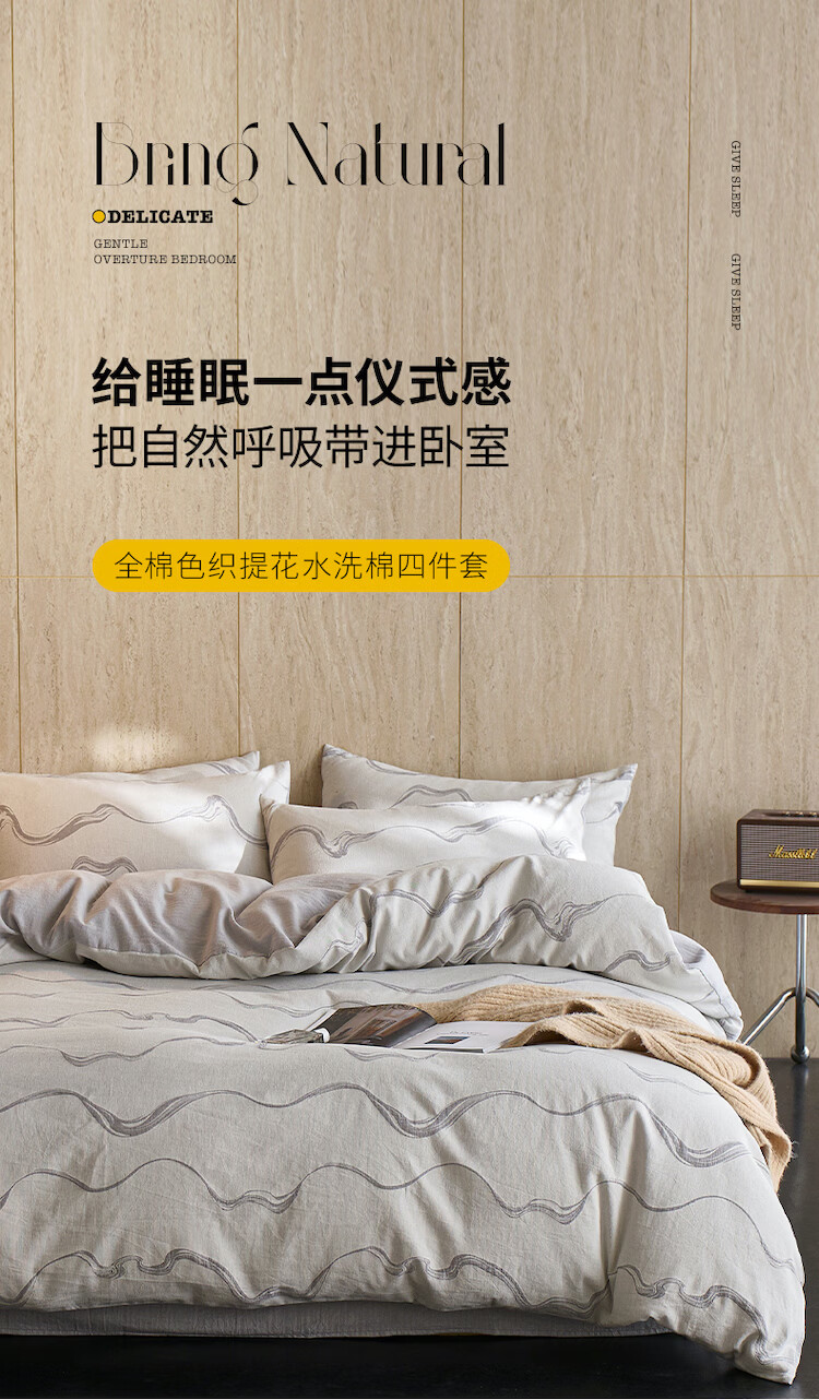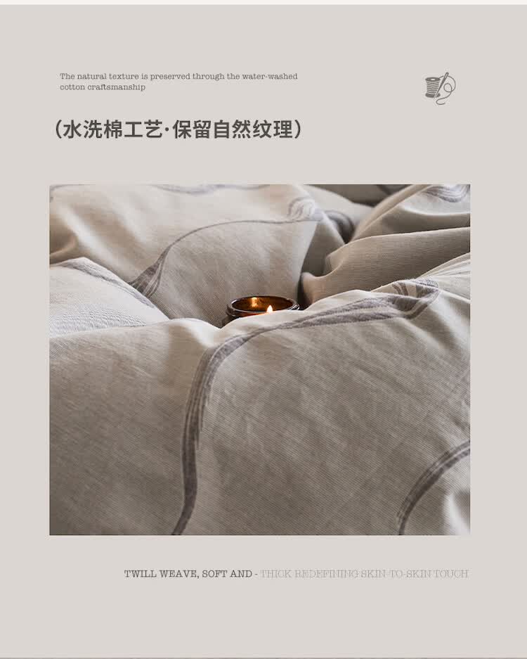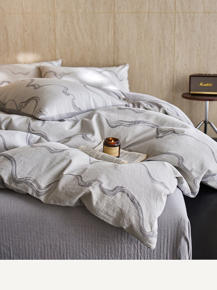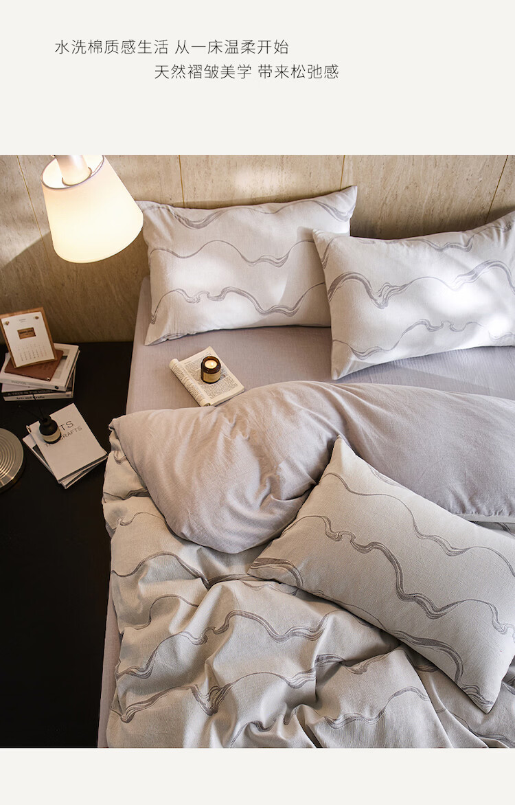 ROLAND LIVE全棉色织提花水洗棉四件套柔软透气被套卧室床单床笠床上用品 QDS 全棉水洗棉套件-漫织月岩灰 1.2米床 床单款 【被套150*200cm】