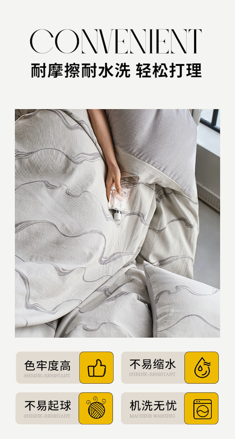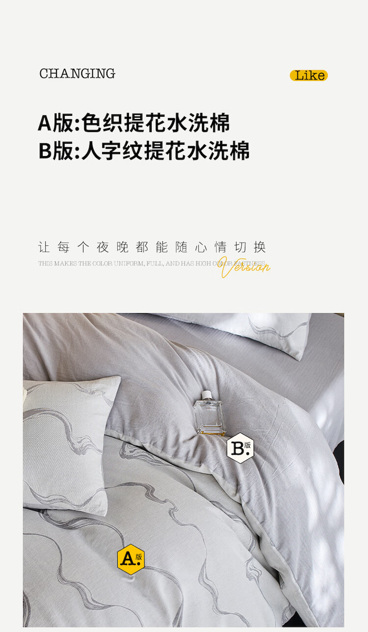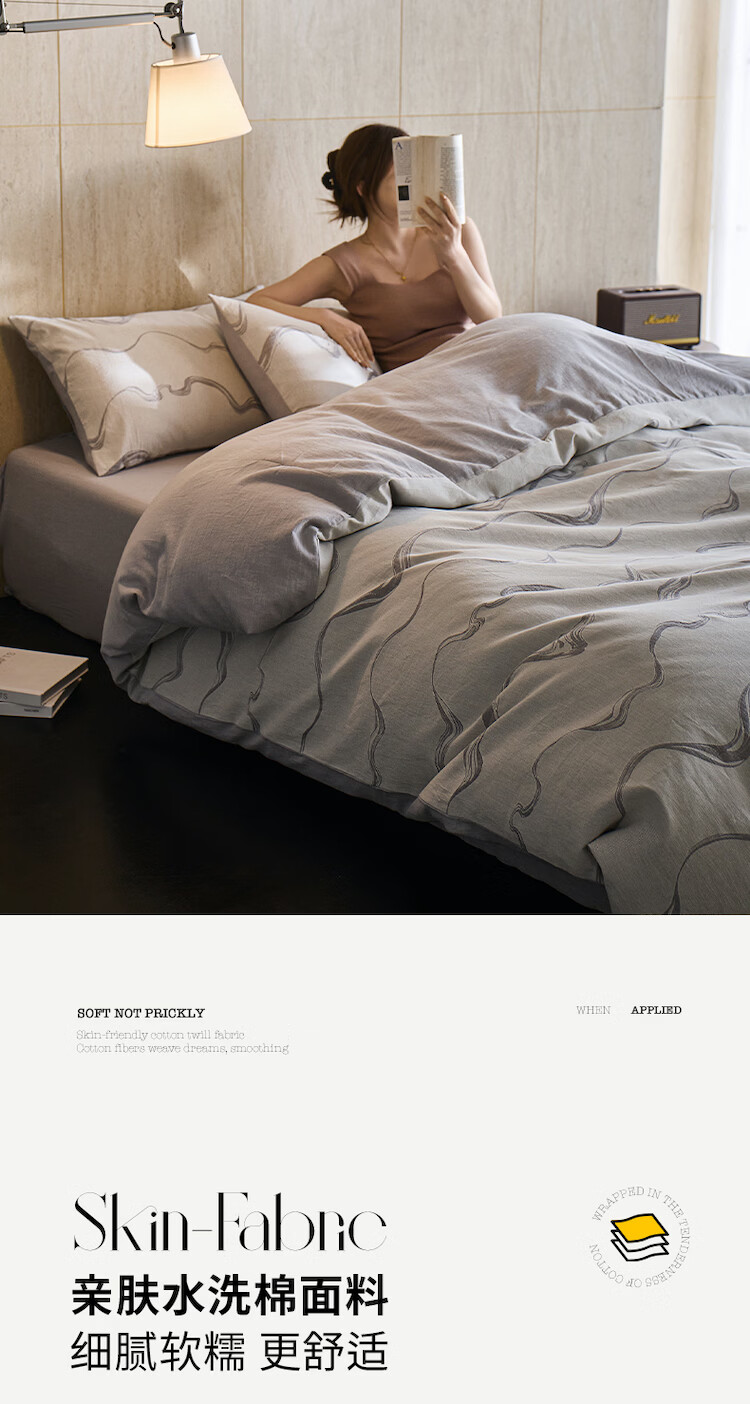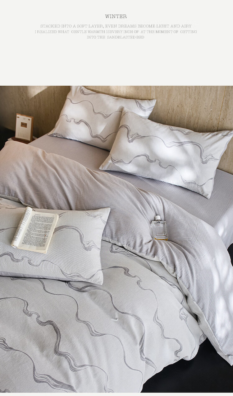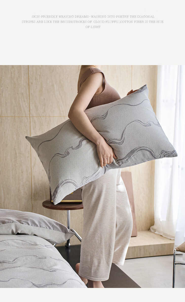 ROLAND LIVE全棉色织提花水洗棉四件套柔软透气被套卧室床单床笠床上用品 QDS 全棉水洗棉套件-漫织月岩灰 1.2米床 床单款 【被套150*200cm】