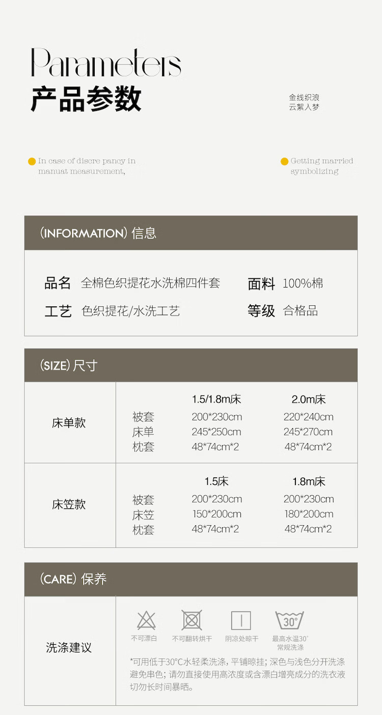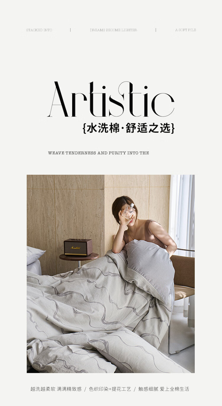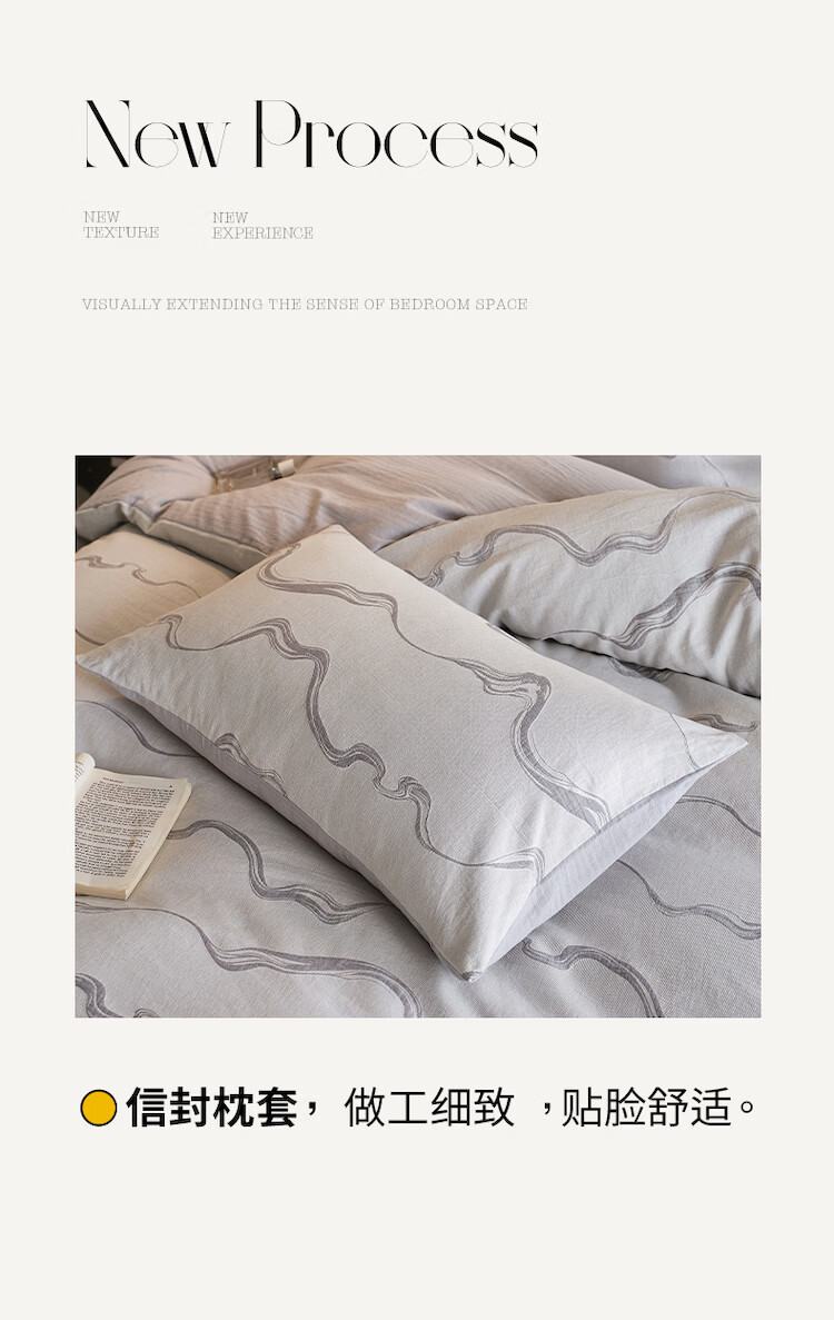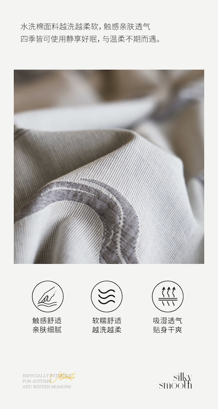 ROLAND LIVE全棉色织提花水洗棉四件套柔软透气被套卧室床单床笠床上用品 QDS 全棉水洗棉套件-漫织月岩灰 1.2米床 床单款 【被套150*200cm】