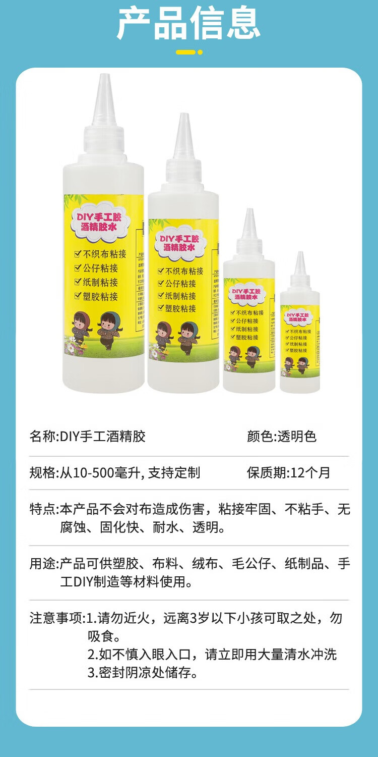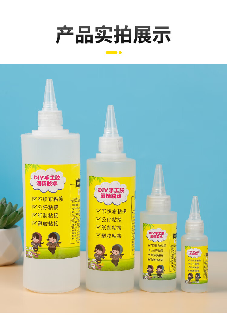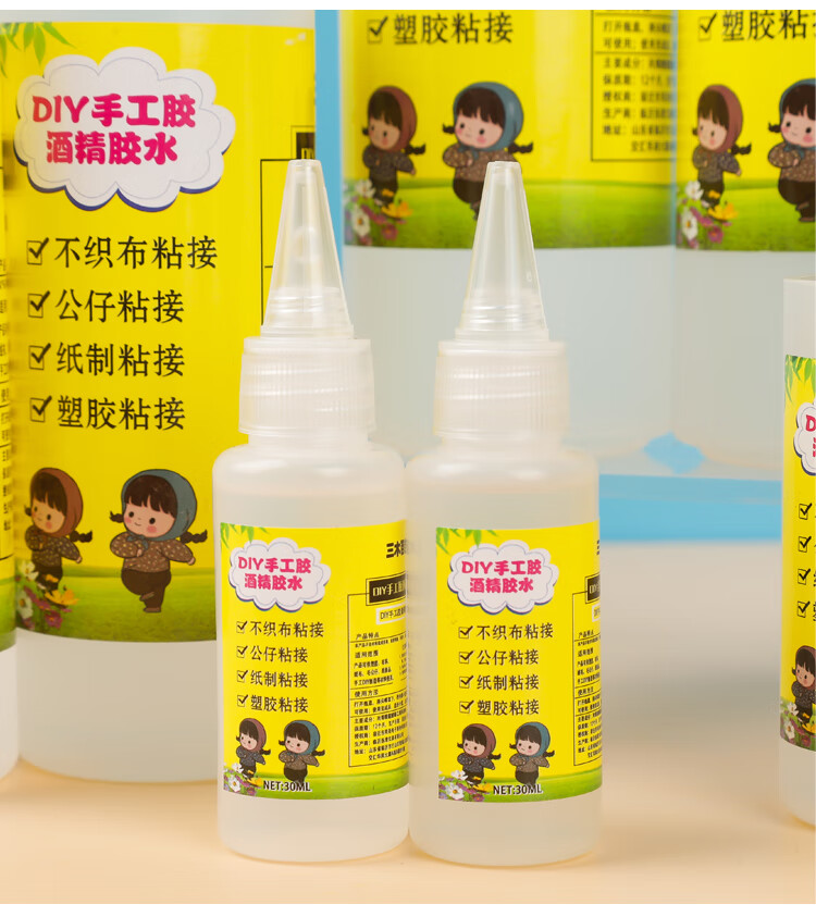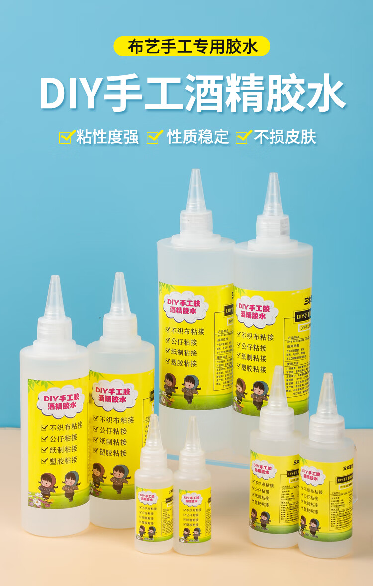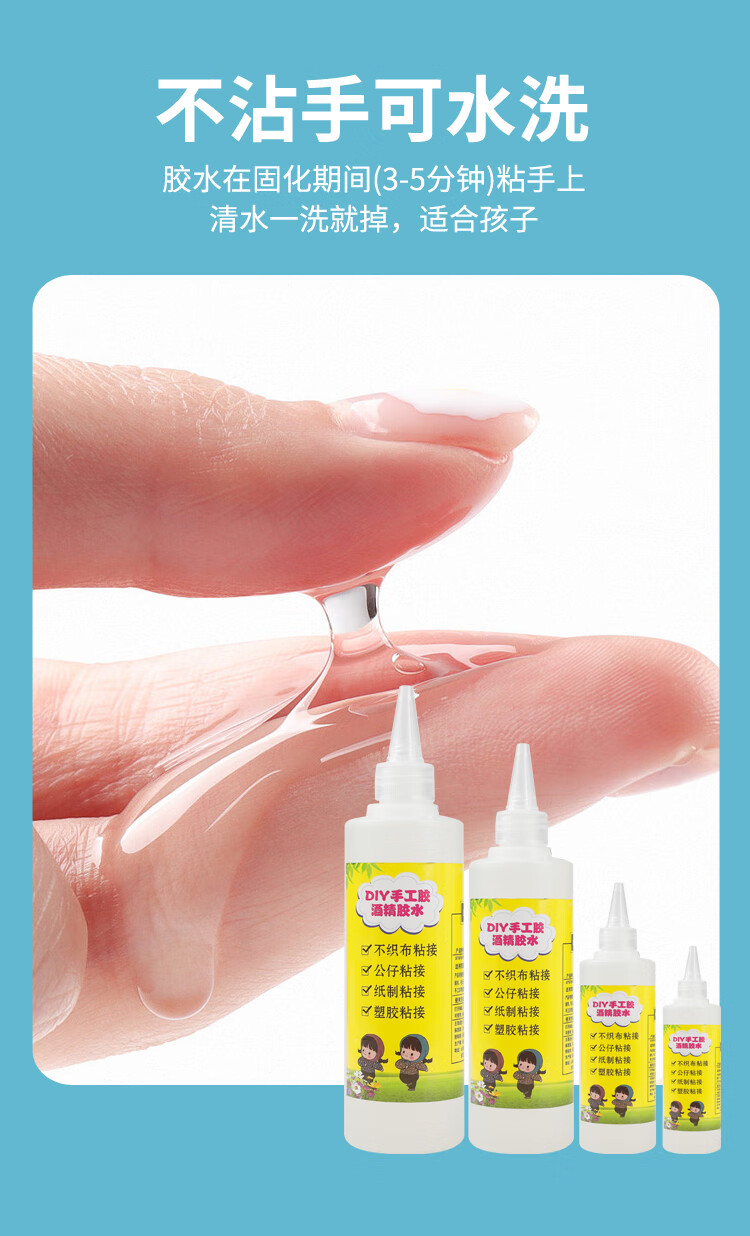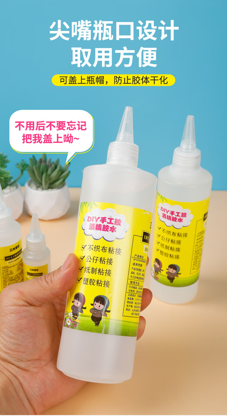 三木百合儿童DIY手工专用酒精胶粘大王扇扭扭棒毛线麻绳木头纸塑料透明液体高粘速干快干美术学生 50毫升强力酒精胶 3瓶