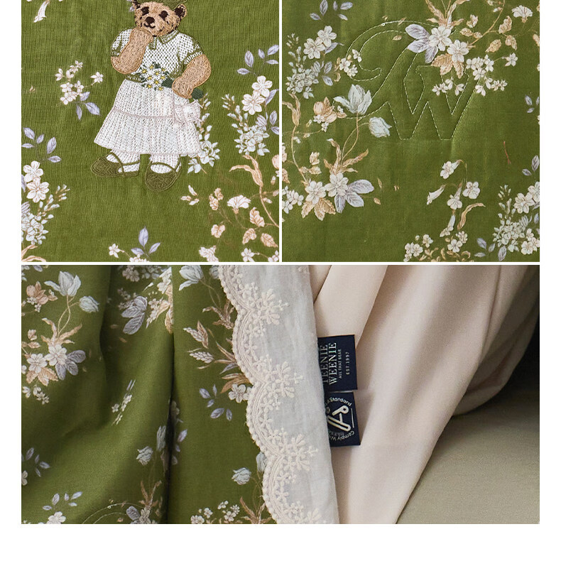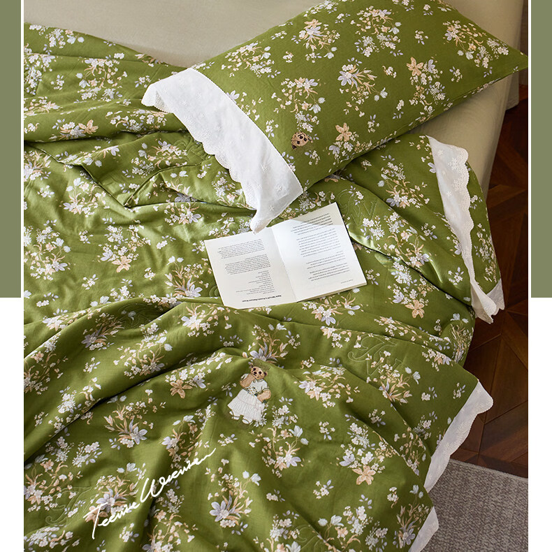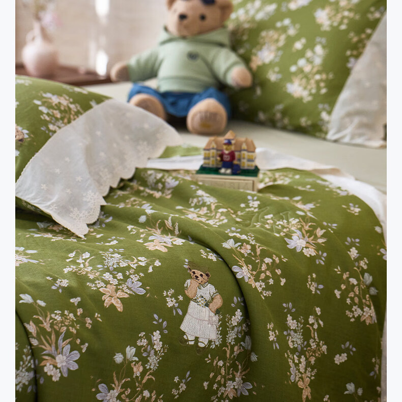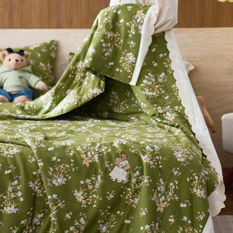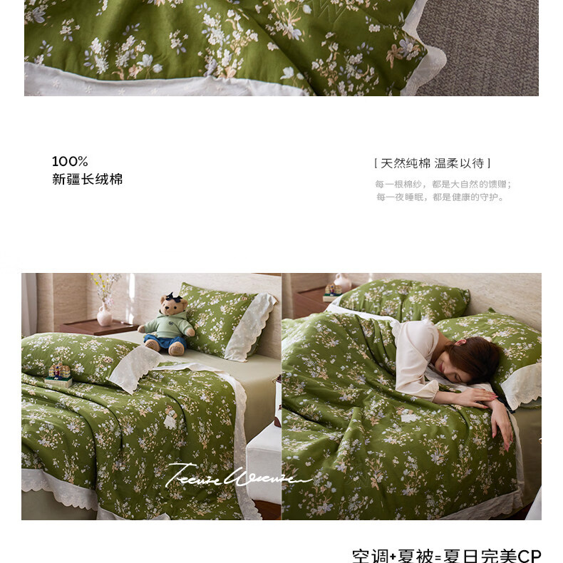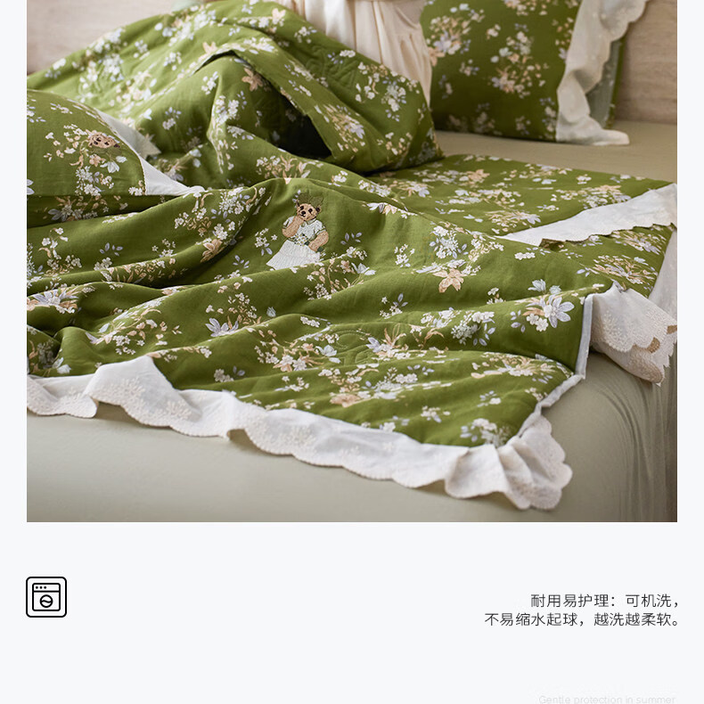 Teenie Weenie小熊春夏新款A类全棉双层纱夏凉被纯棉蕾丝花边可机洗空调被子 花边款-空山新雨 【A类双层纱+干爽透气+夏日氛围感】 单件夏被:200x230cm