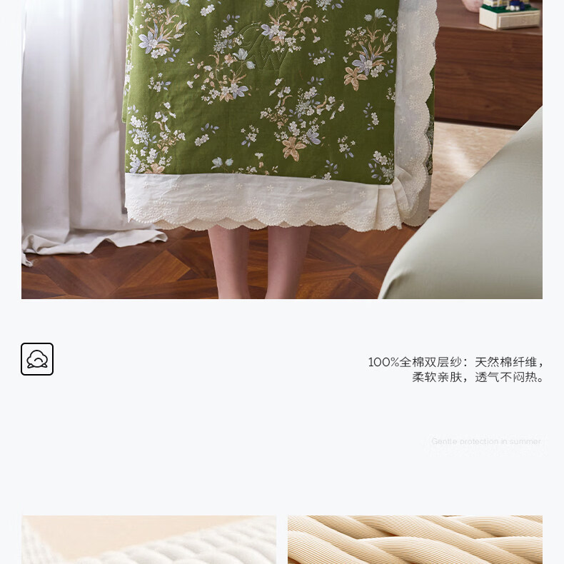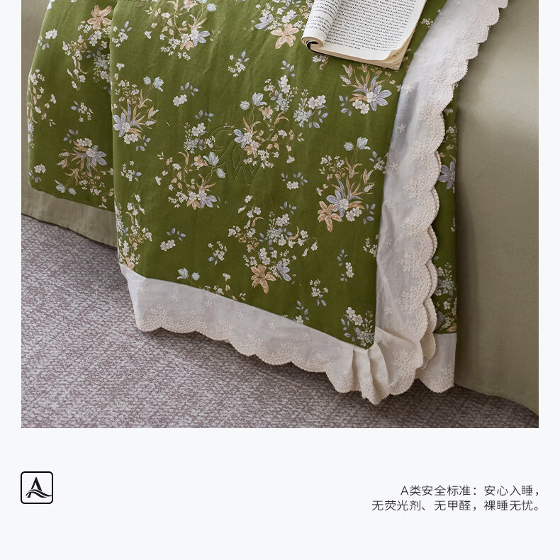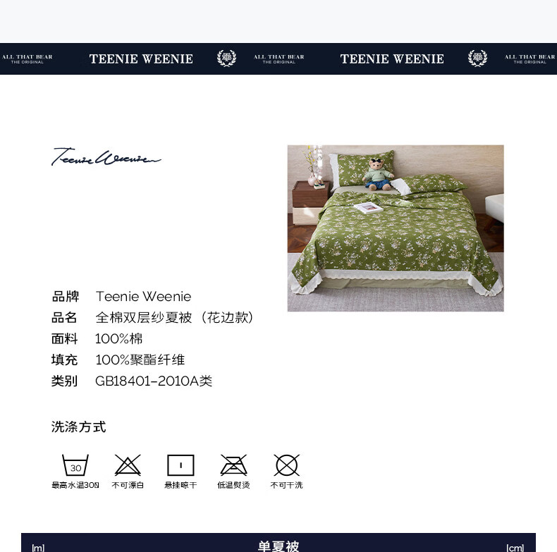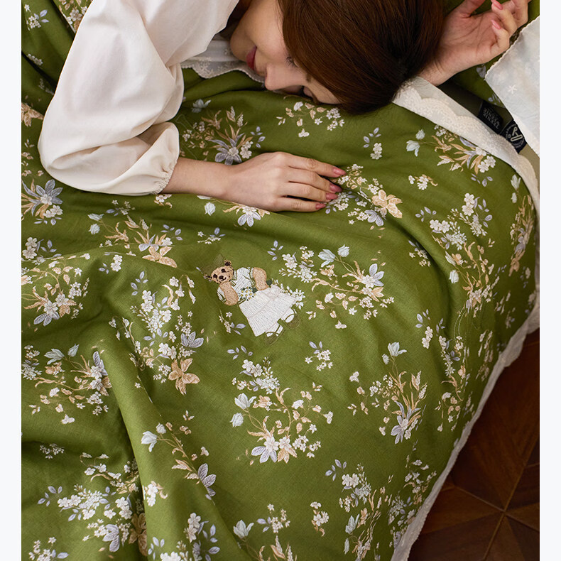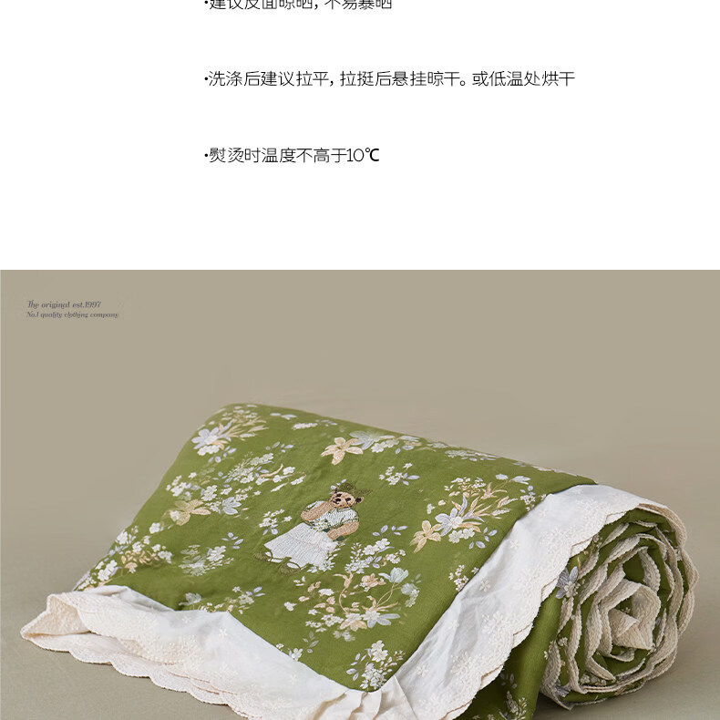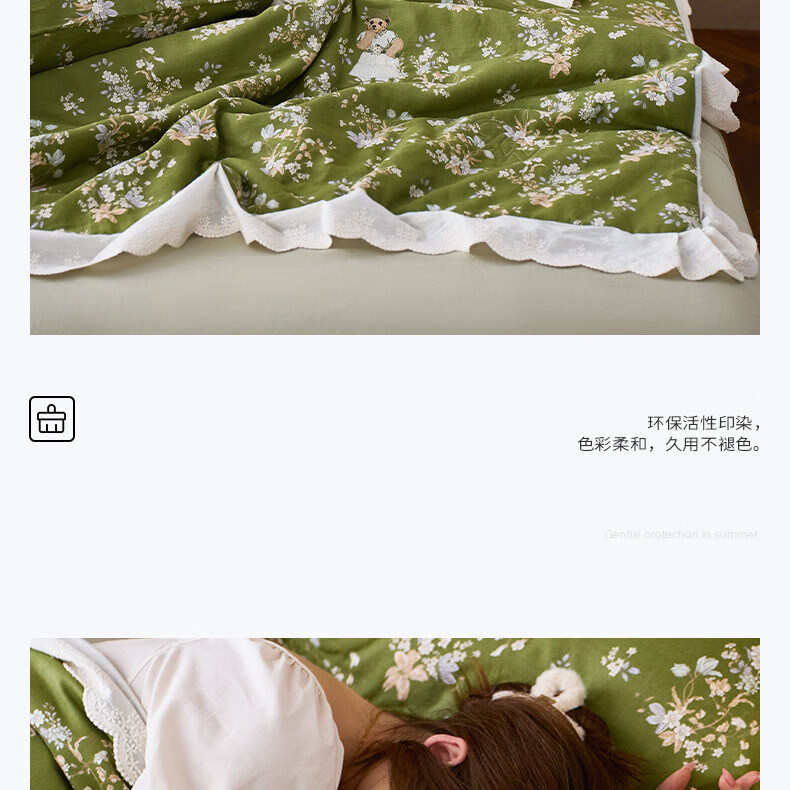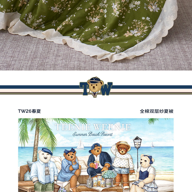 Teenie Weenie小熊春夏新款A类全棉双层纱夏凉被纯棉蕾丝花边可机洗空调被子 花边款-空山新雨 【A类双层纱+干爽透气+夏日氛围感】 单件夏被:200x230cm
