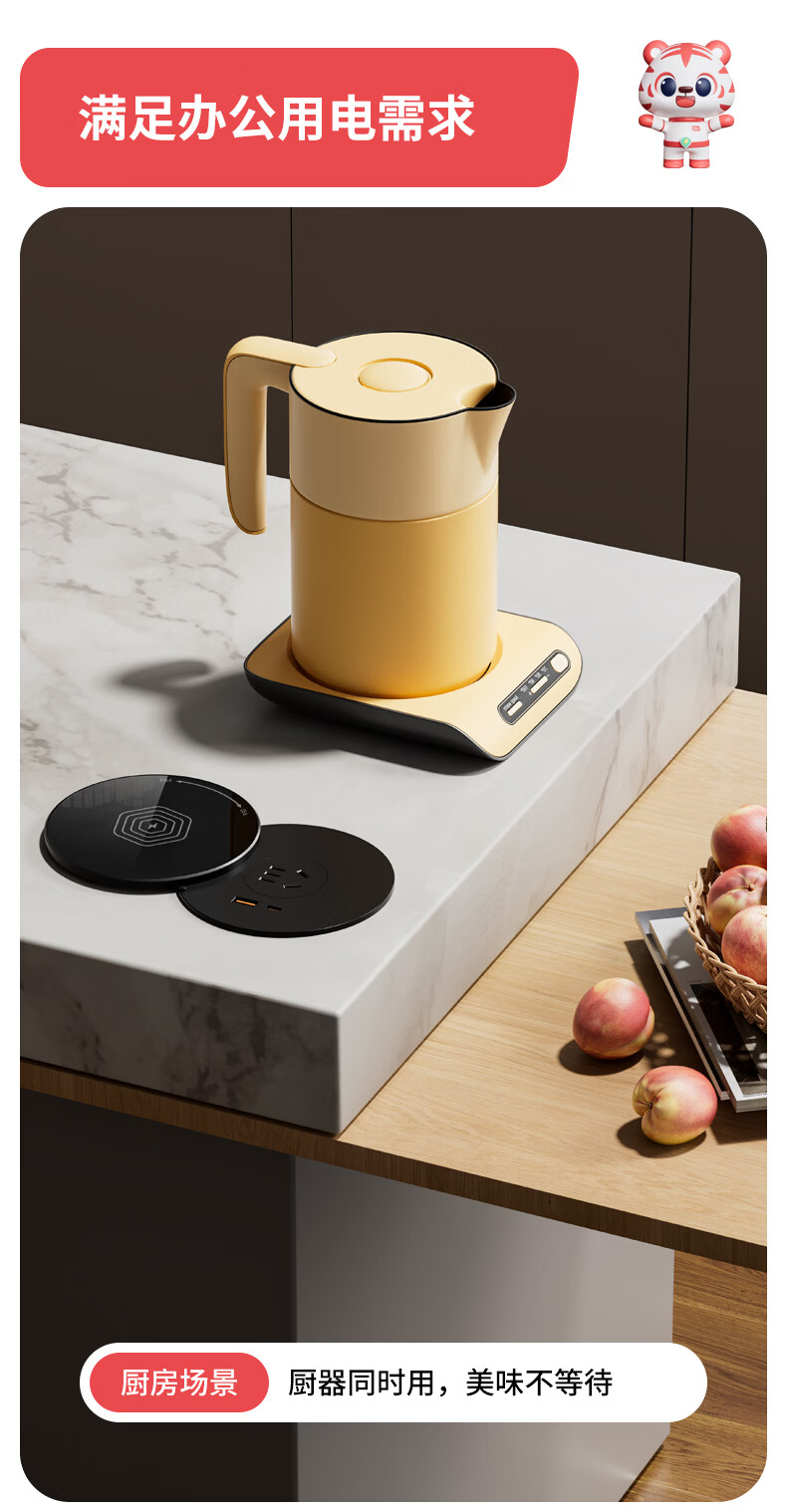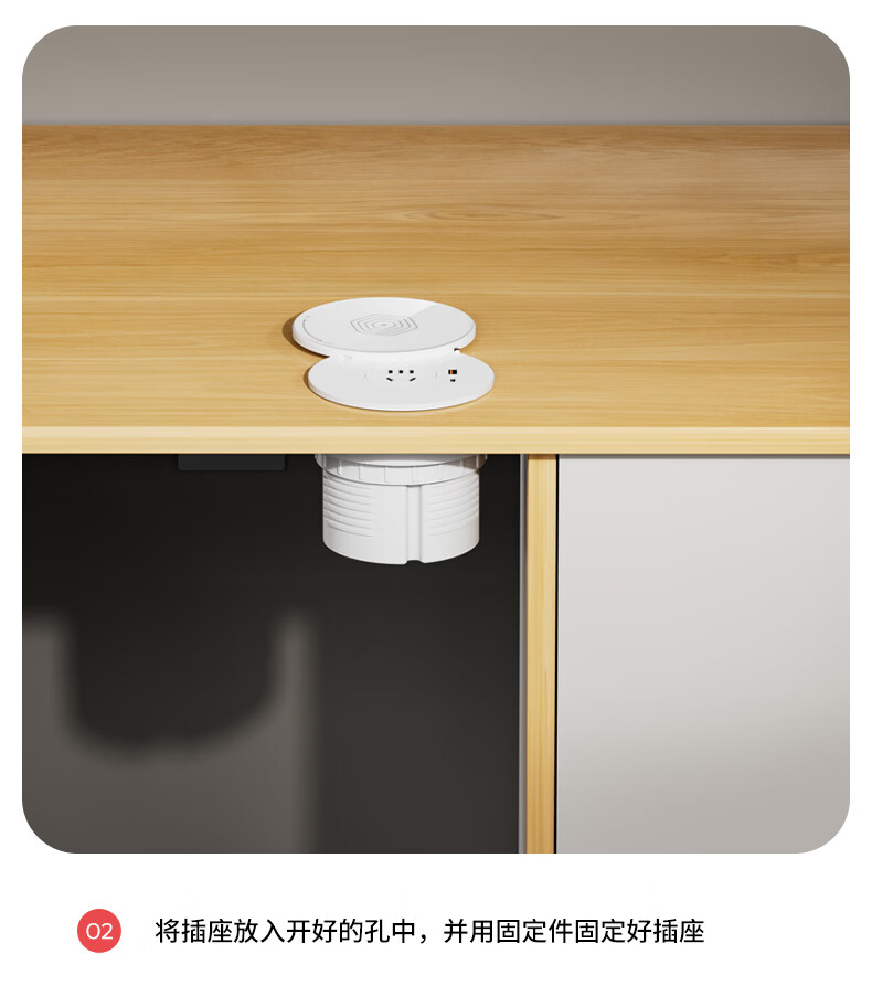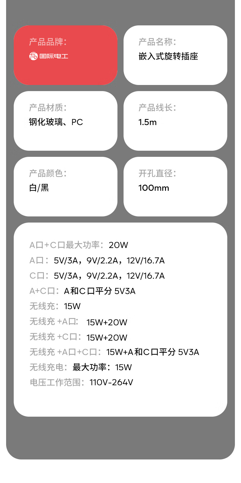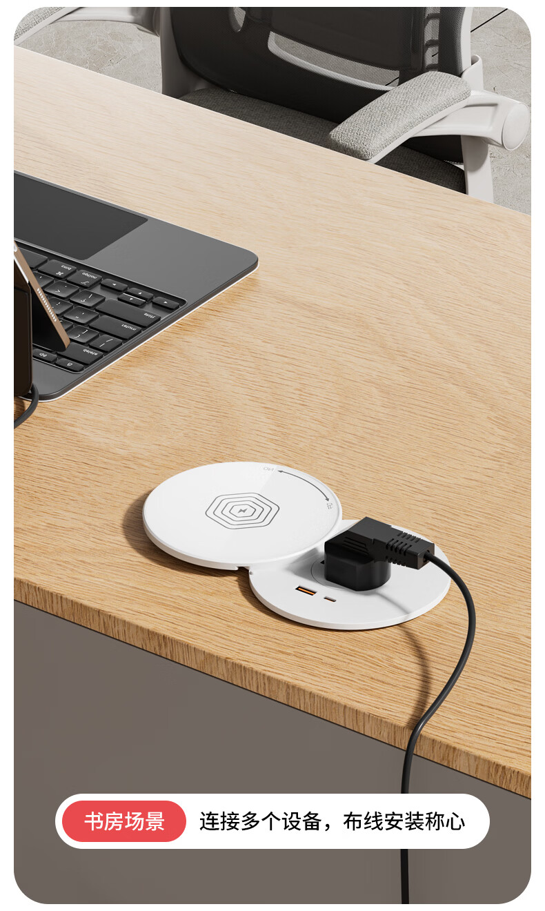 国际电工无线充电隐藏嵌入式旋转插座厨房桌面防水插排岛台会议桌快充插板 白色旋转桌面插座【1.5米线】 五孔插座+USB+Type-C