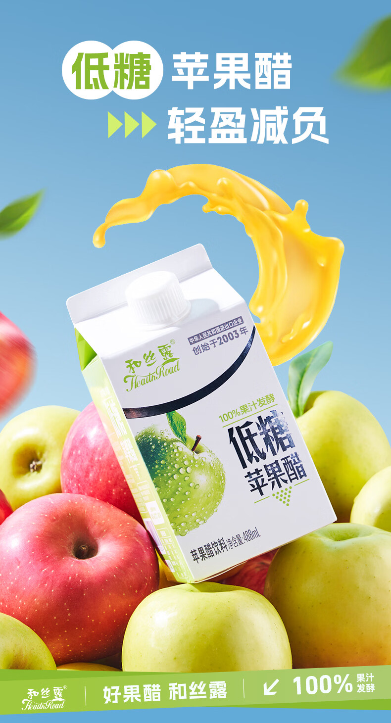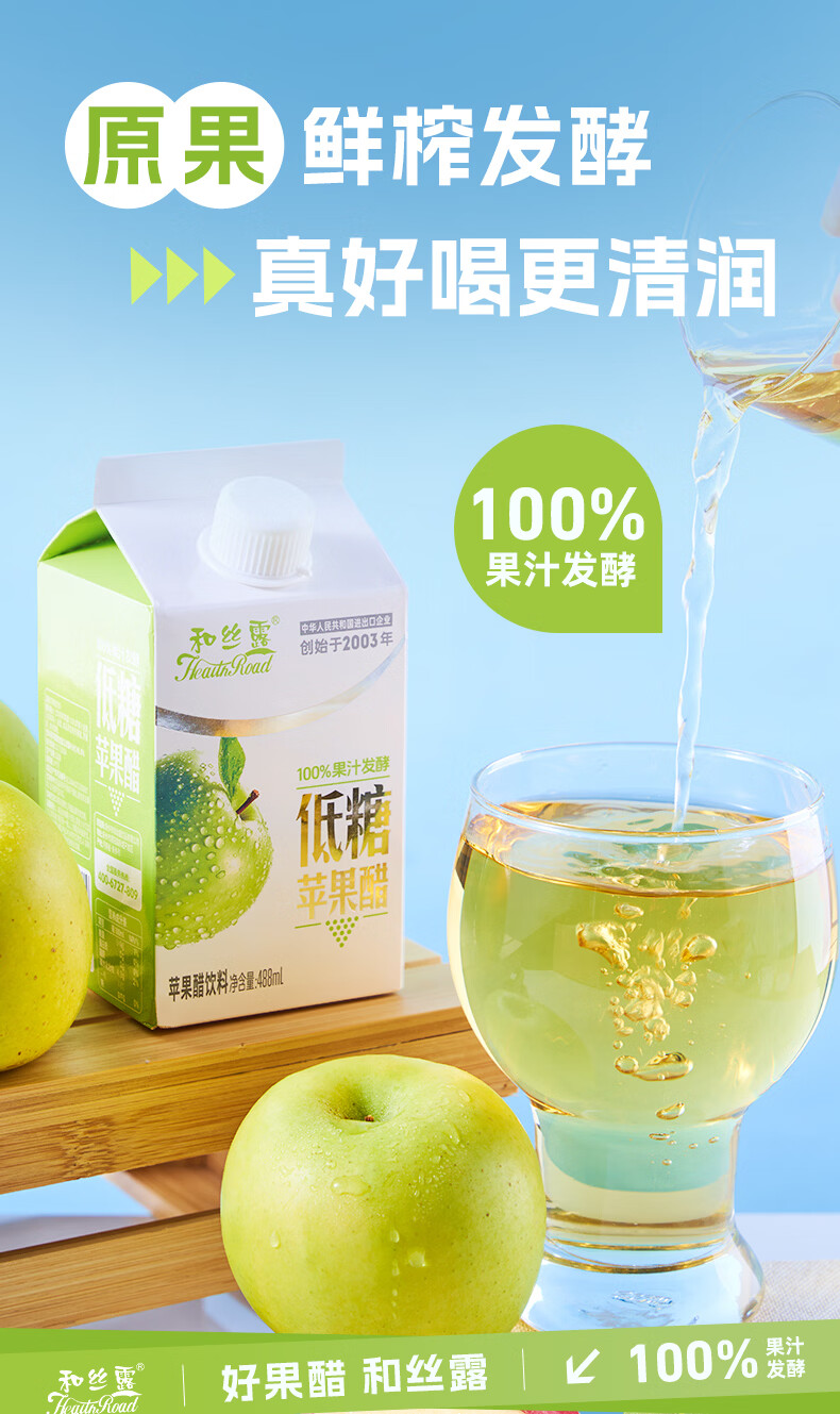 和丝露苹果醋果汁饮料0脂京东自营饮料整箱年货送礼488ml*15瓶