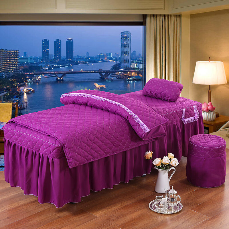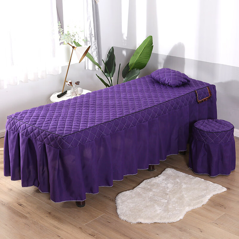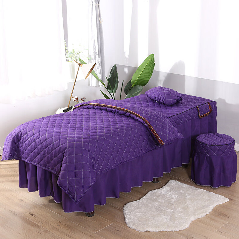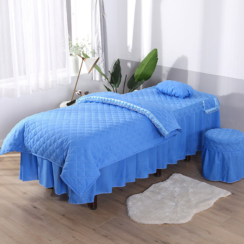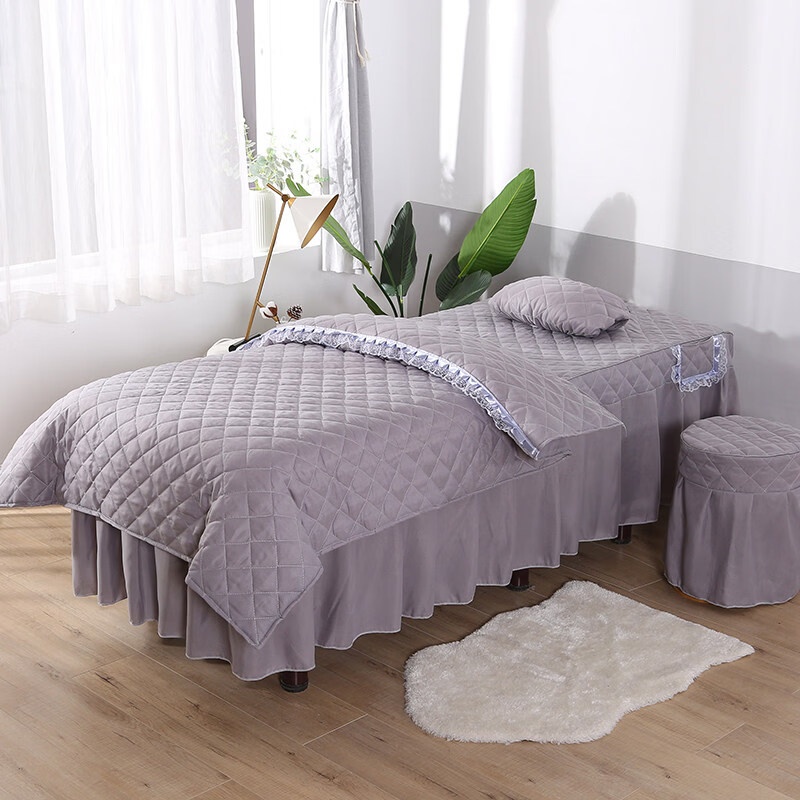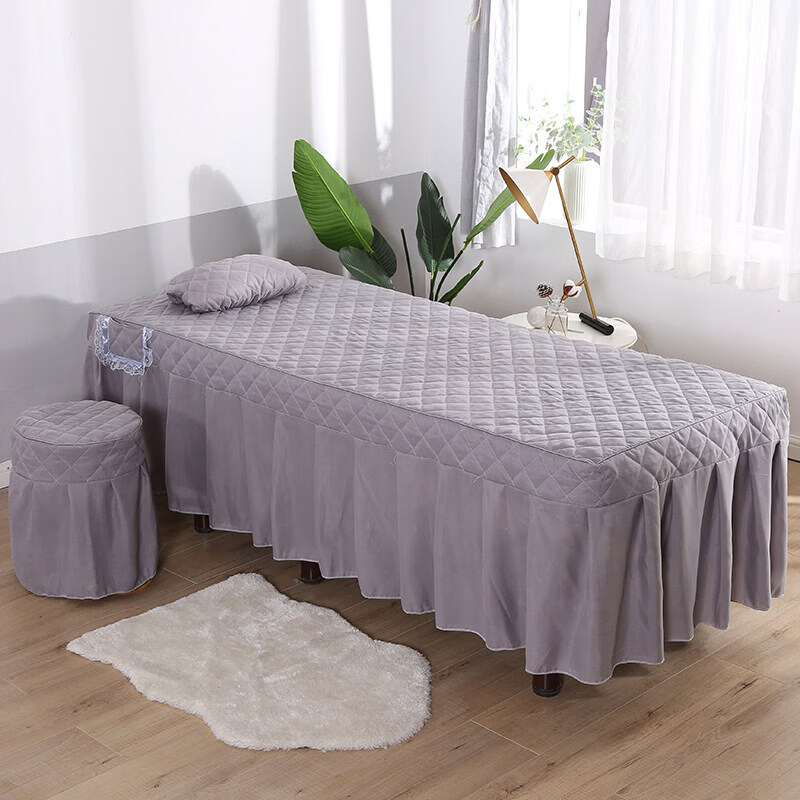 正圣纯色简约美容床罩四件套按摩理疗床套美容院单独床罩单件床裙床罩 方格灰色 方头四件套+毛巾+床单 60cm*180cm