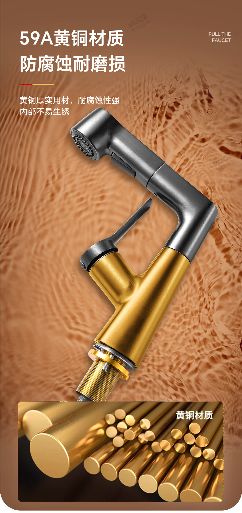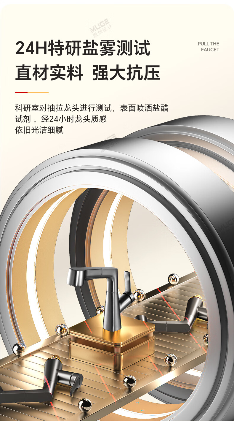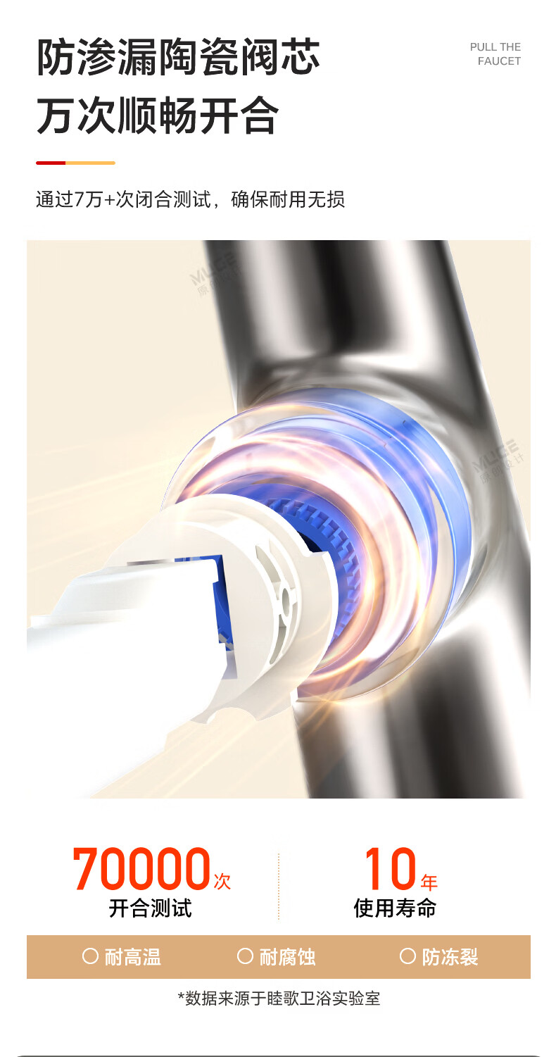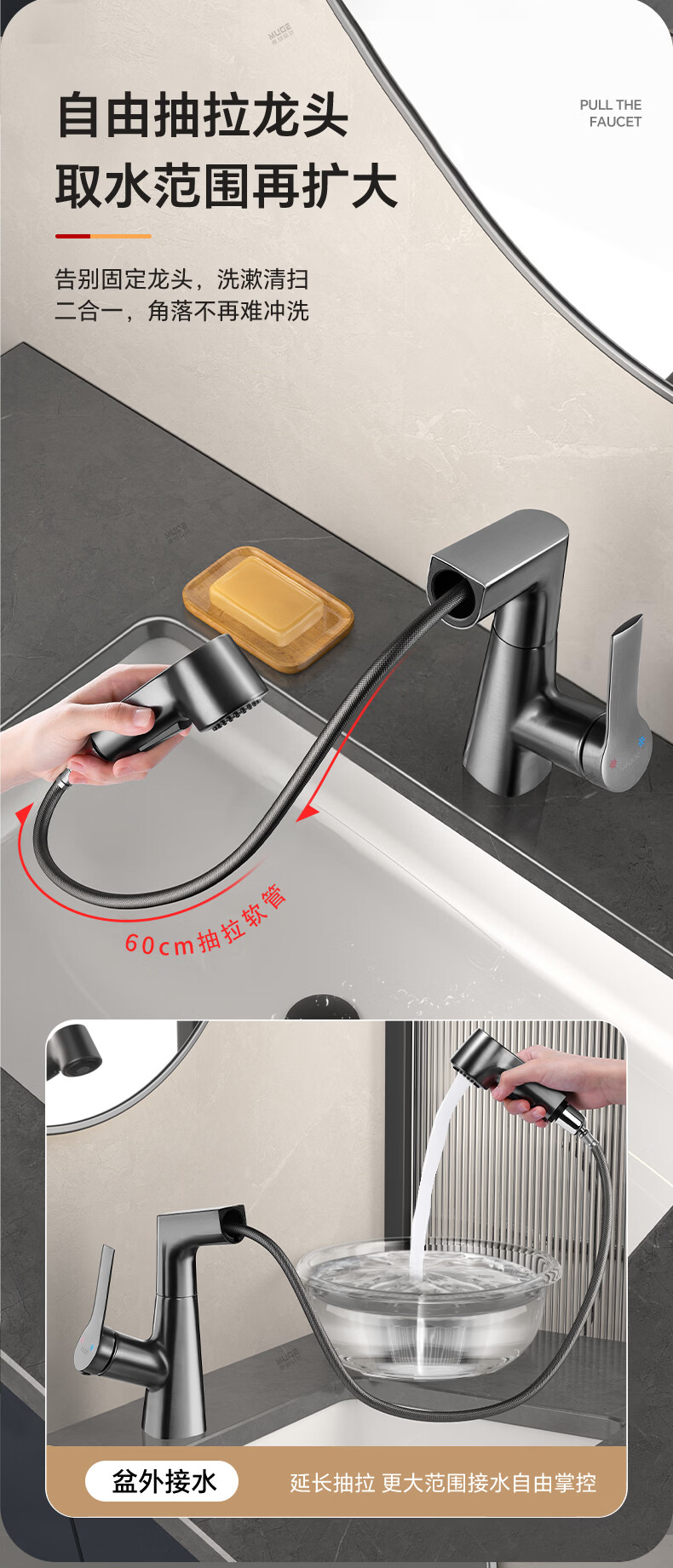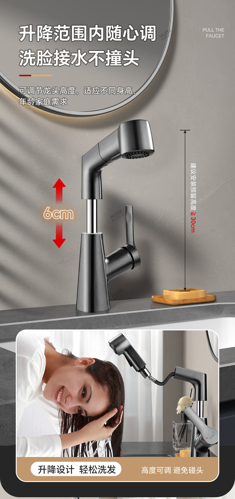 睦歌(MUGE)卫生间面盆洗手盆水龙头冷热抽拉洗脸盆洗手池洗漱台浴室柜水龙头 精铜加厚【珍珠白】两档抽拉升降面盆龙头 赠送原装80cm冷热水管