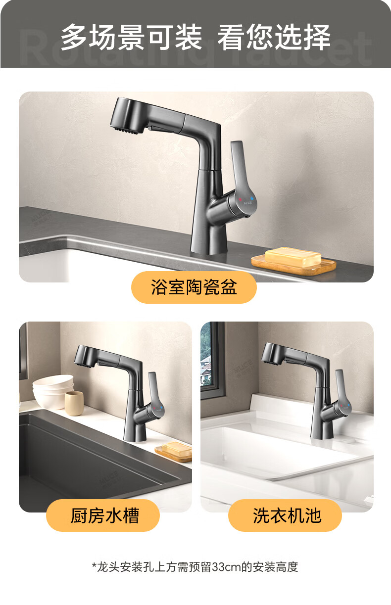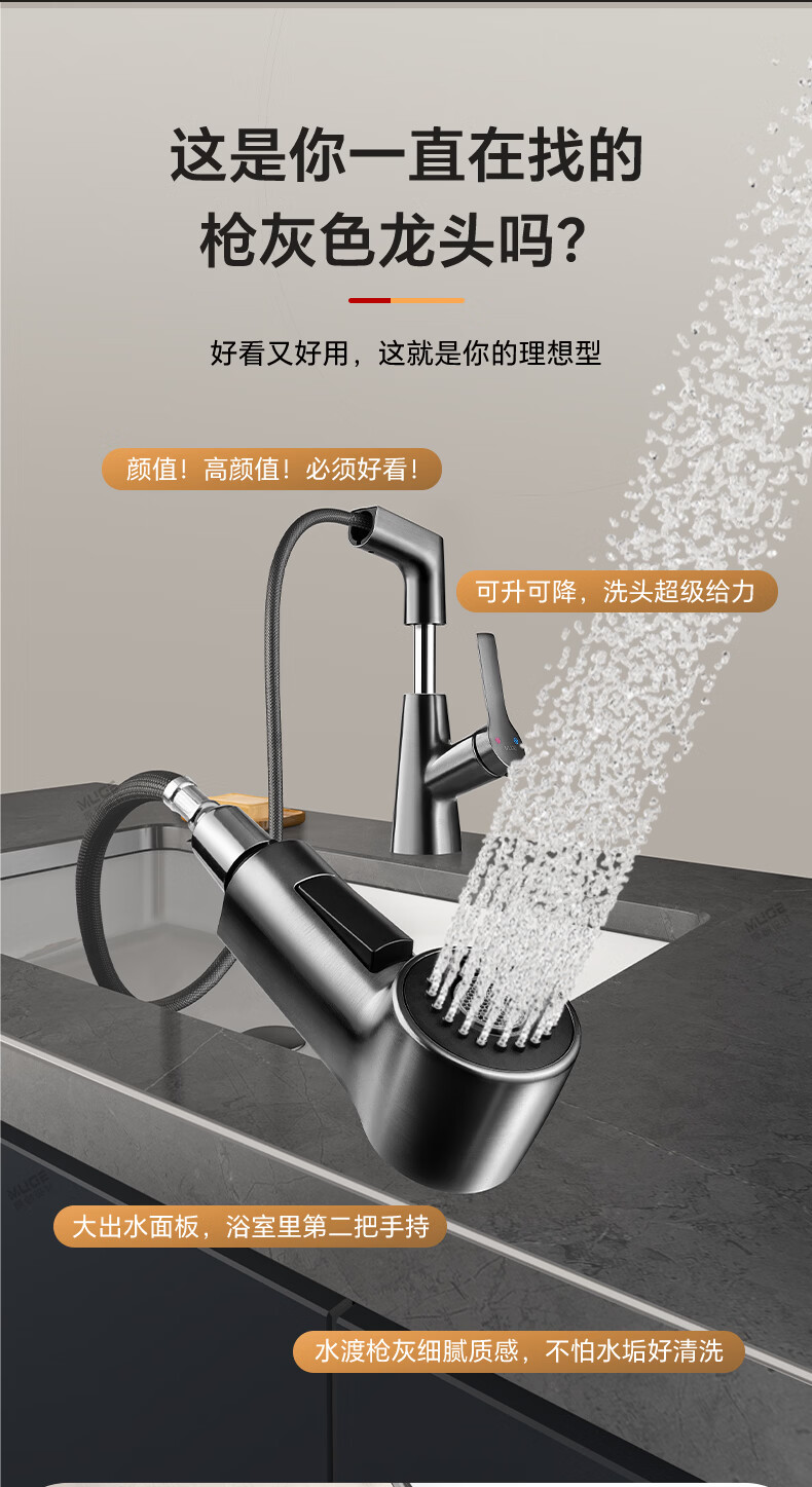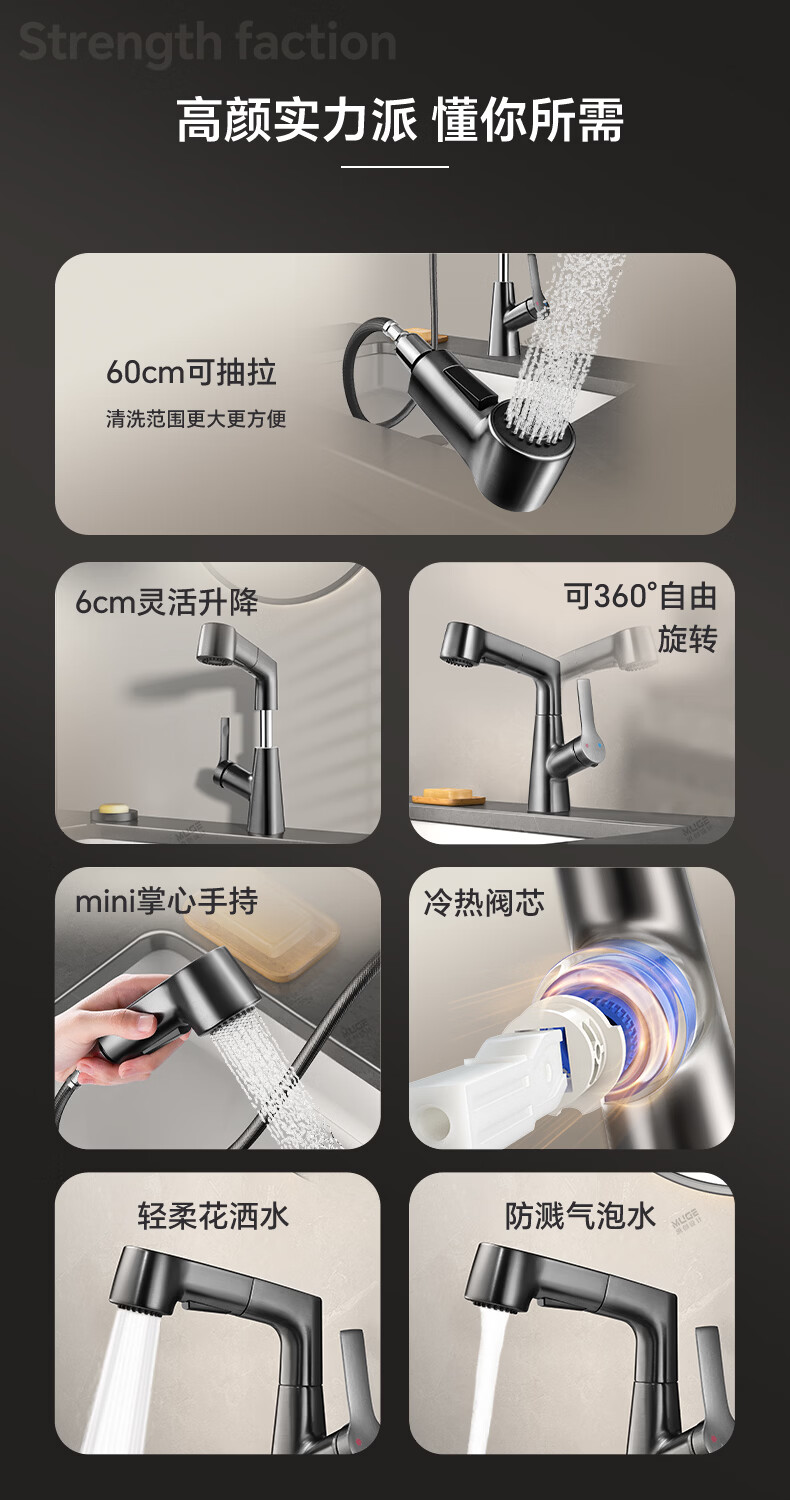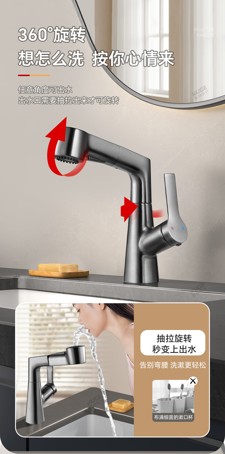睦歌(MUGE)卫生间面盆洗手盆水龙头冷热抽拉洗脸盆洗手池洗漱台浴室柜水龙头 精铜加厚【珍珠白】两档抽拉升降面盆龙头 赠送原装80cm冷热水管