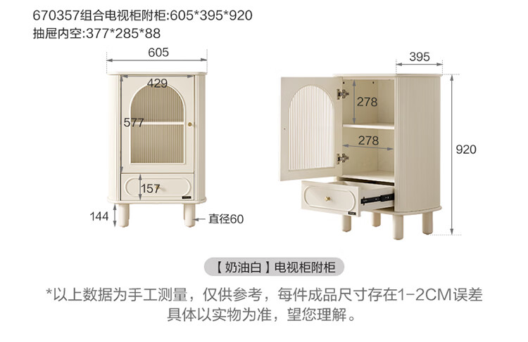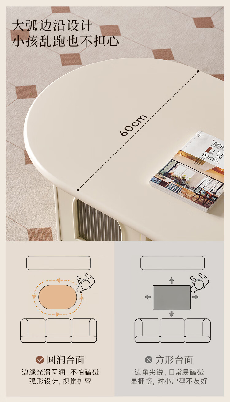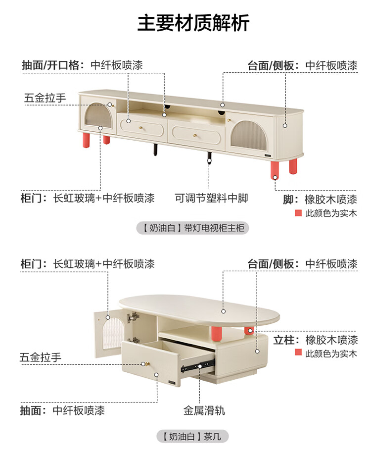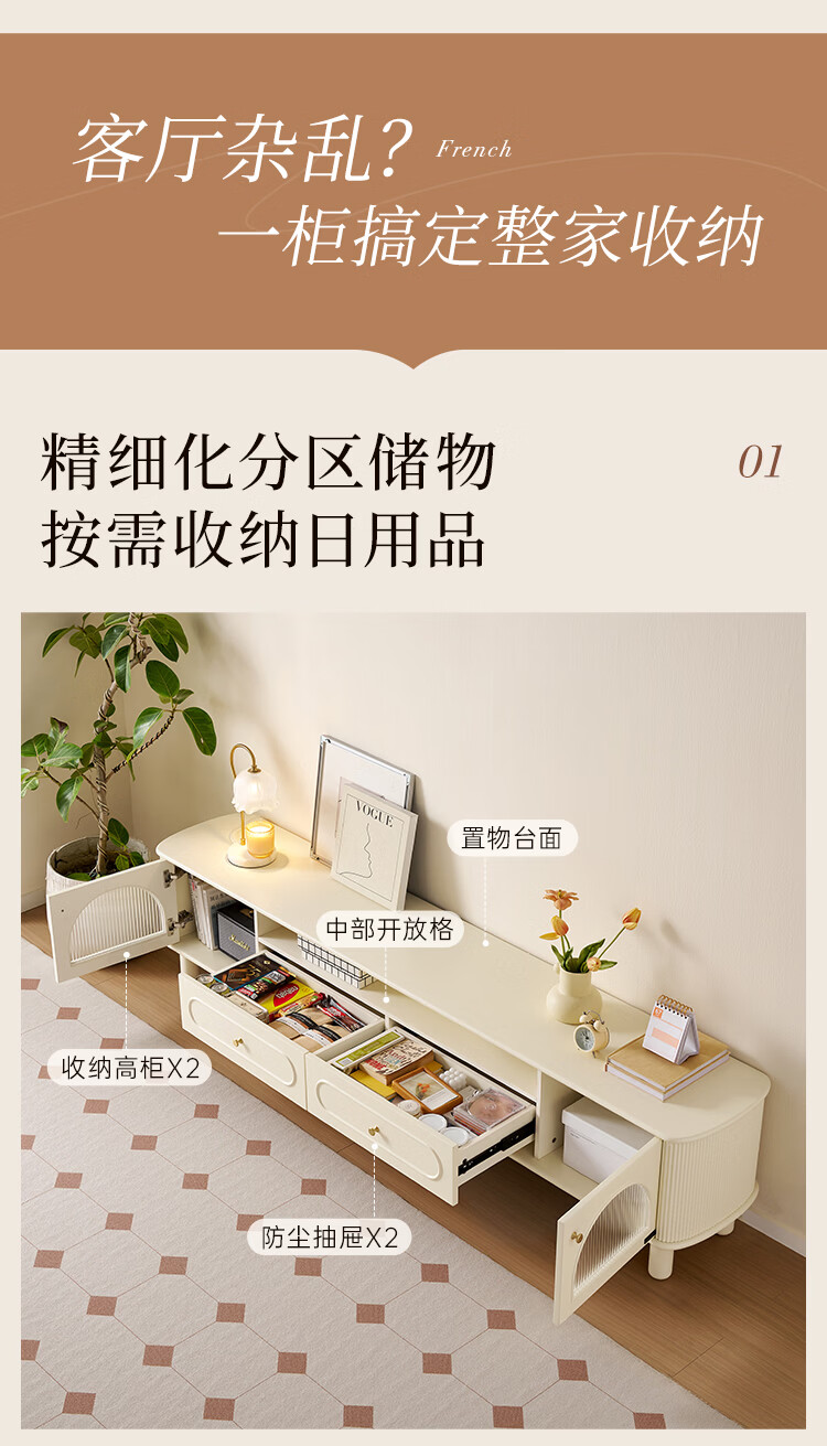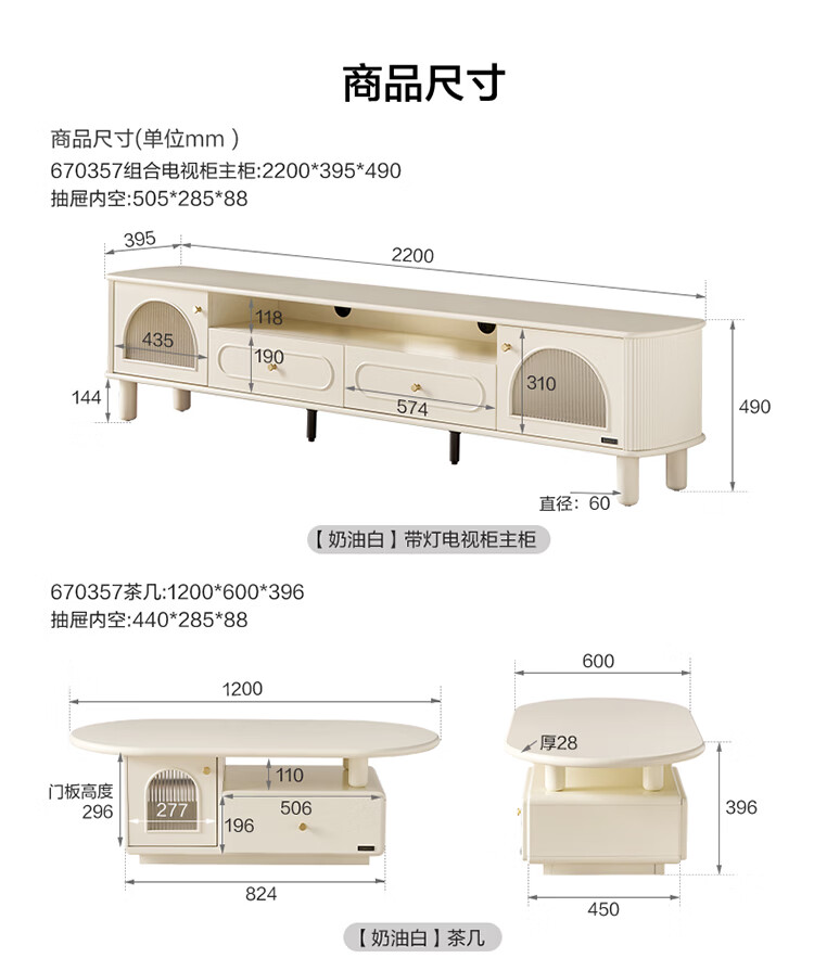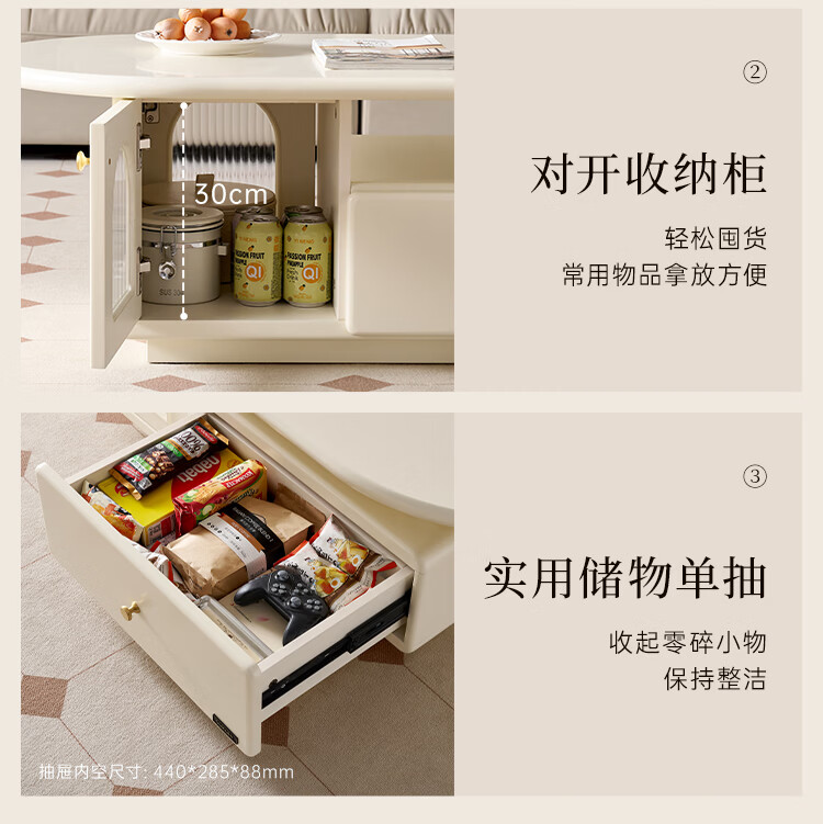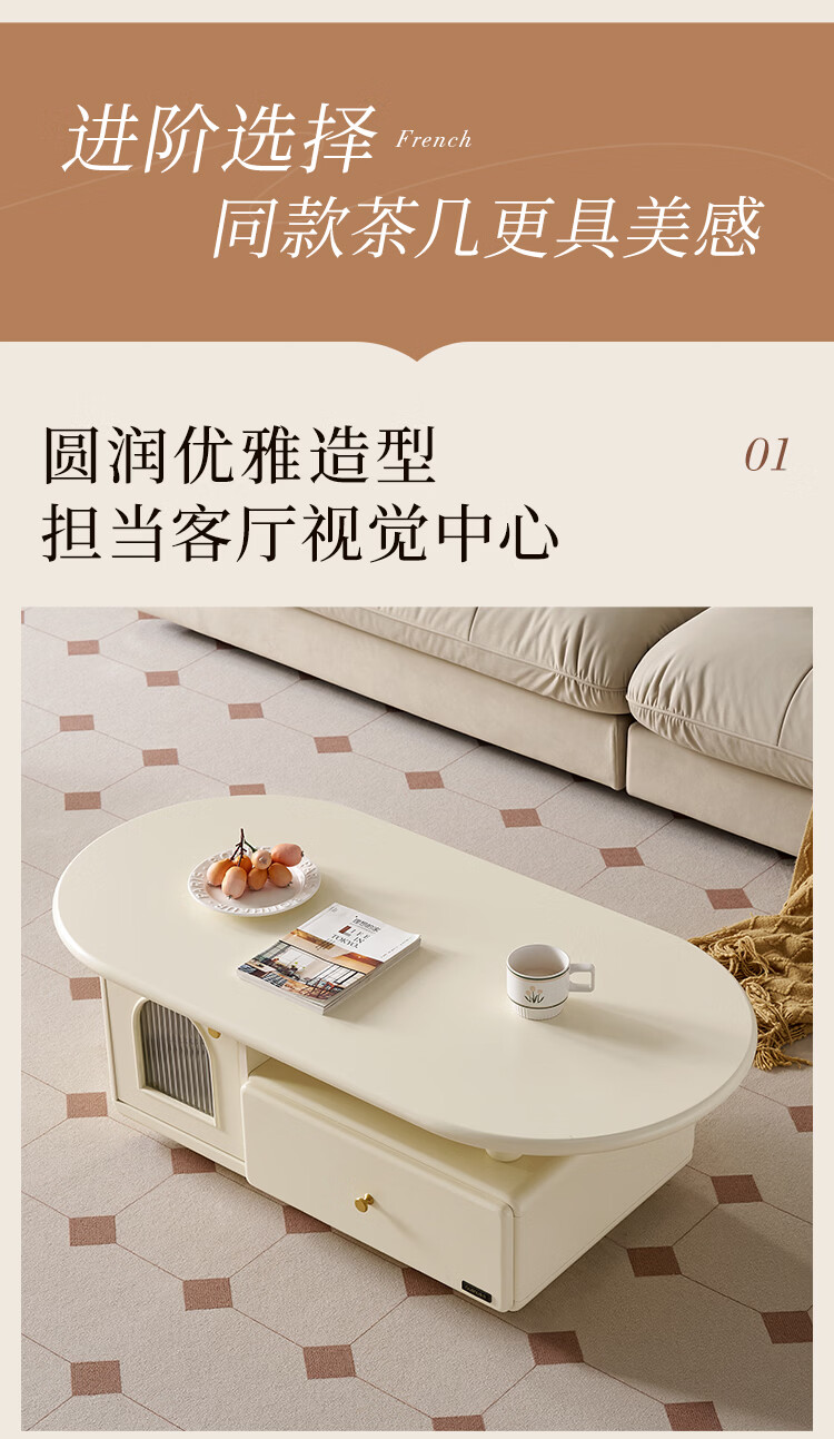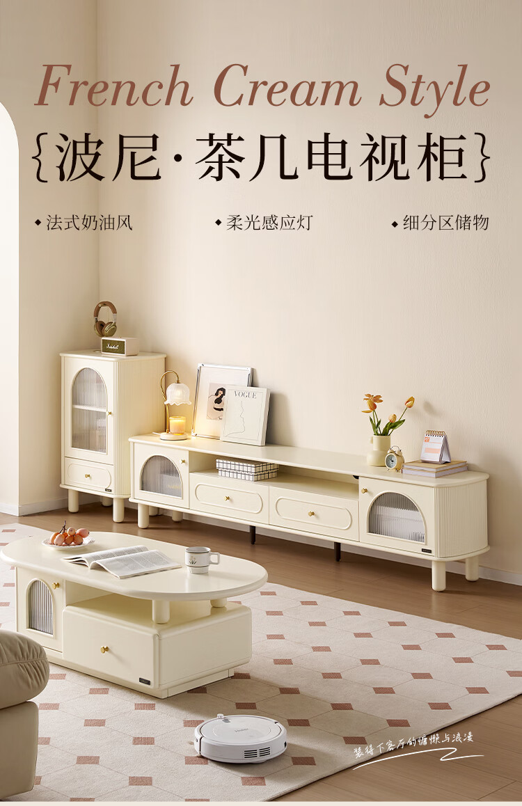 全友法式奶油风茶几电视柜客厅家用储物收纳桌功能电视柜茶桌组合套装 【奶油白】茶几