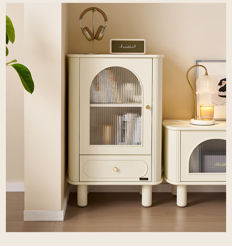 全友家居原木风实木餐边柜家用玻璃展示柜收纳储物小柜子沙发边柜KS 【樱桃木色|橡胶木】双门款餐边柜