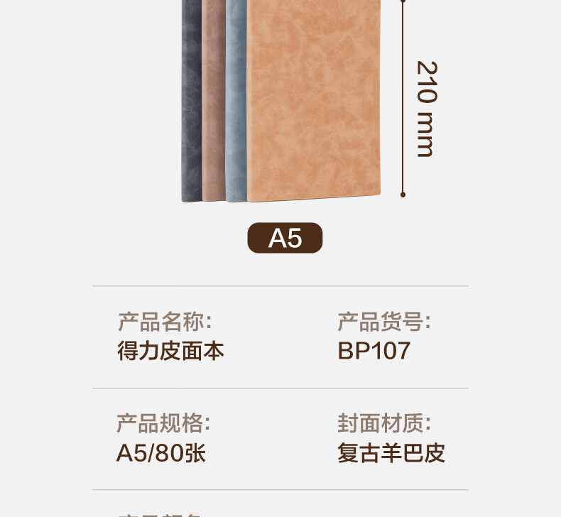 得力(deli)可定制笔记本时尚皮面本商务羊巴皮记事本会议记录本子A5/80张黄色单本装BP107