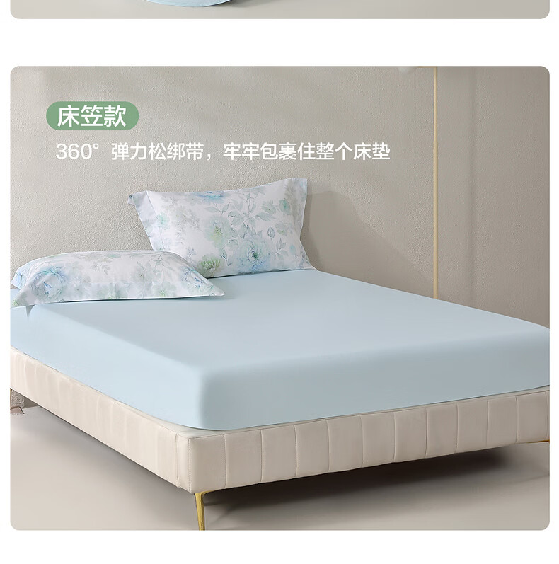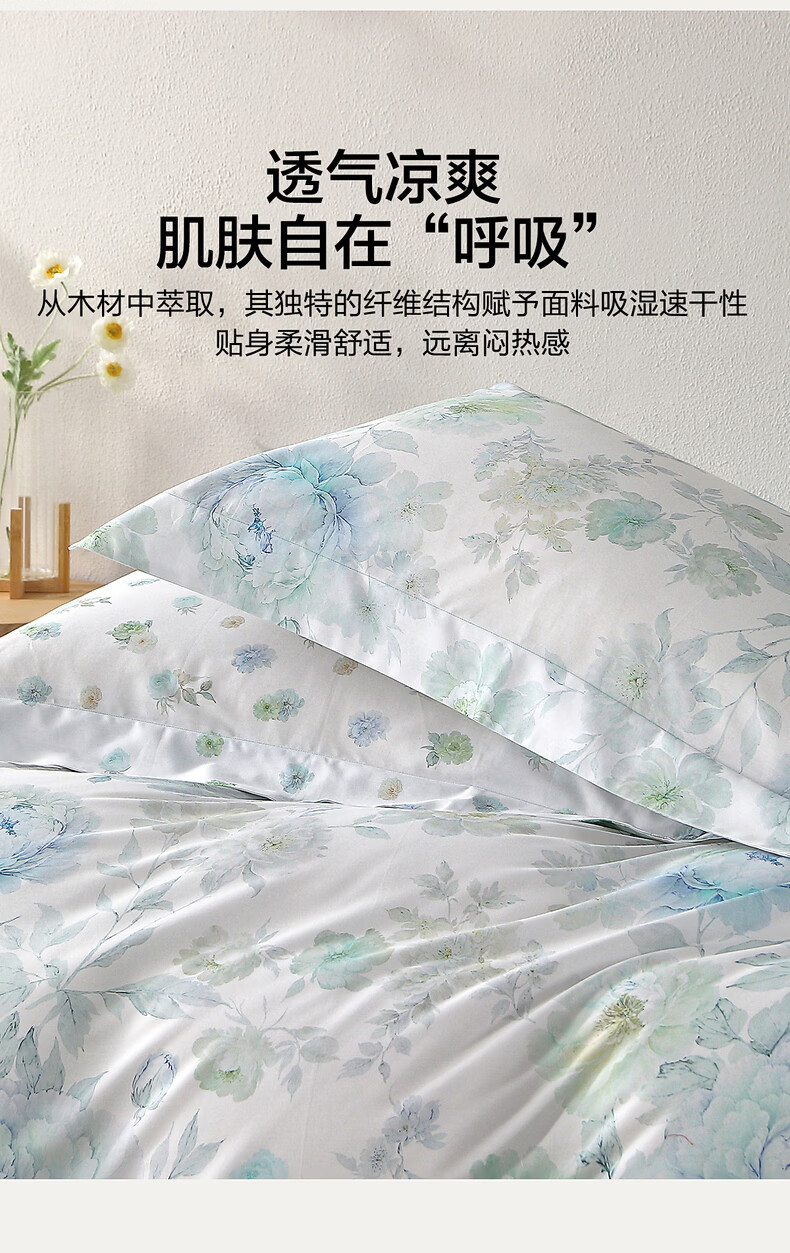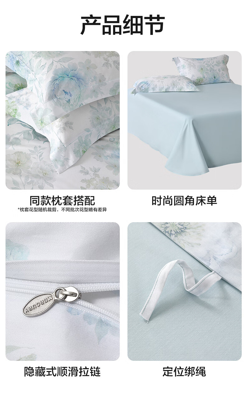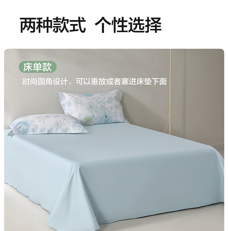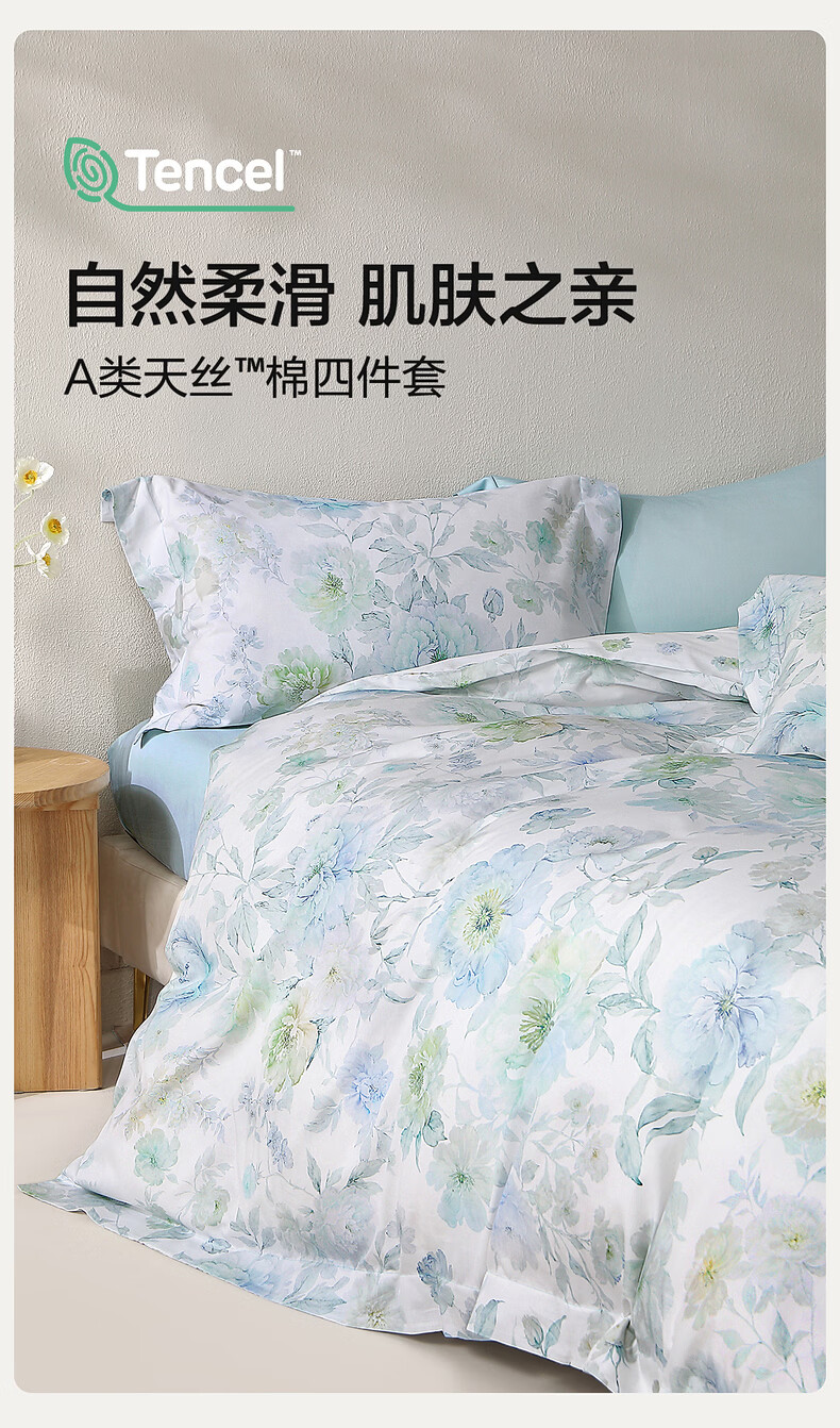 水星家纺四件套床上A类天丝™棉凉感莱赛尔被套枕套床单26年新款套件 繁花·花溪蓝 床单款 (被套150*210cm)