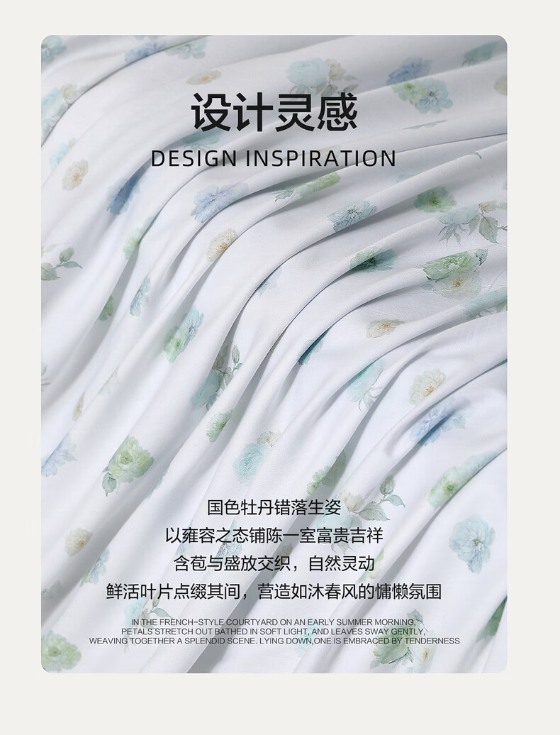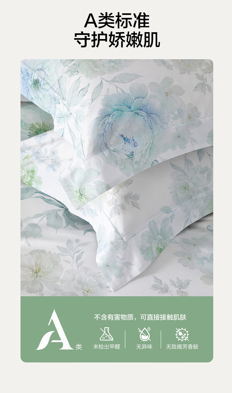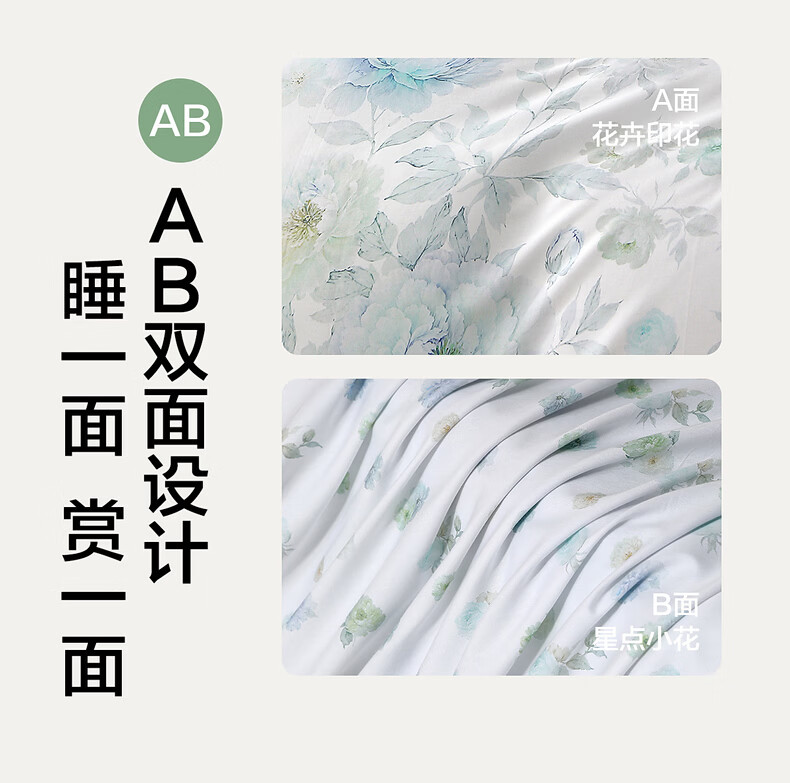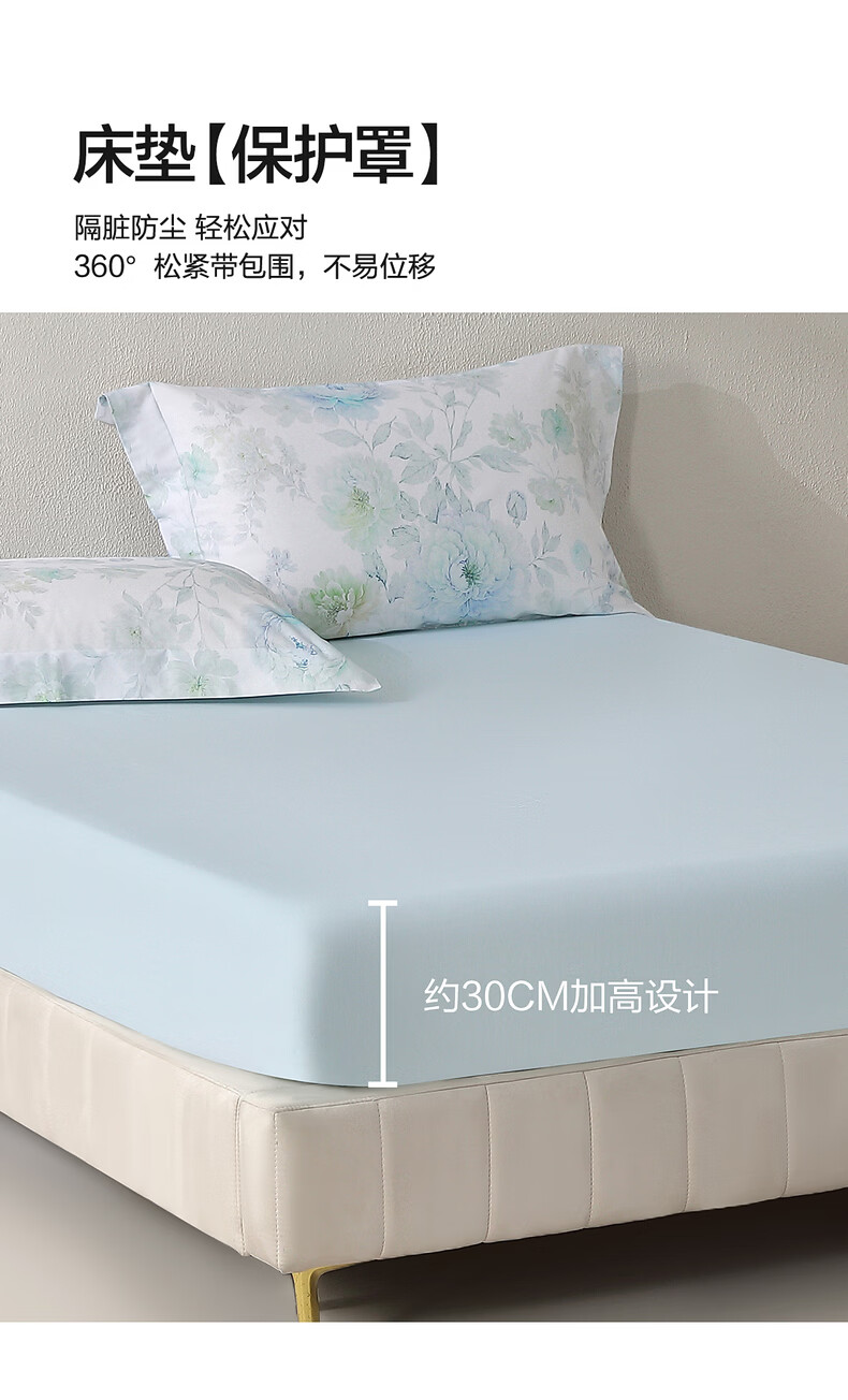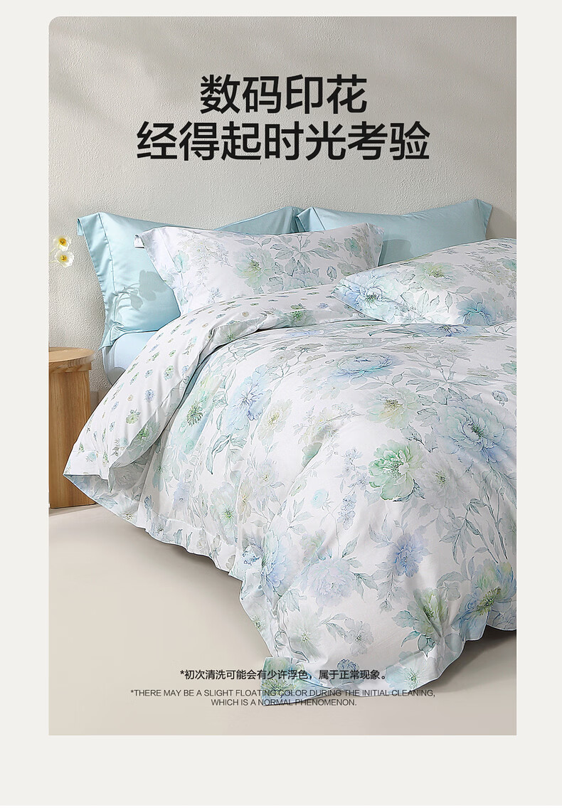 水星家纺四件套床上A类天丝™棉凉感莱赛尔被套枕套床单26年新款套件 繁花·花溪蓝 床单款 (被套150*210cm)