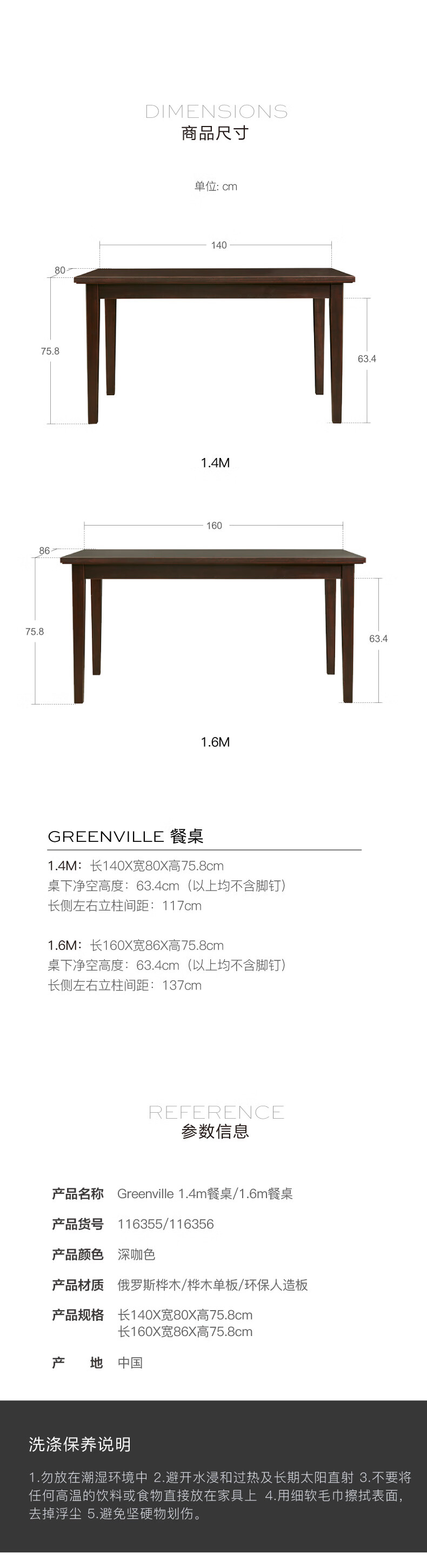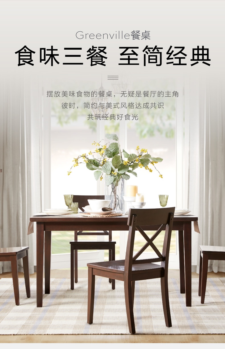 Harbor House【政府补贴】美式风餐桌椅 餐厅家具实木框架桌子椅子Greenville 1.4m餐桌-深咖色