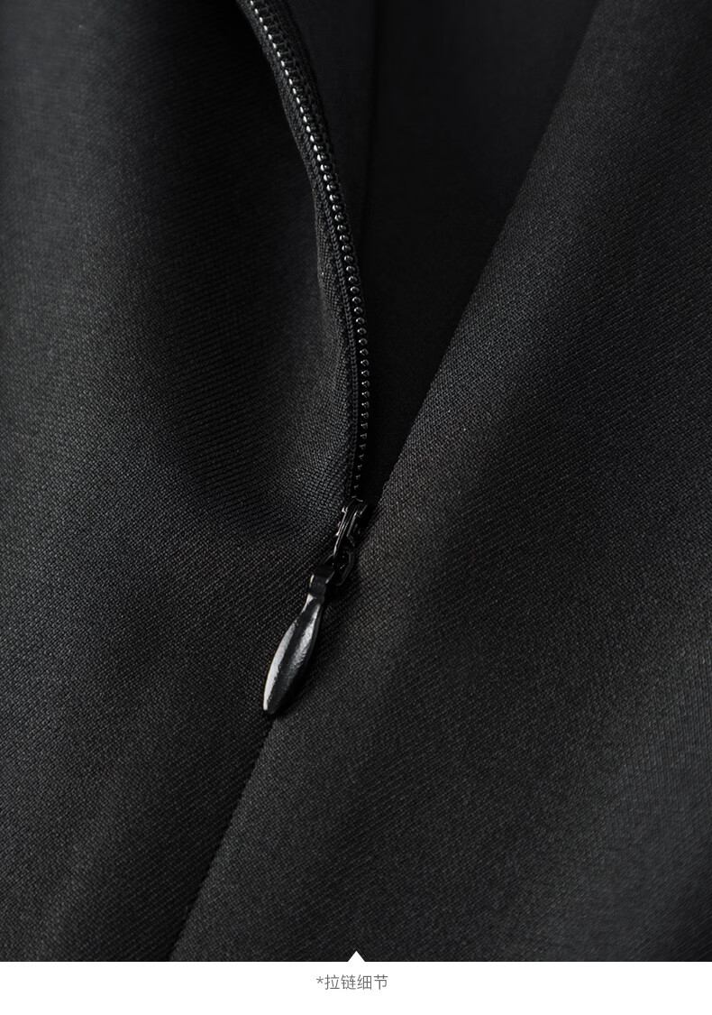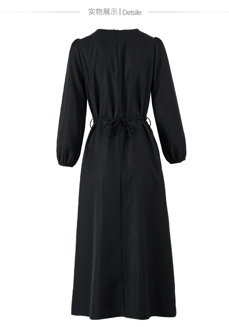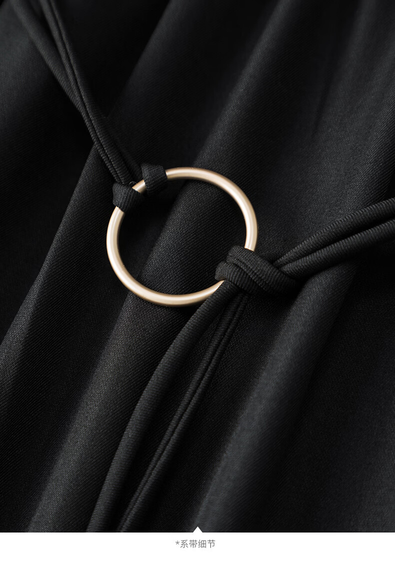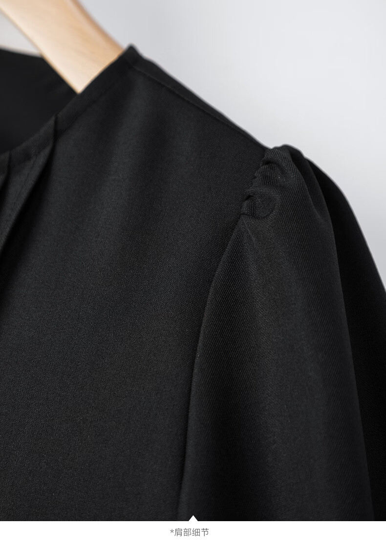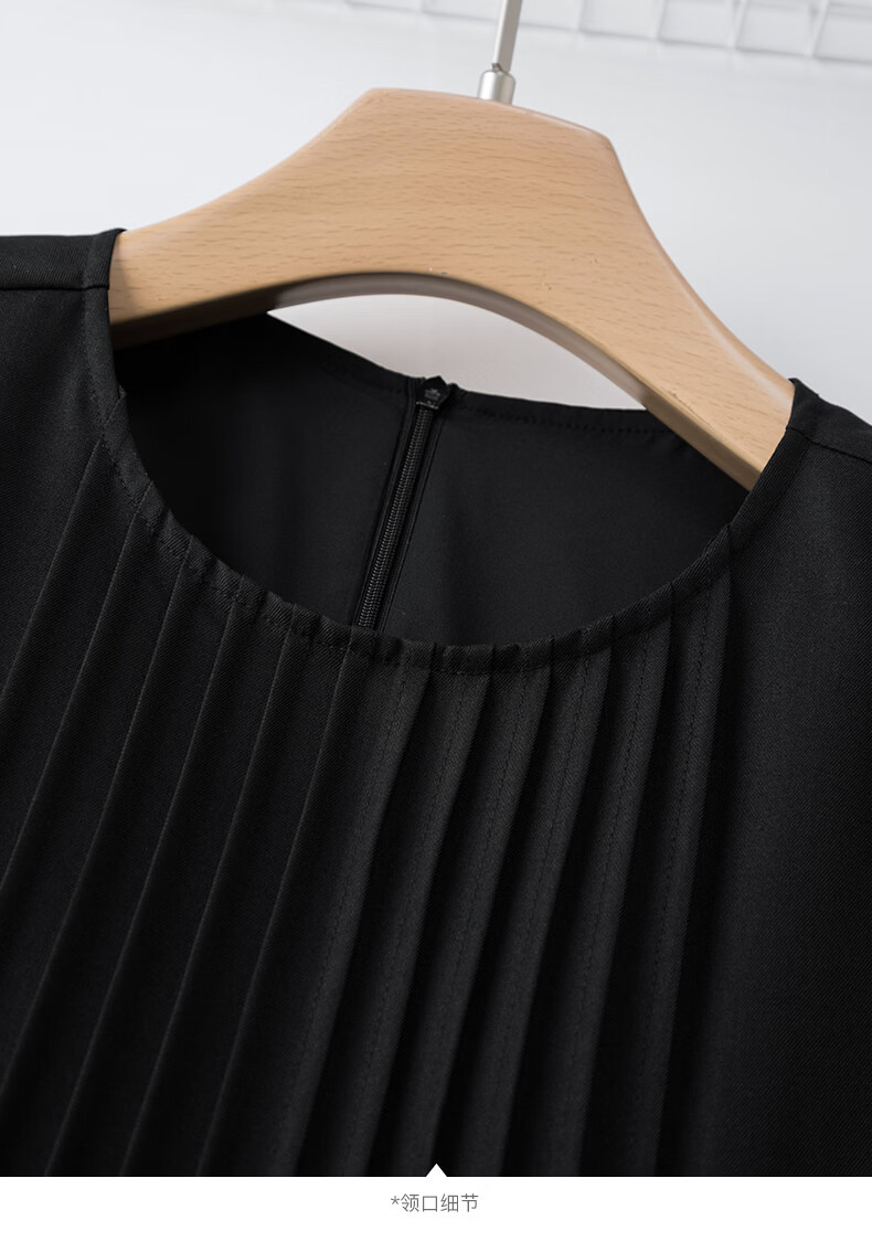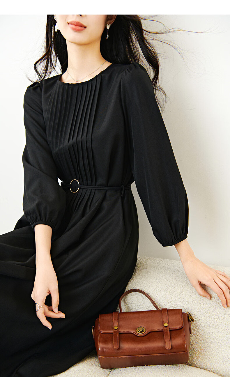 晚白2026年春款气质圆领大摆风琴褶裙子系带收腰显瘦利落通勤连衣裙 黑色 L
