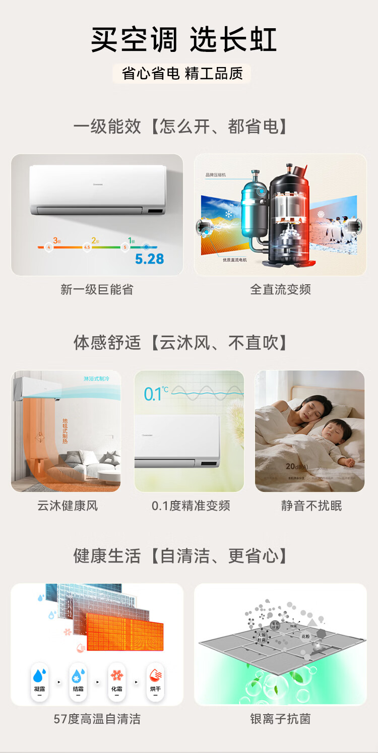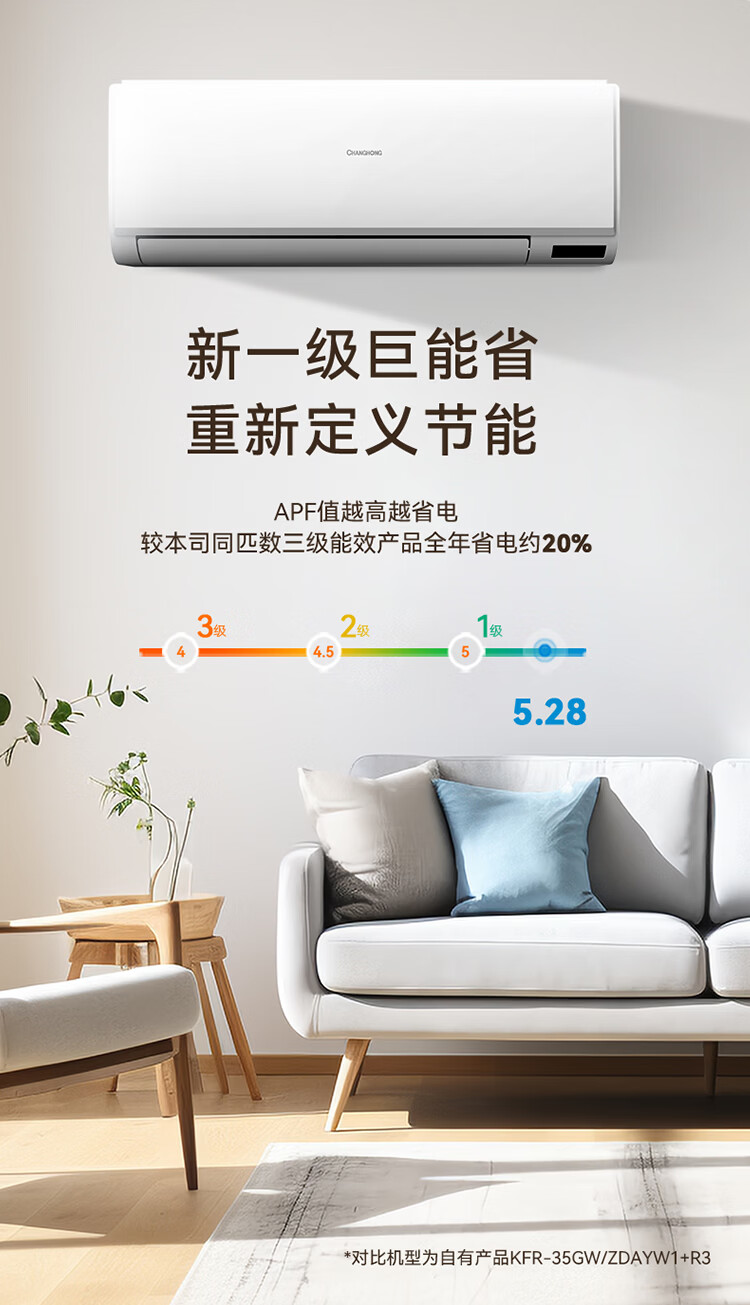 长虹空调 京小宅大1.5匹新一级超省电纯铜管家用变频冷暖卧室挂机国家补贴KFR-35GW/JDC1+R1十年包修