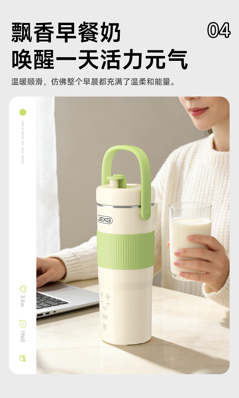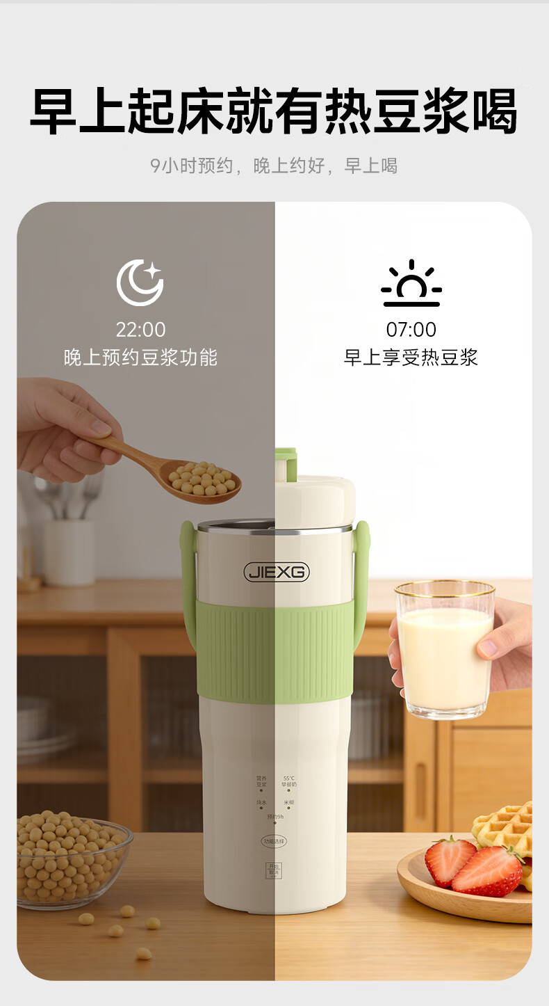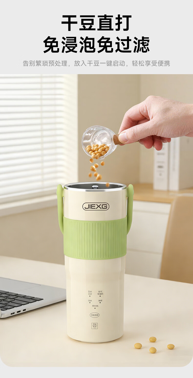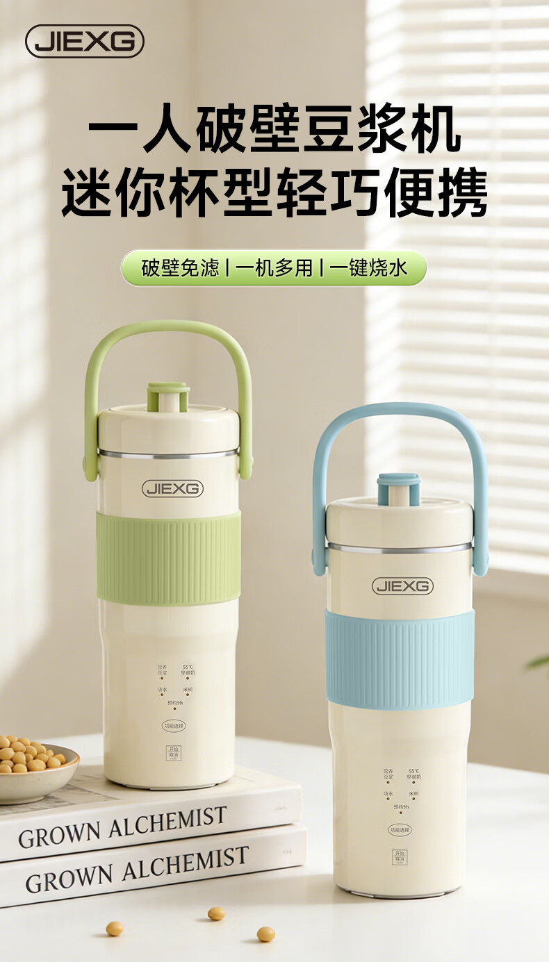 JIEXG迷你豆浆机变频细腻免滤便携式豆浆杯静轻音全自动小型1-2人 五谷杂粮米糊榨汁破壁机升级无刷电机 浅绿色 0.35L 【26新款】安睡轻音+可预约
