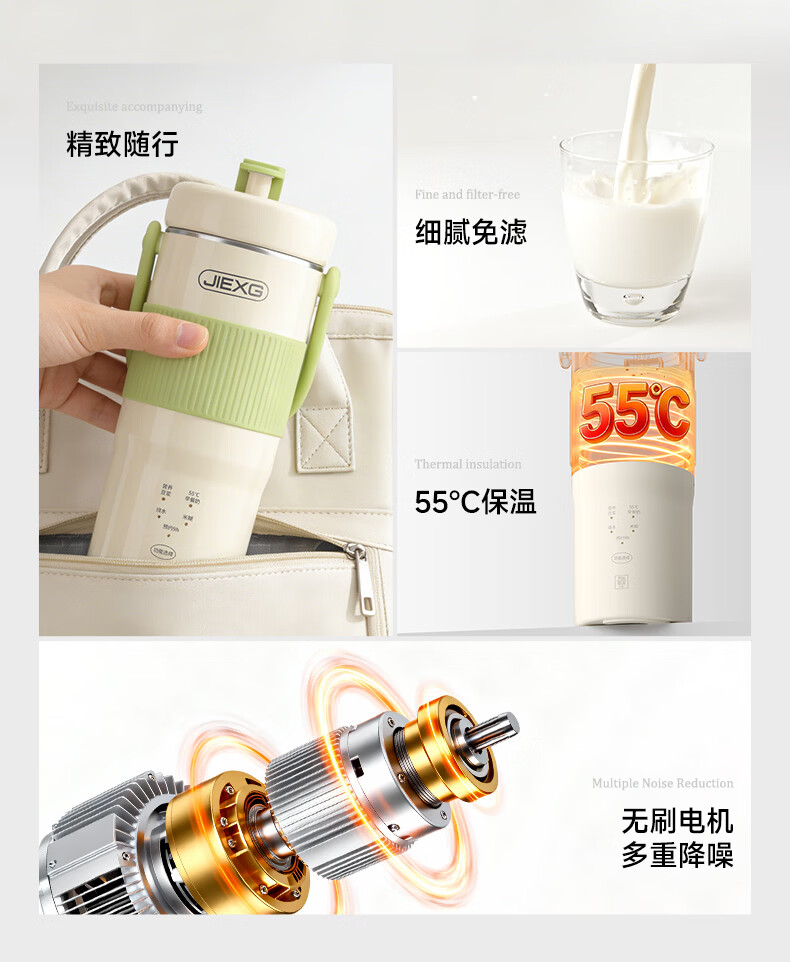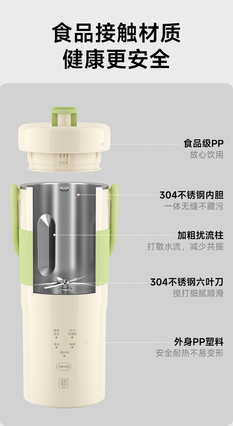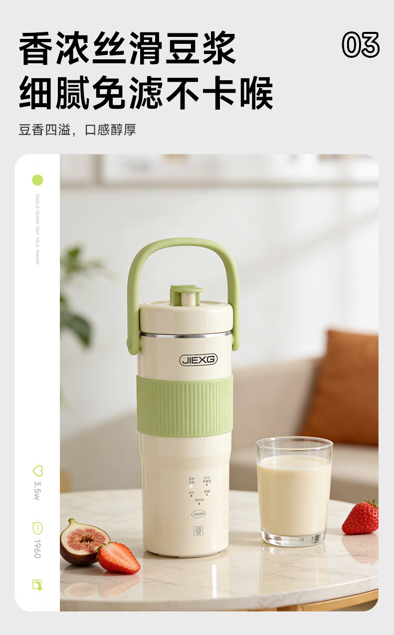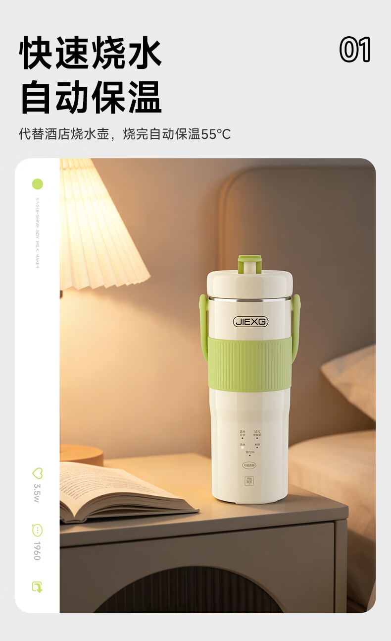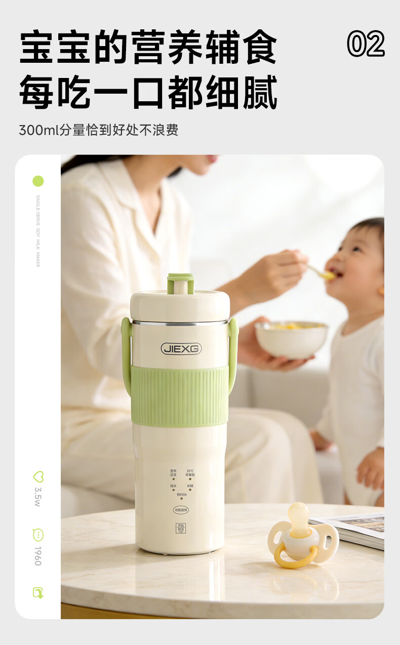 JIEXG迷你豆浆机变频细腻免滤便携式豆浆杯静轻音全自动小型1-2人 五谷杂粮米糊榨汁破壁机升级无刷电机 浅绿色 0.35L 【26新款】安睡轻音+可预约
