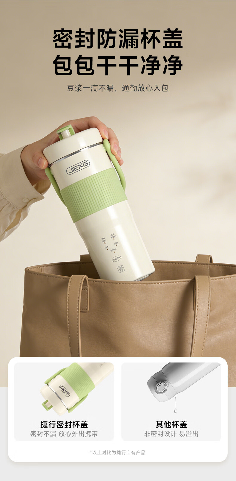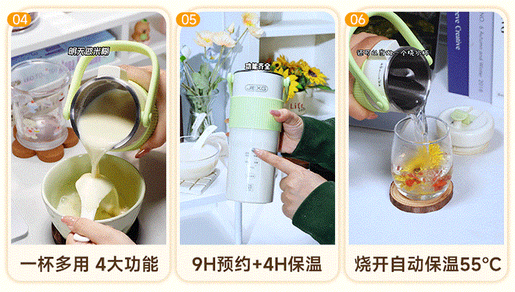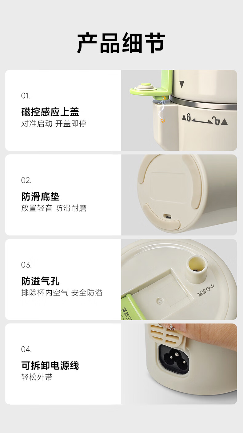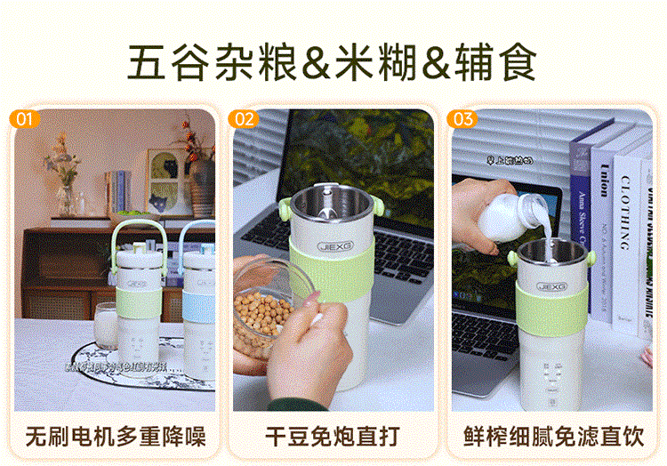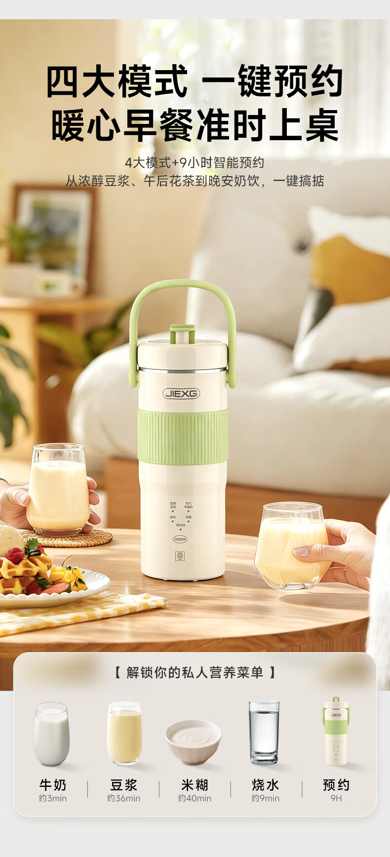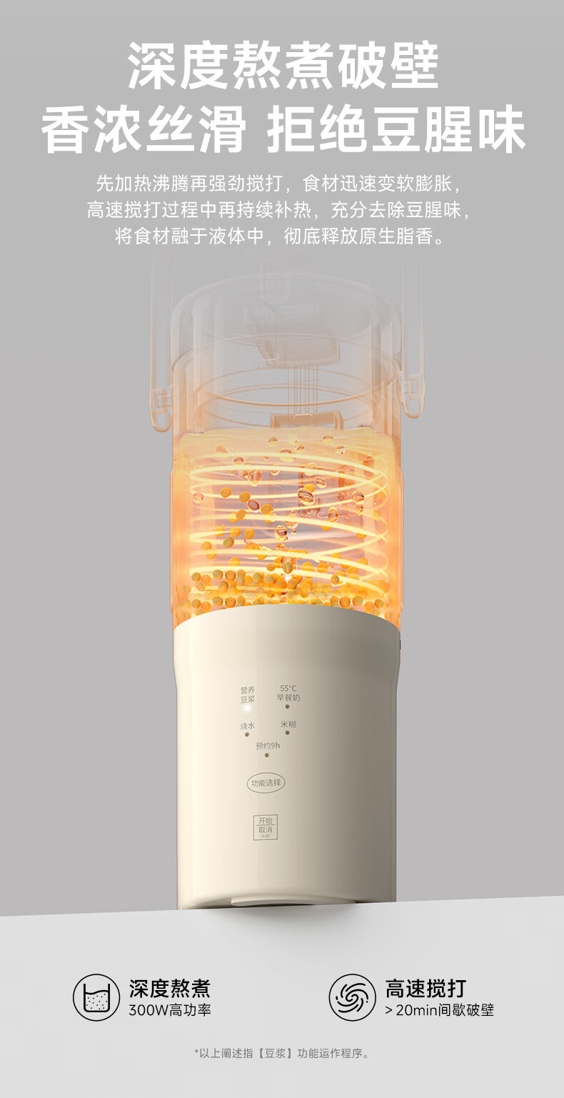 JIEXG迷你豆浆机变频细腻免滤便携式豆浆杯静轻音全自动小型1-2人 五谷杂粮米糊榨汁破壁机升级无刷电机 浅绿色 0.35L 【26新款】安睡轻音+可预约