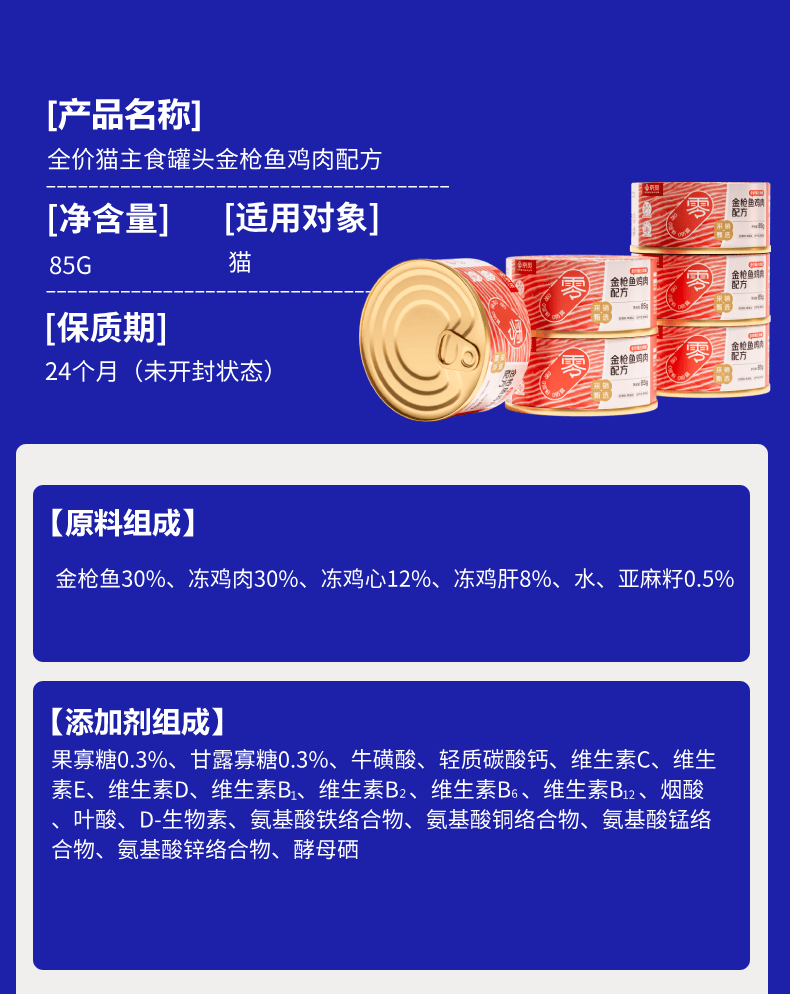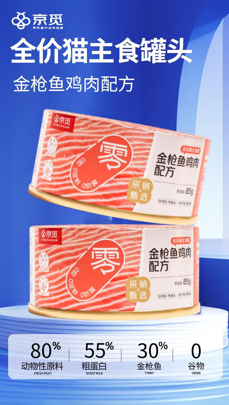 京觅猫罐头全价罐头猫咪主食金枪鱼鸡肉配方猫零食湿粮85g*6罐