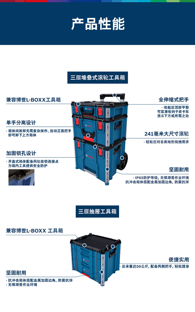 博世(BOSCH)进口工具箱堆叠式多功能收纳组合L-BOXX专家级大容量拉杆车 L-Boxx 上层Contractor 170