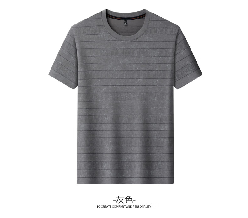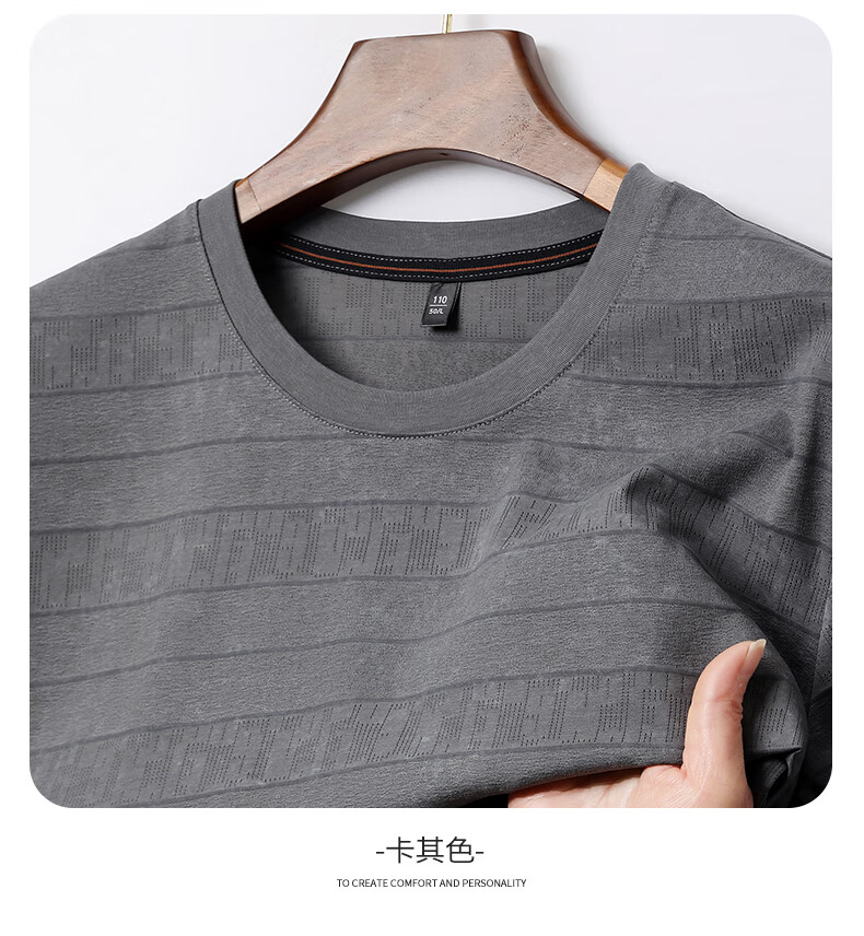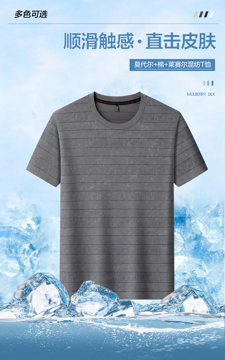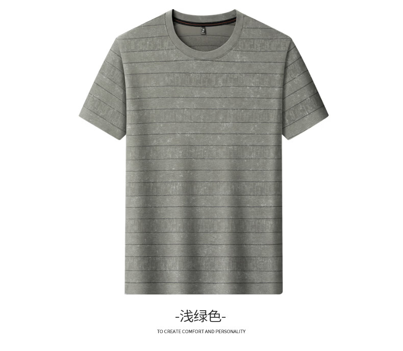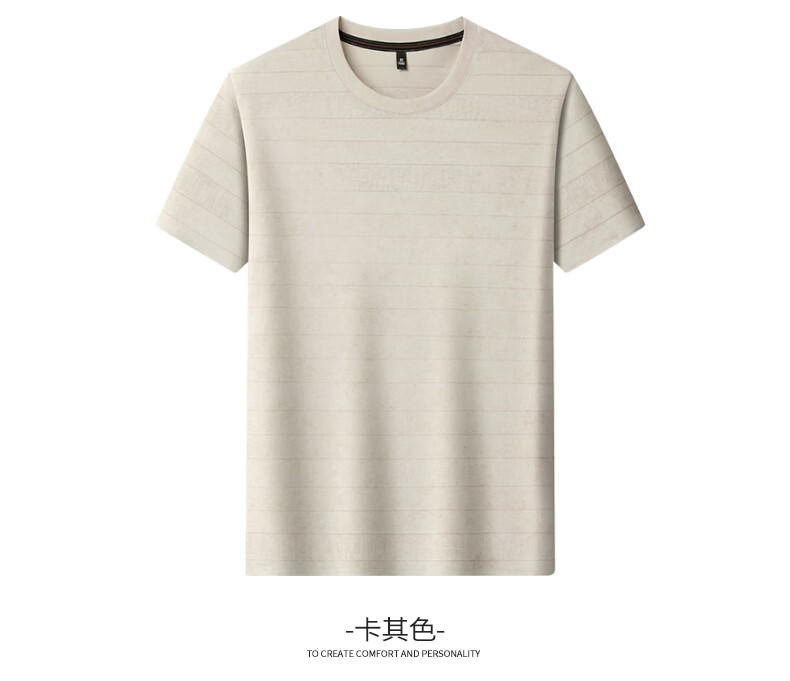 SHANSHAN杉杉莱赛尔含棉印花条纹圆领短袖t恤男休闲夏季新款 卡其色 M /170