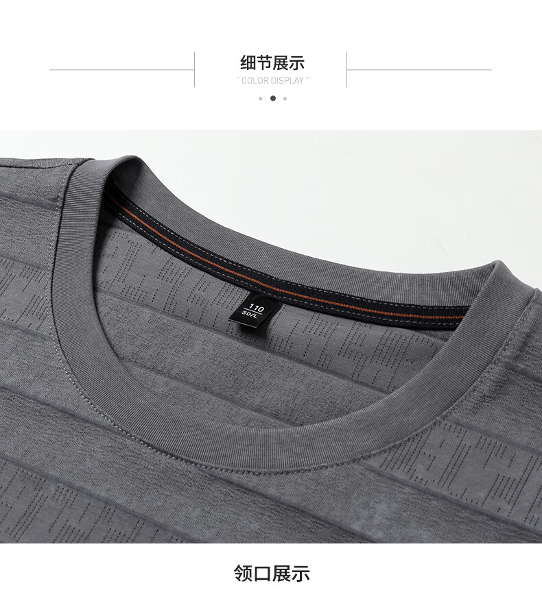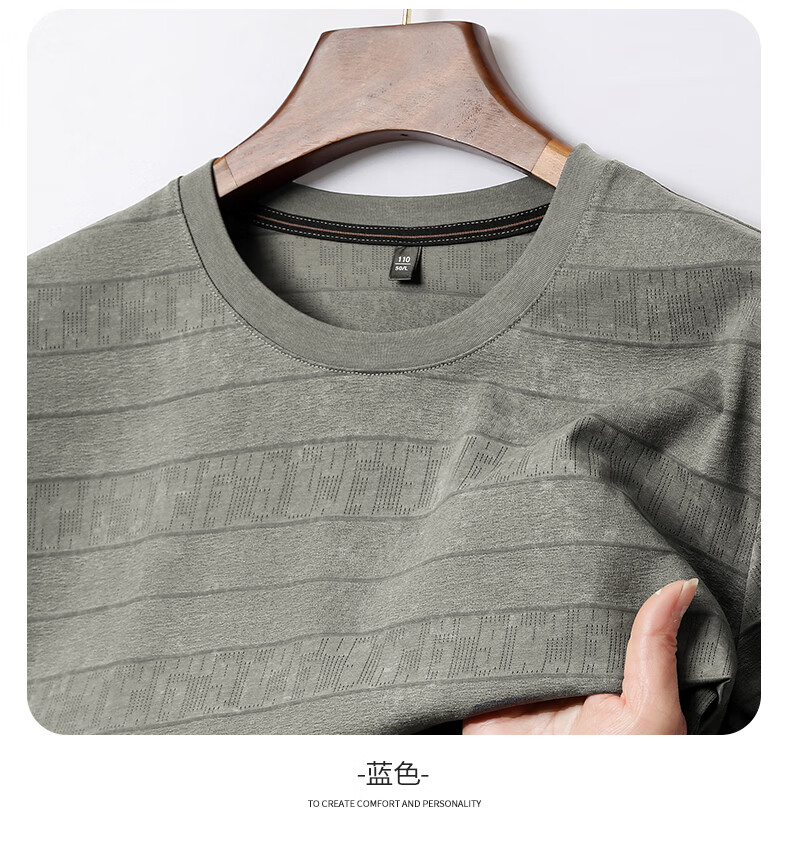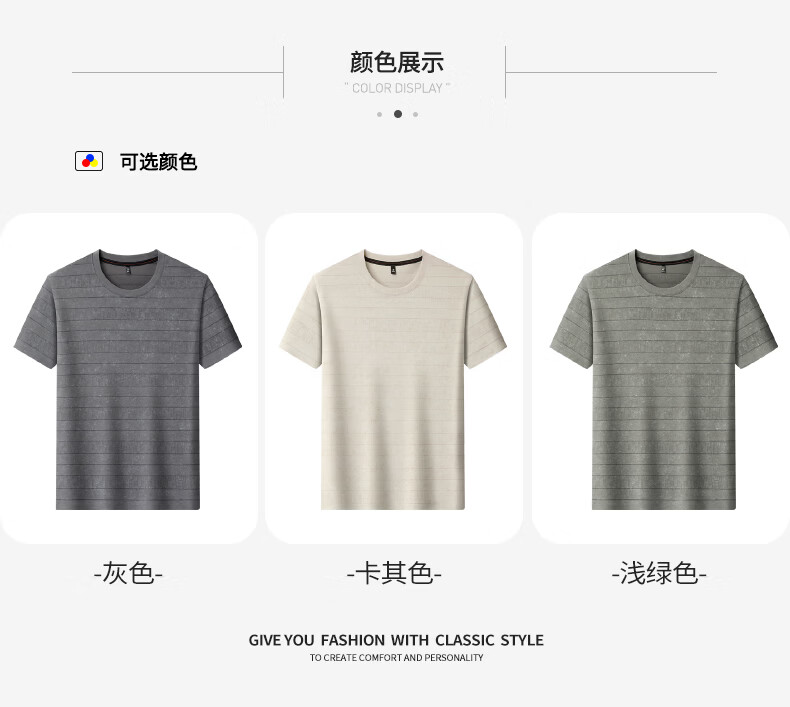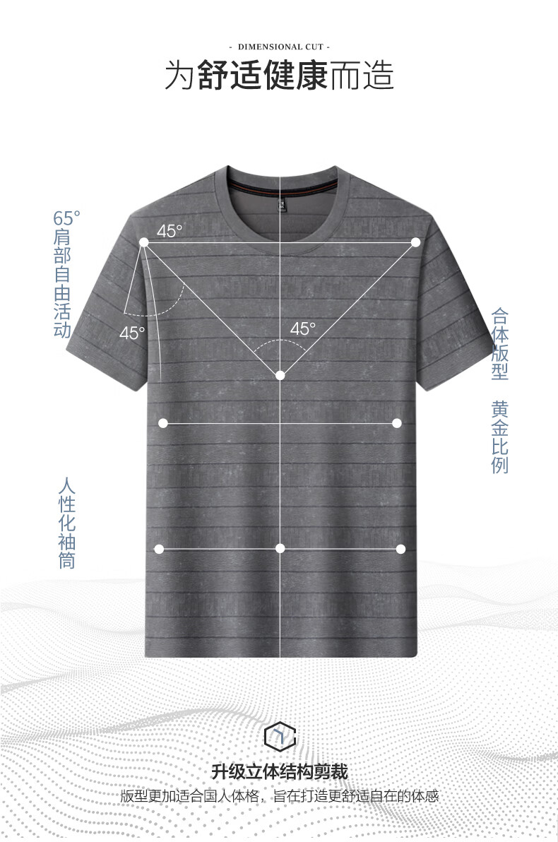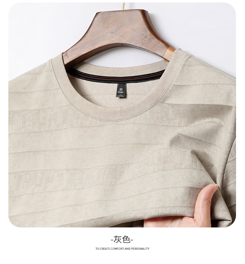 SHANSHAN杉杉莱赛尔含棉印花条纹圆领短袖t恤男休闲夏季新款 卡其色 M /170