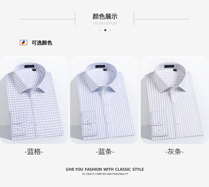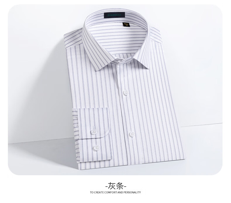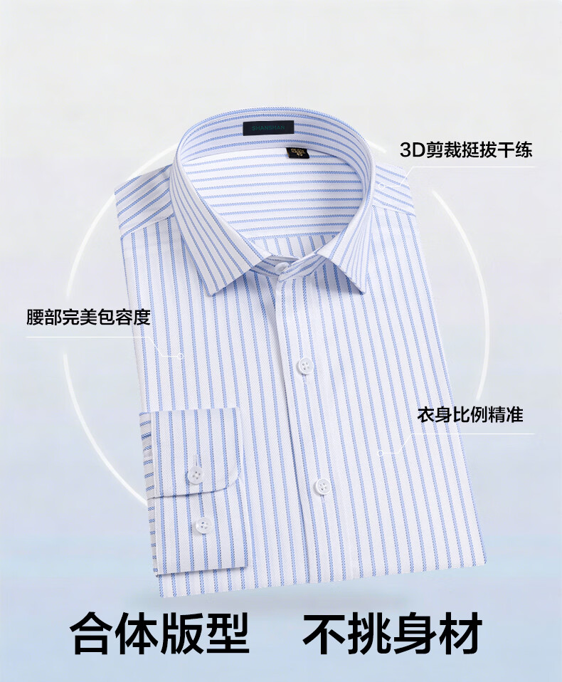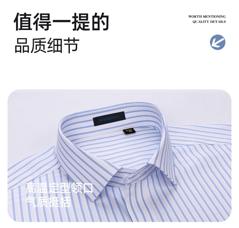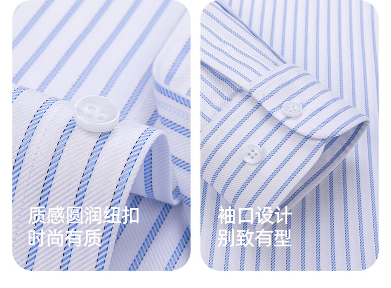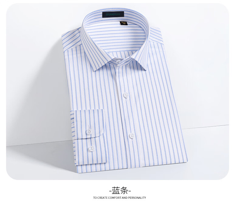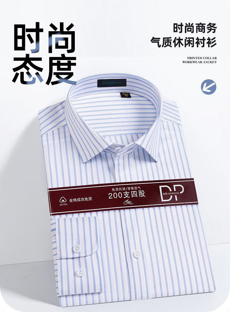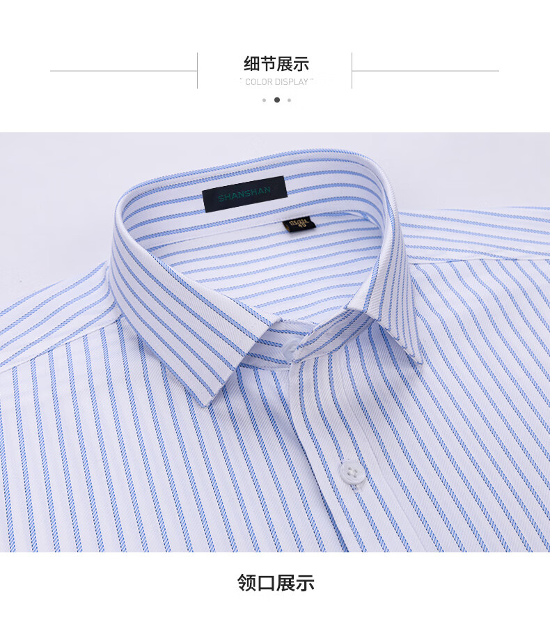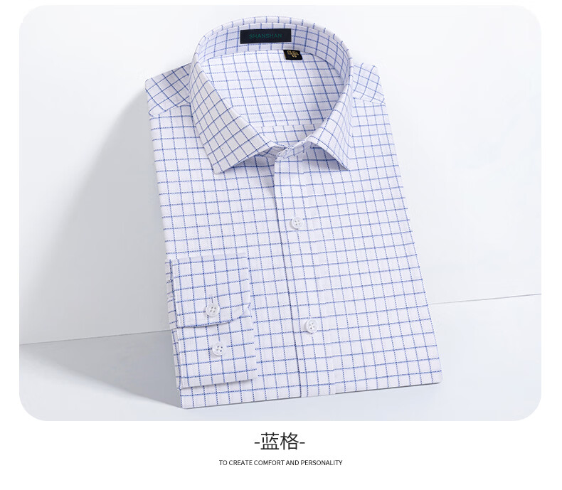 SHANSHAN杉杉【200支DP免烫】衬衫男春季长袖纯棉高端商务打底衬衣 蓝格 38