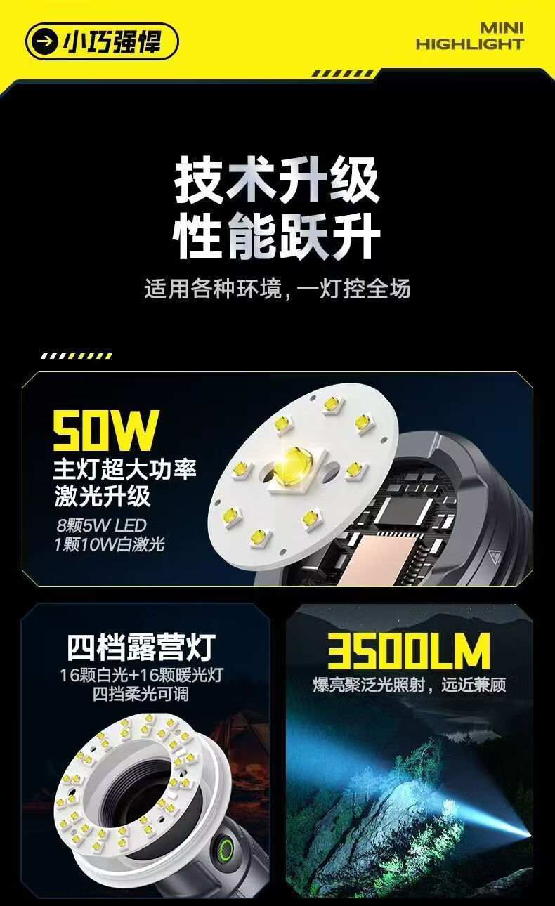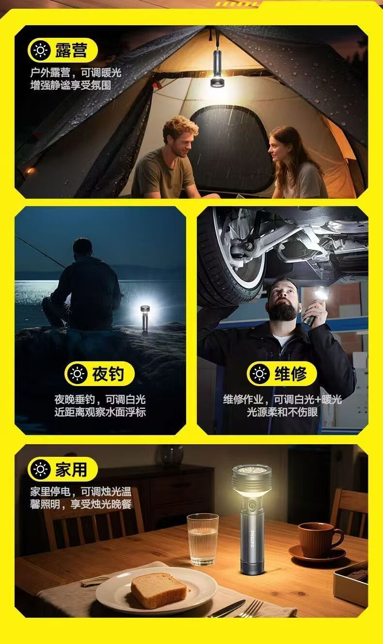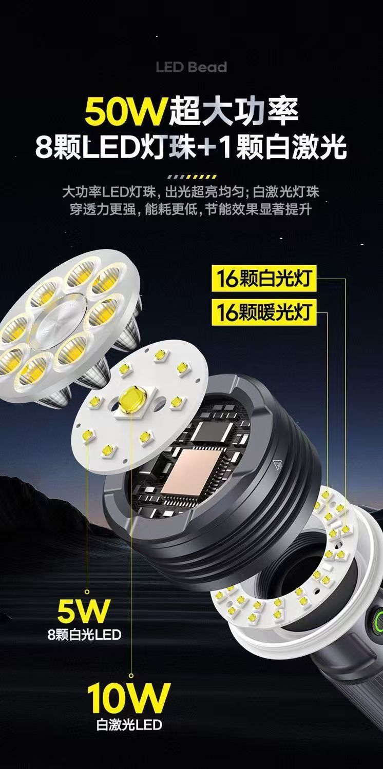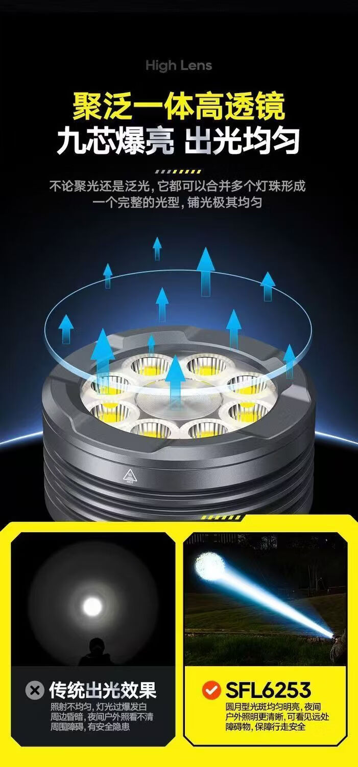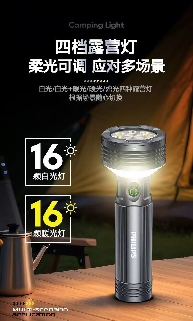 飞利浦(PHILIPS)强光手电筒远射投远近射泛光变焦高亮续航时长便携铝合金可充电户外照明巡逻手电SFL6253 50W/5000毫安/变焦/SFL6253