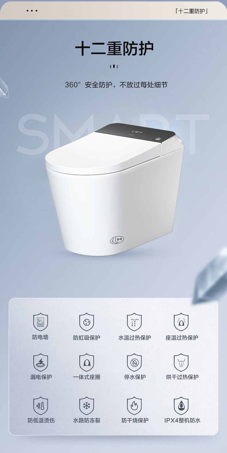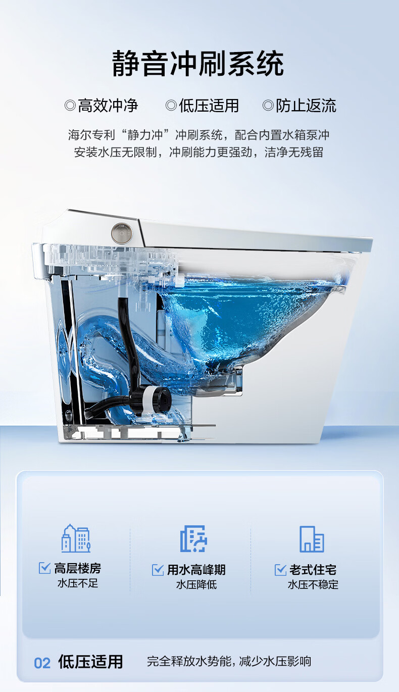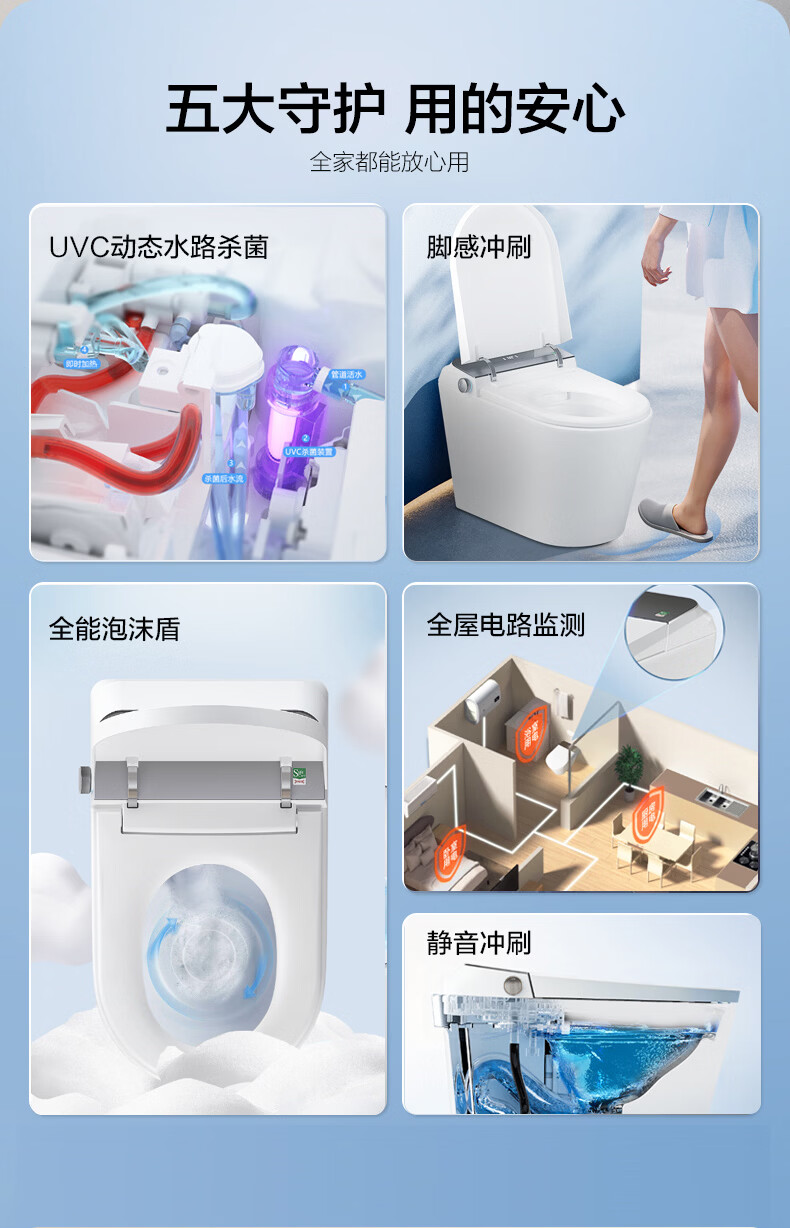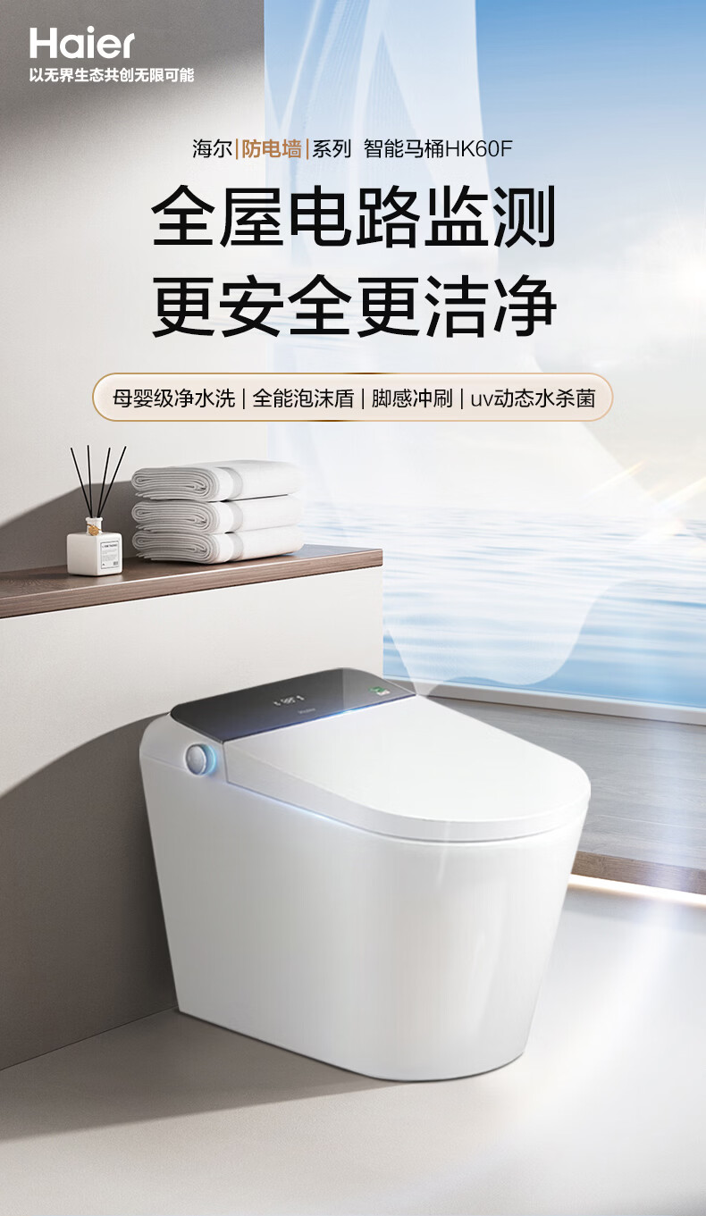 海尔(Haier)智能马桶 U形大座圈感应翻盖泡沫防溅全功能电热马桶自动冲水 【UVC水路杀菌】H3KS 坑距是285-385选 305/300mm