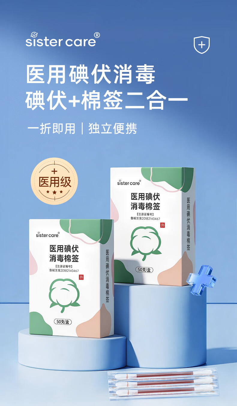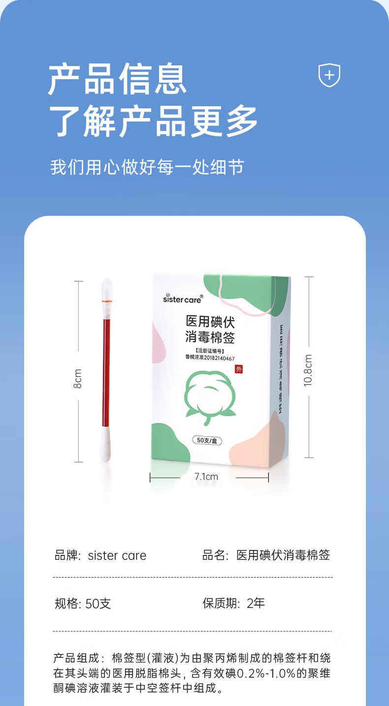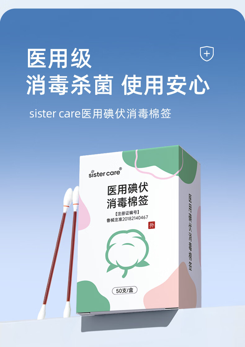 sister care医用碘伏消毒液棉棒50支新生儿婴儿碘伏棉签成人儿童肚脐伤口消毒