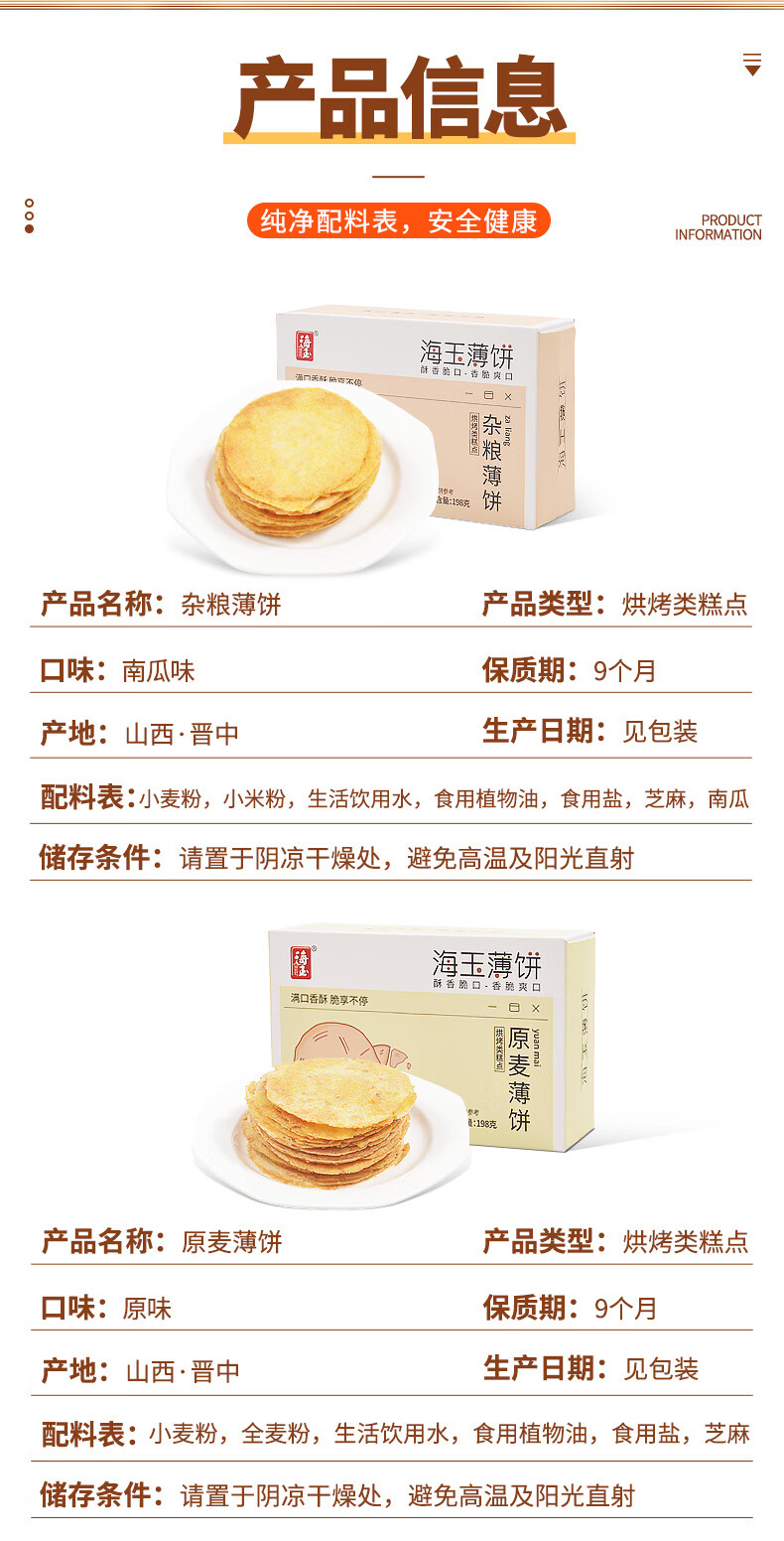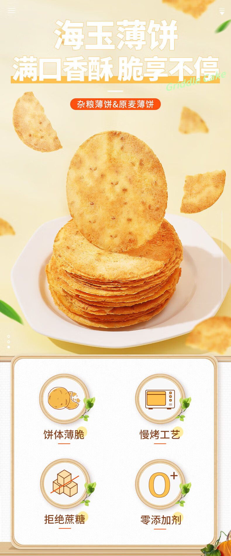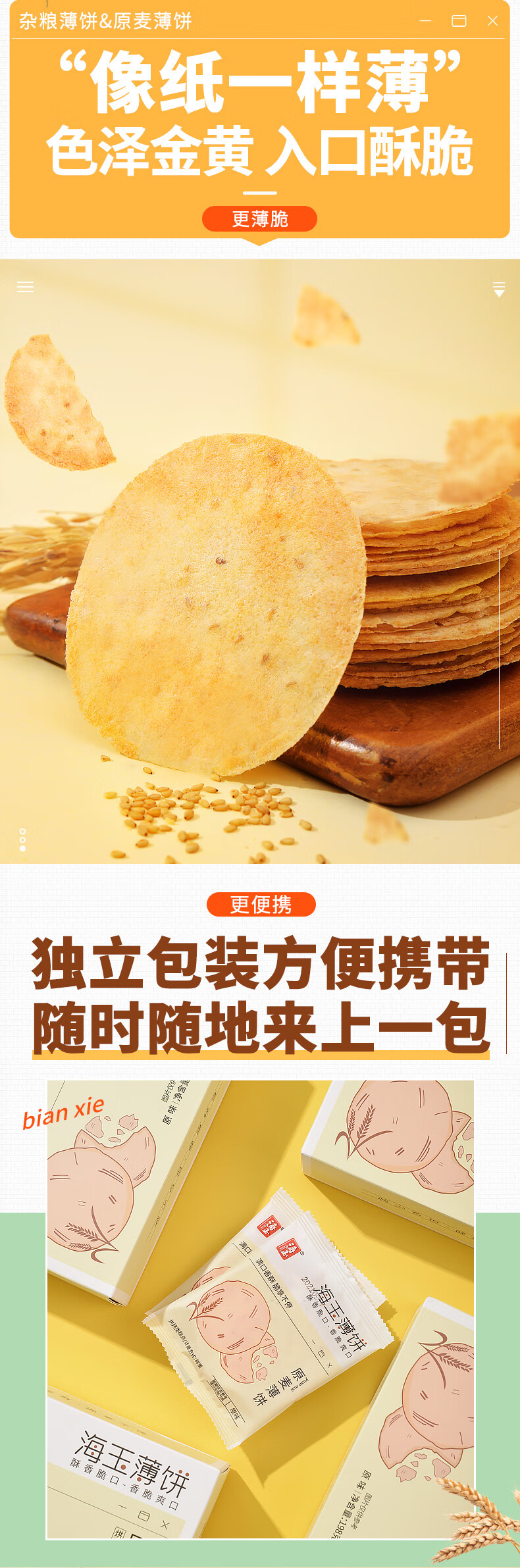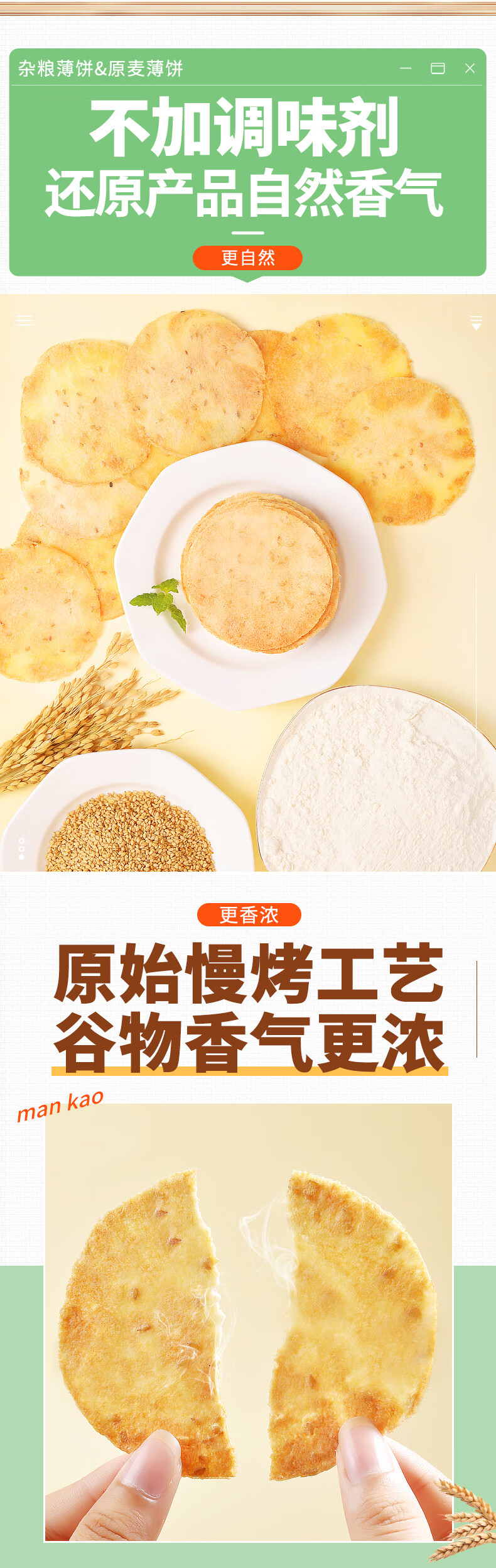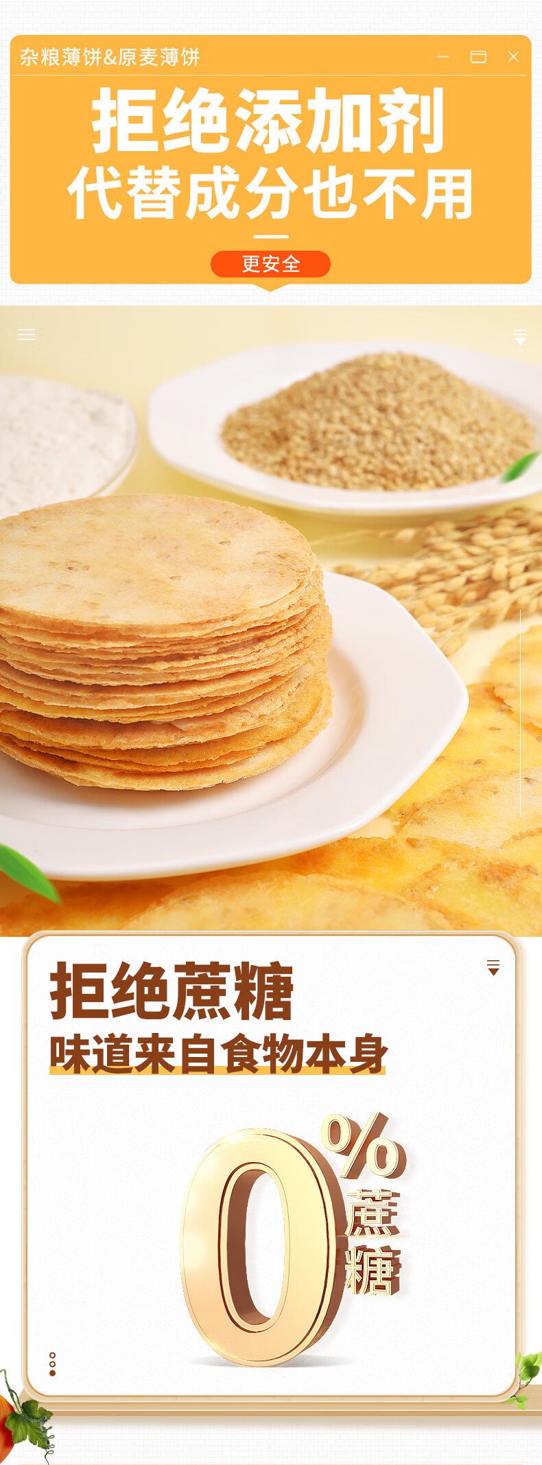 海玉全麦薄脆饼干 粗粮原麦风吹饼无糖精孕妇健康儿童零食品休闲198g