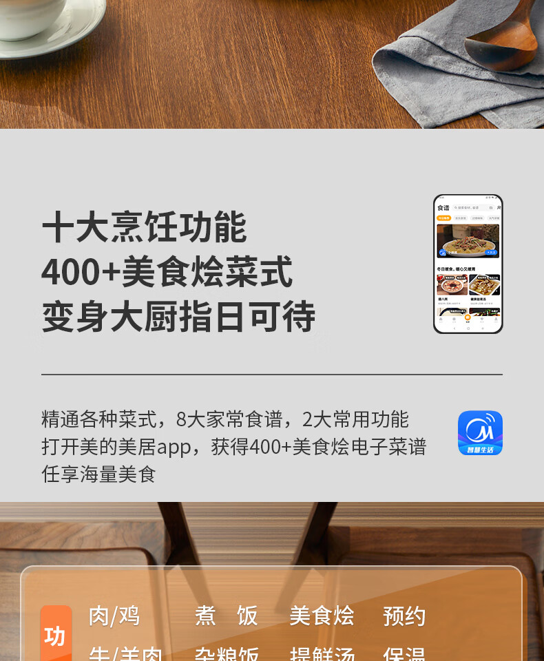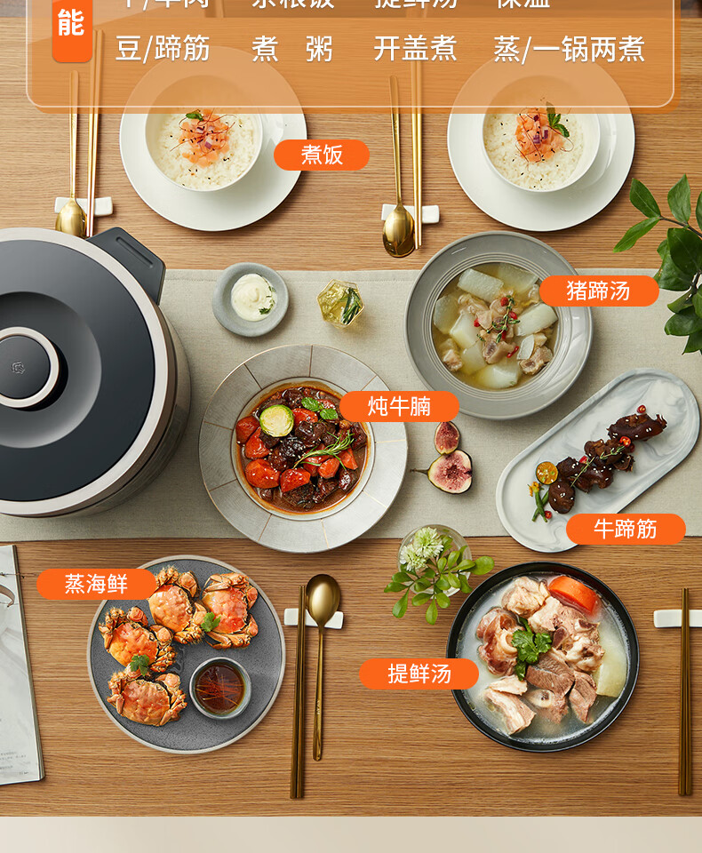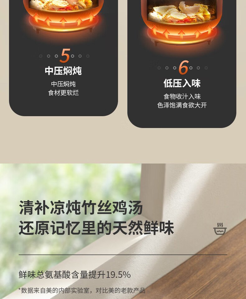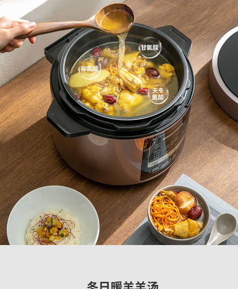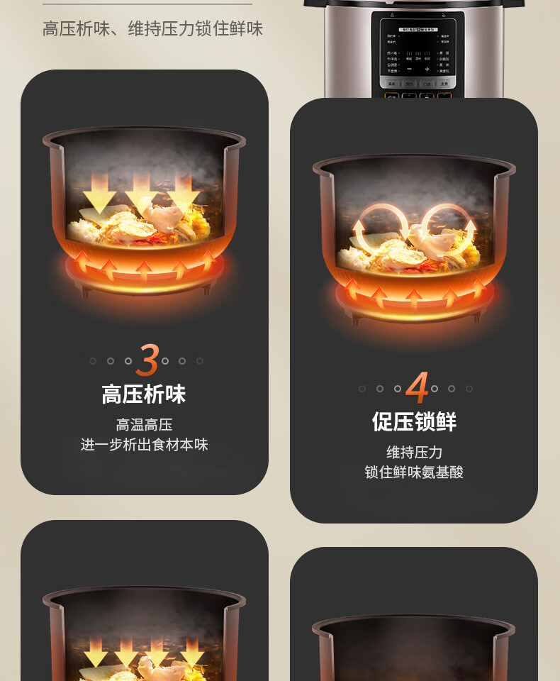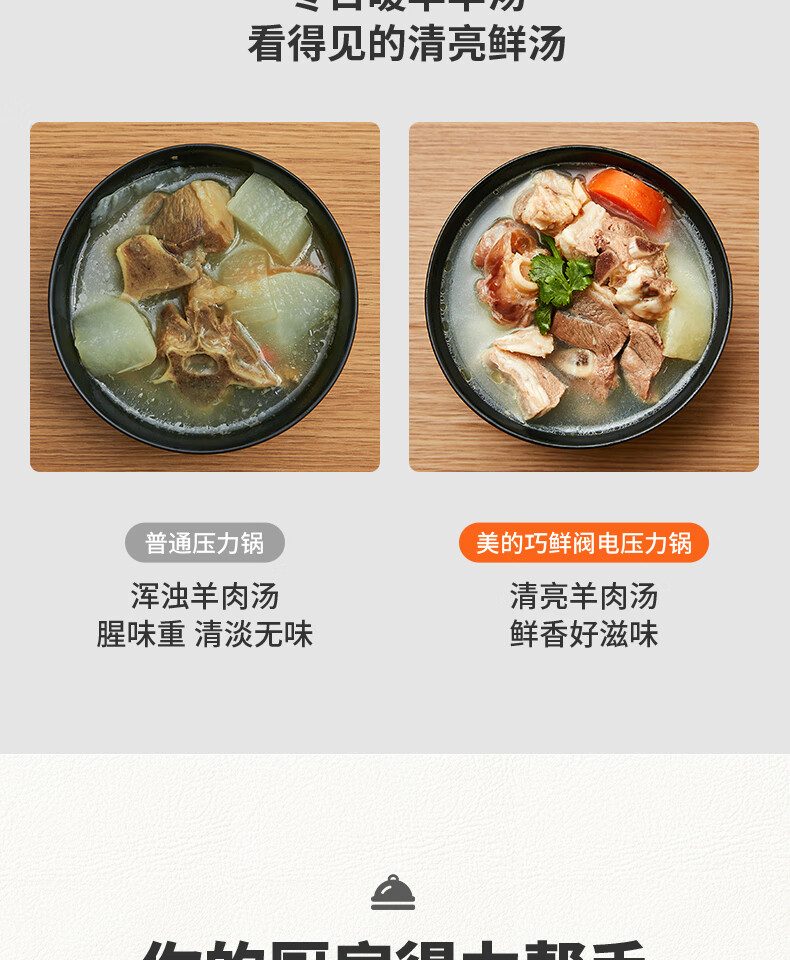 美的(Midea)电压力锅6升大容量家用高压锅提鲜一锅双胆煮饭锅多功能不粘智能预约煲汤一键排气带蒸笼上蒸下煮