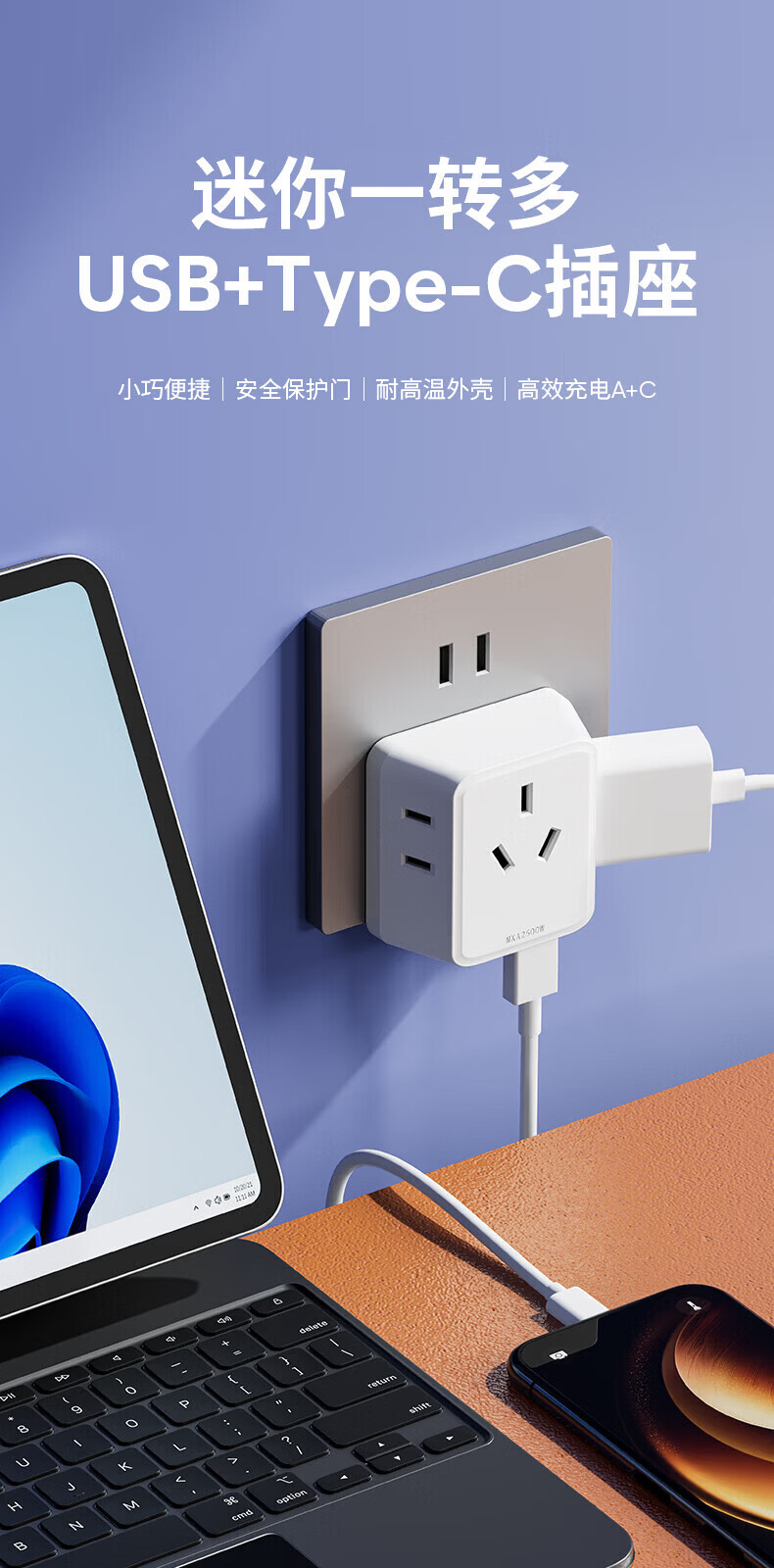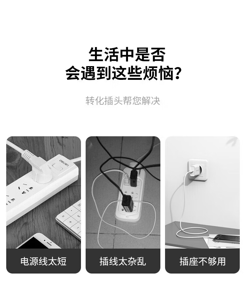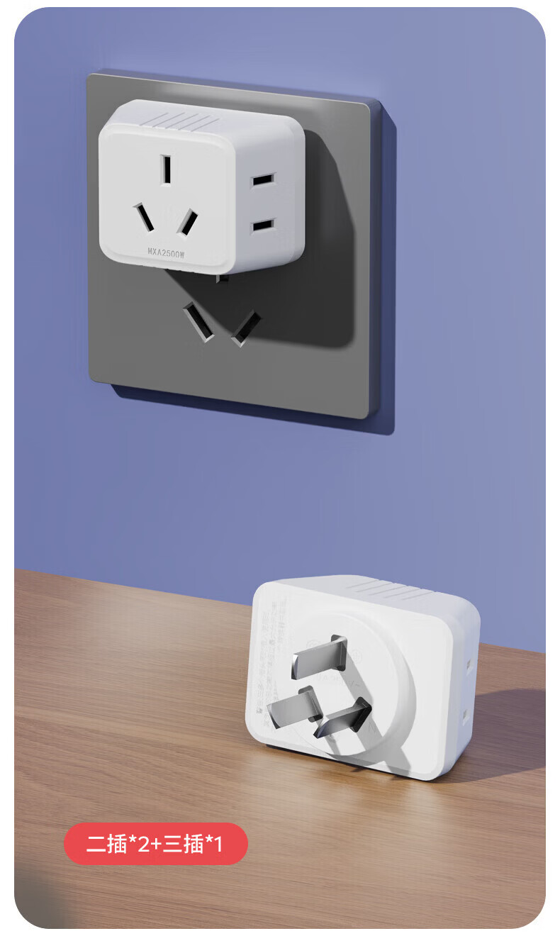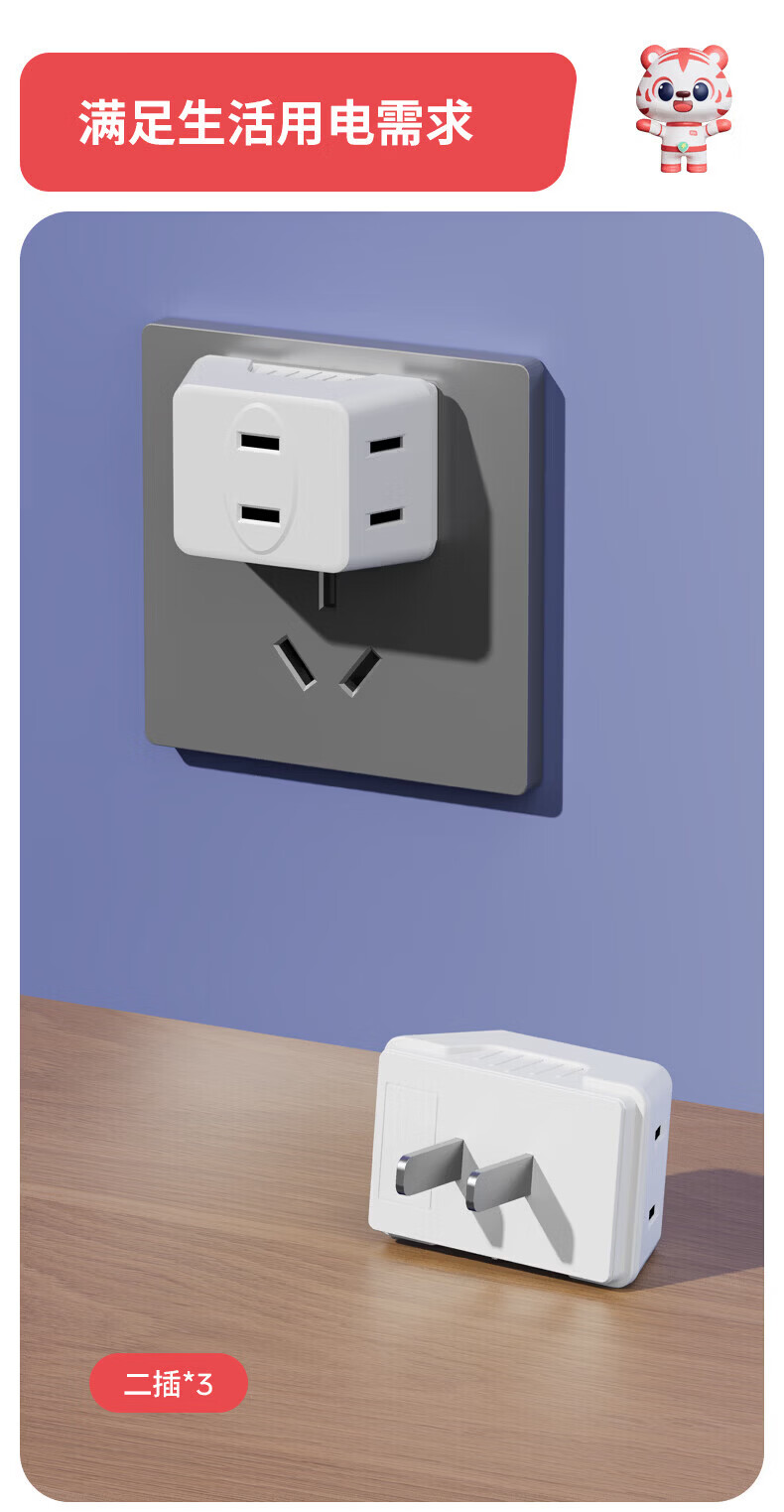 国际电工(FDD)家用迷你转换器插头一转多拓展插座宿舍多功能便携无线USB电源插 白色-迷你一转六插座