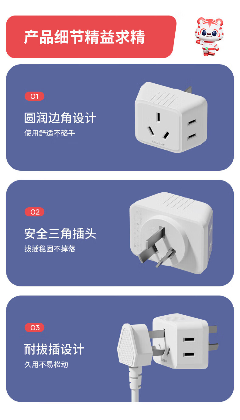 国际电工直插式扩展插座家用厨房分控带开关排插多功能带线拓展插板插线板 白色2.1A快充-五开35孔-向右扩展