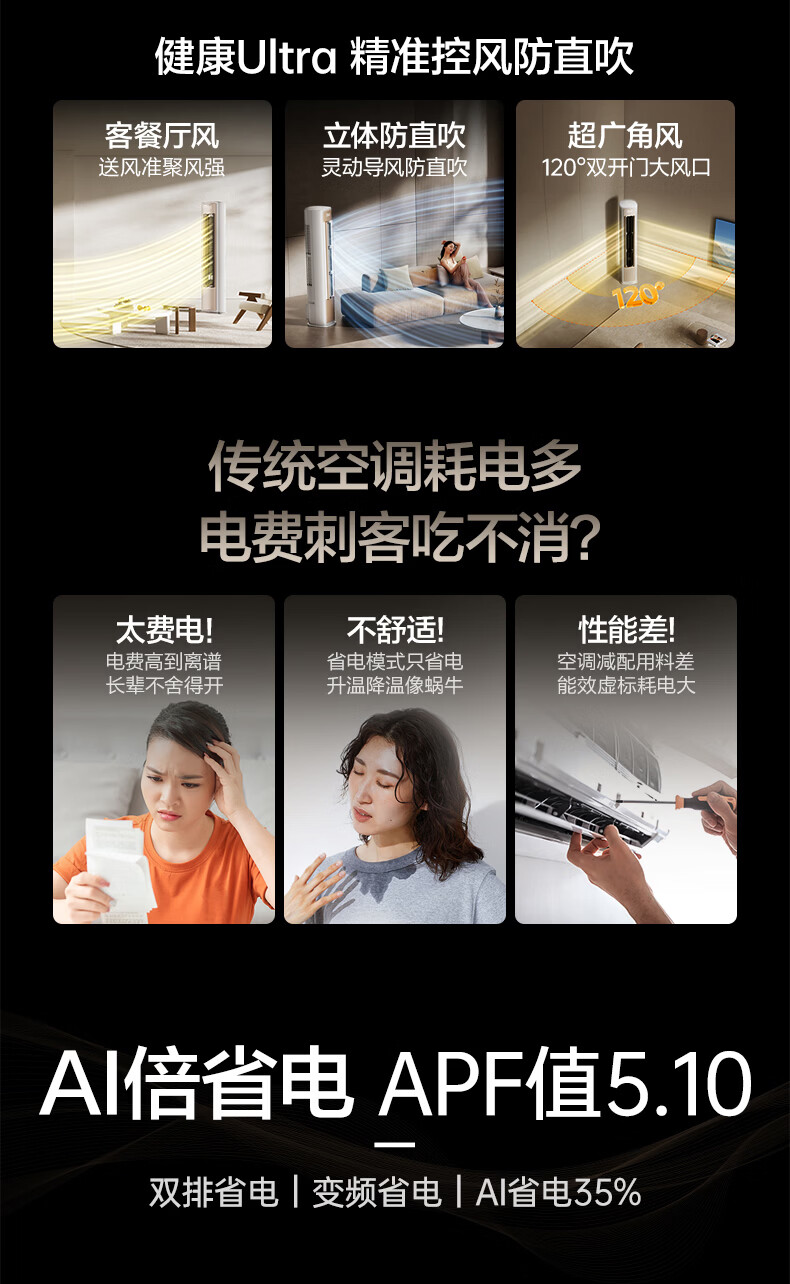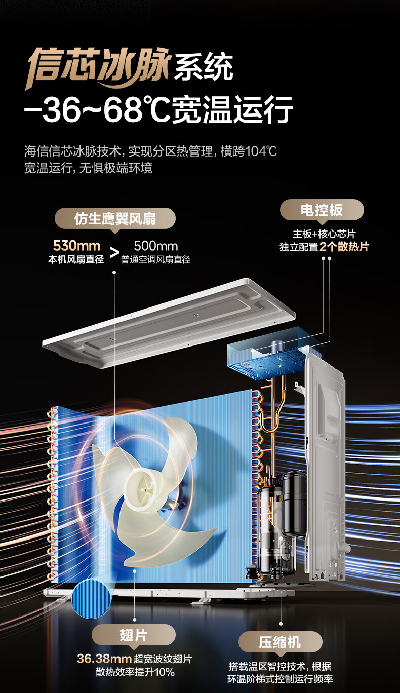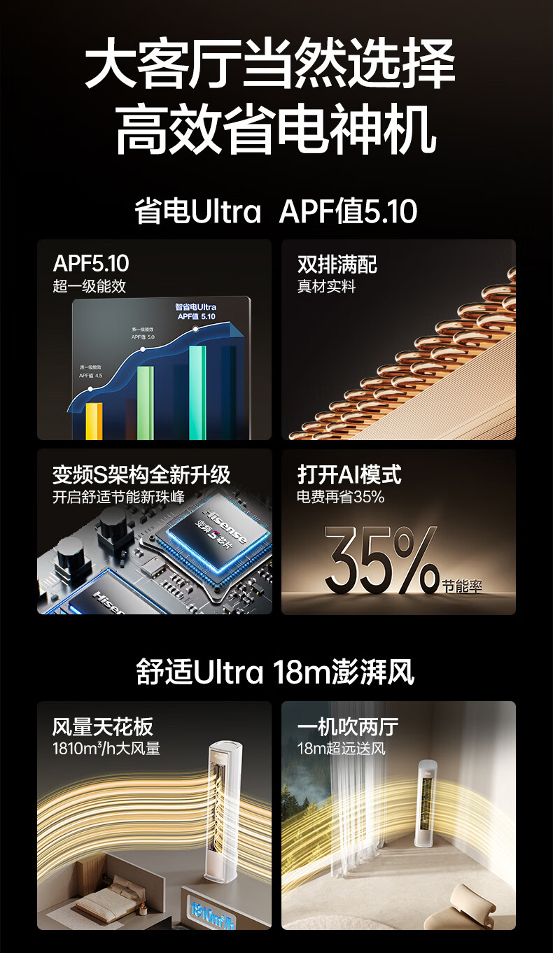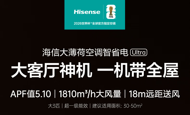 海信大薄荷空调智省电Ultra 3匹 双排铜管 AI省电35% 世界杯定制空调 1级能效KFR-72LW/E370Pro-X1