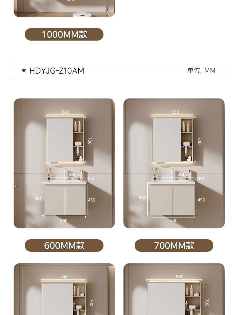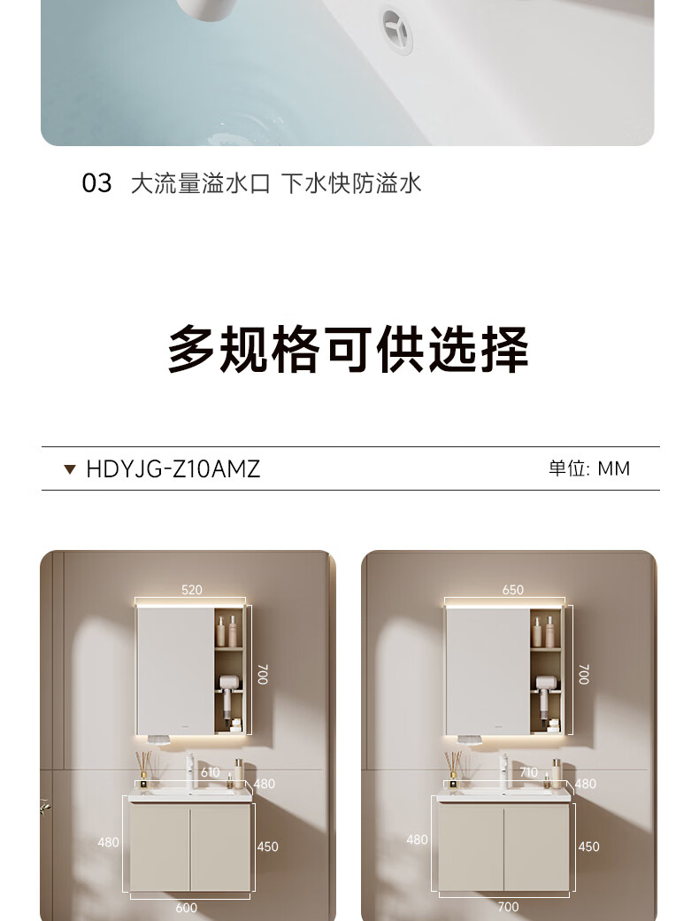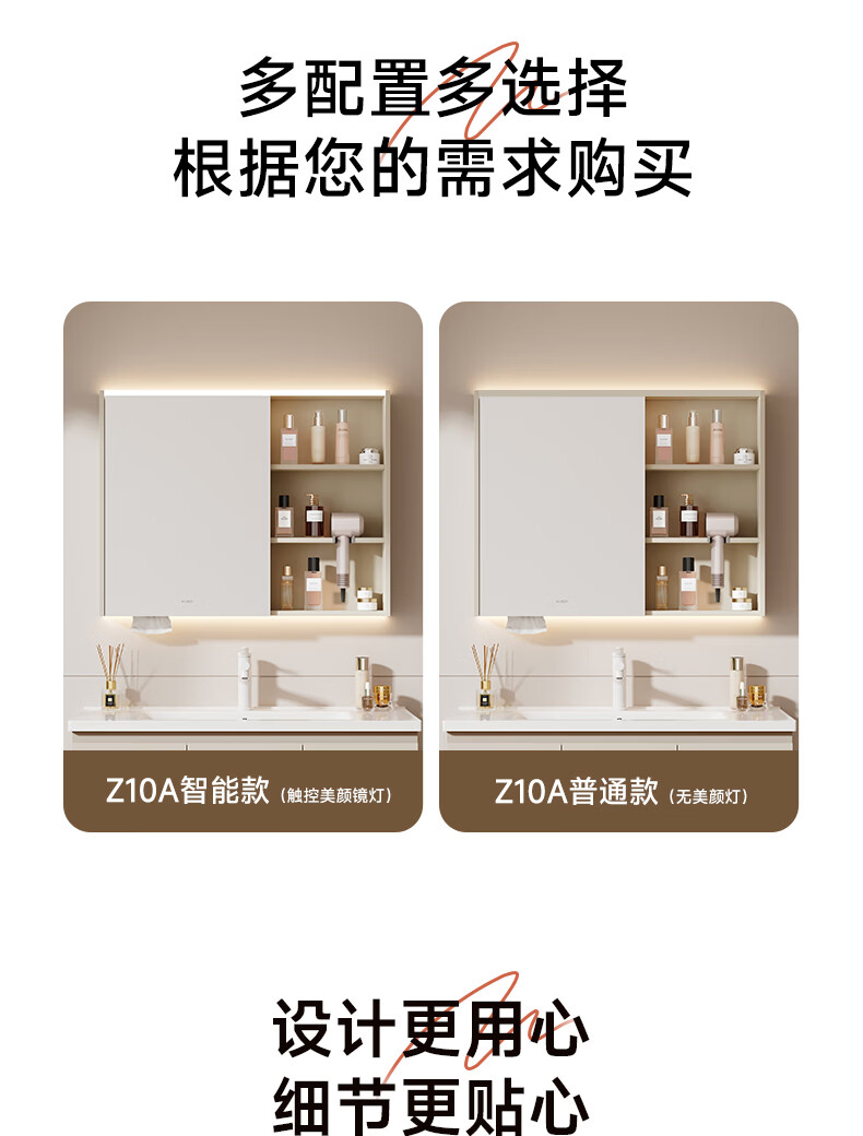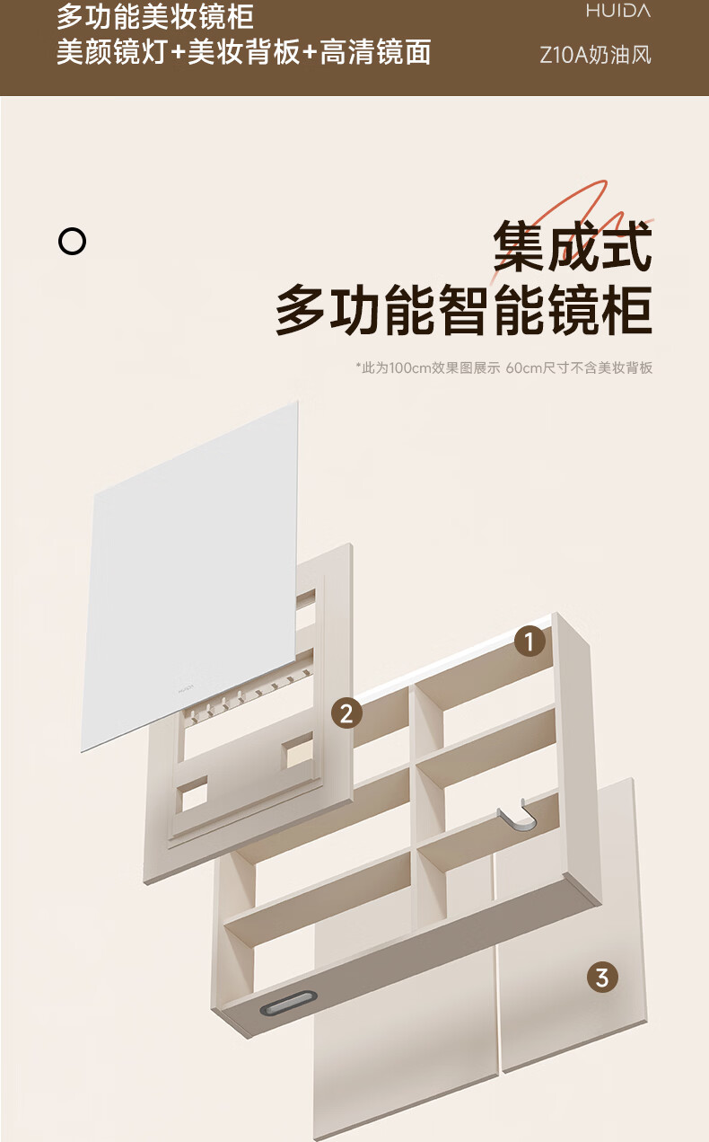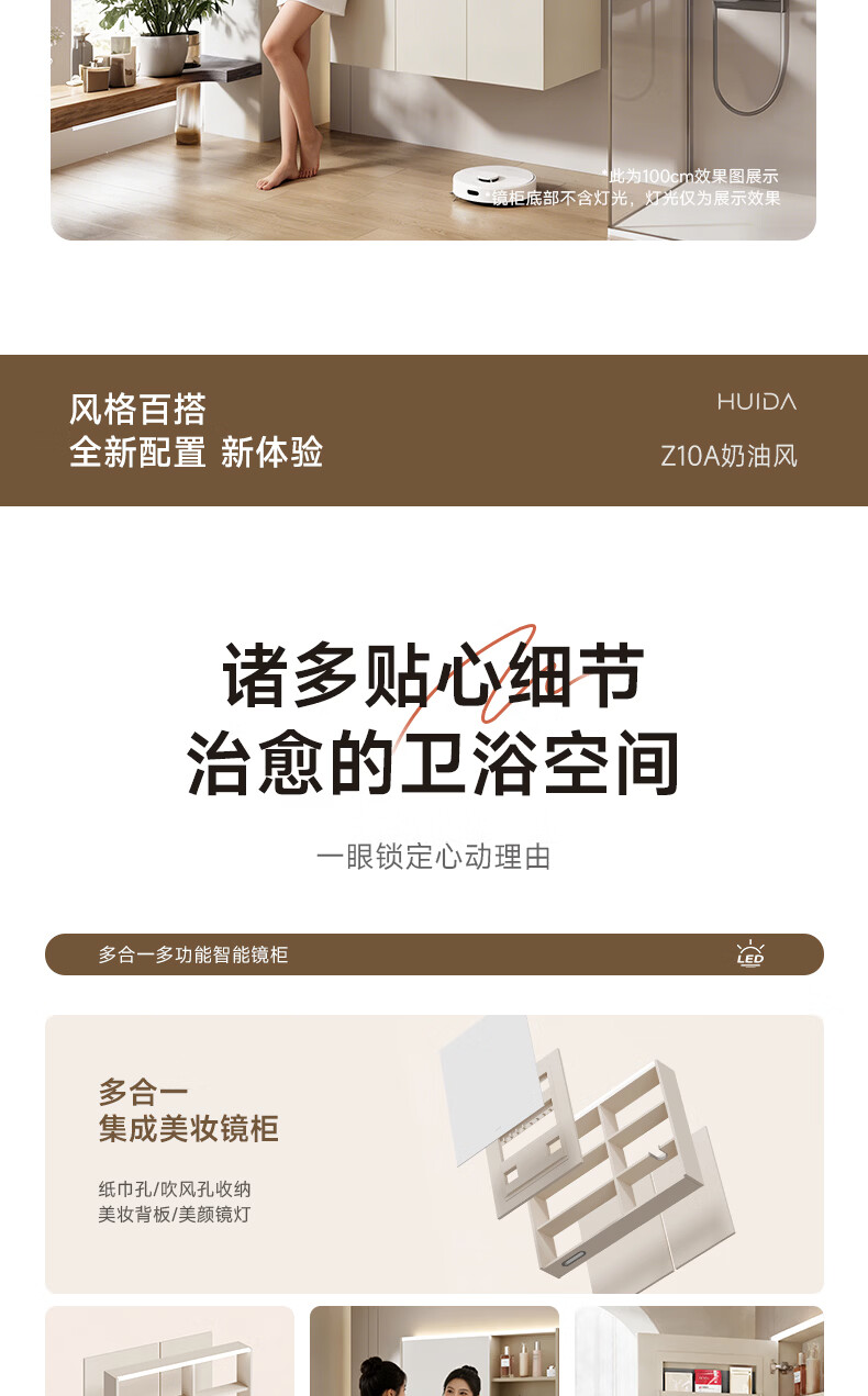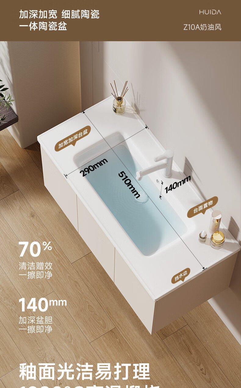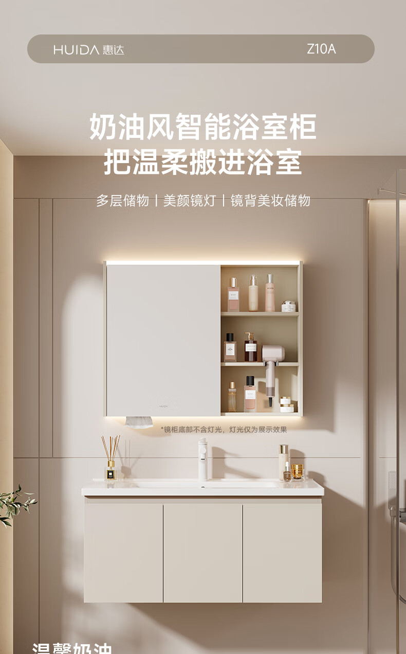 惠达(HUIDA)智能浴室柜 陶瓷一体盆卫生间洗脸盆柜组合Z10AMZ(T216升级款) 70cm卡其色【智能镜柜】