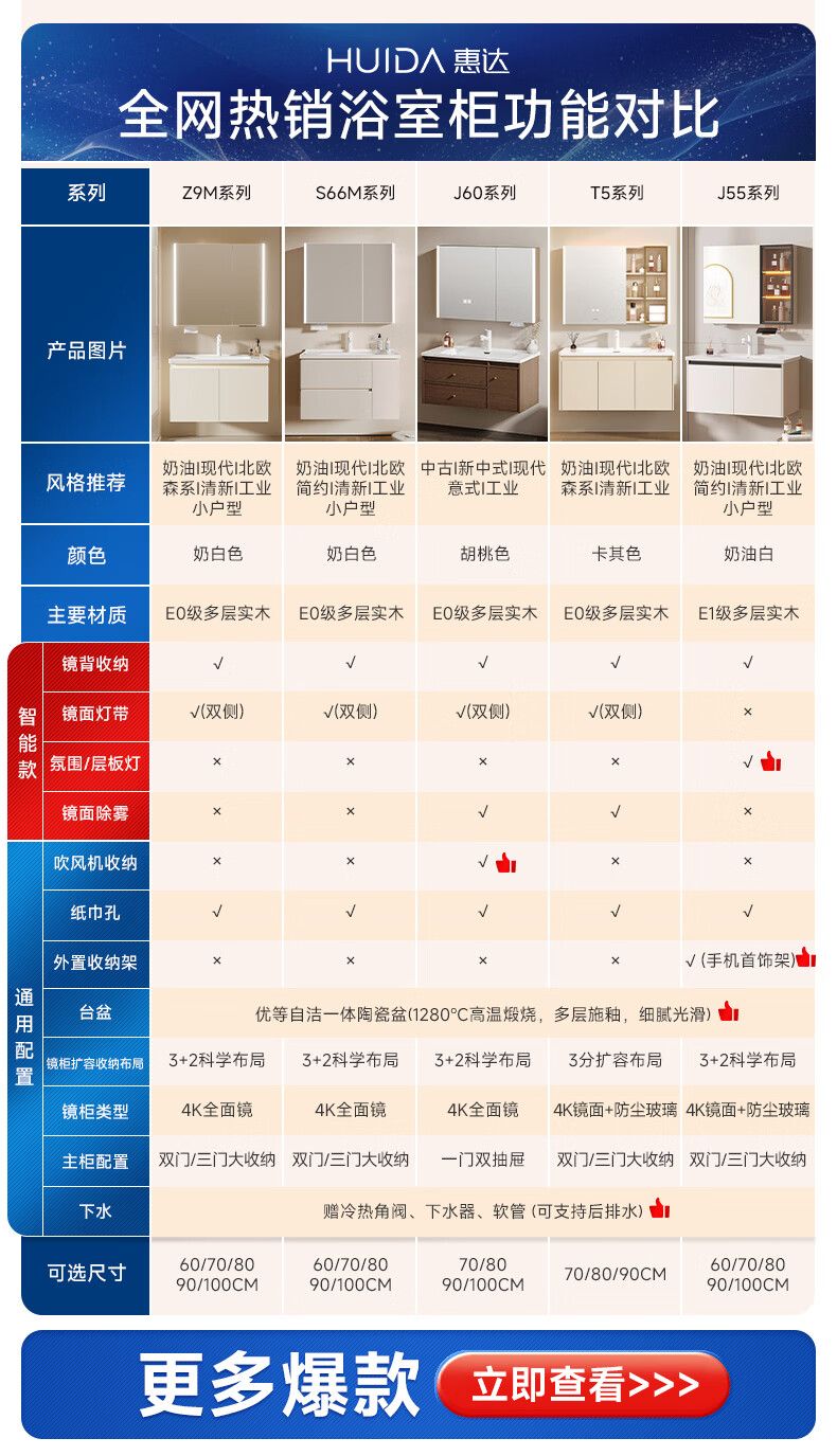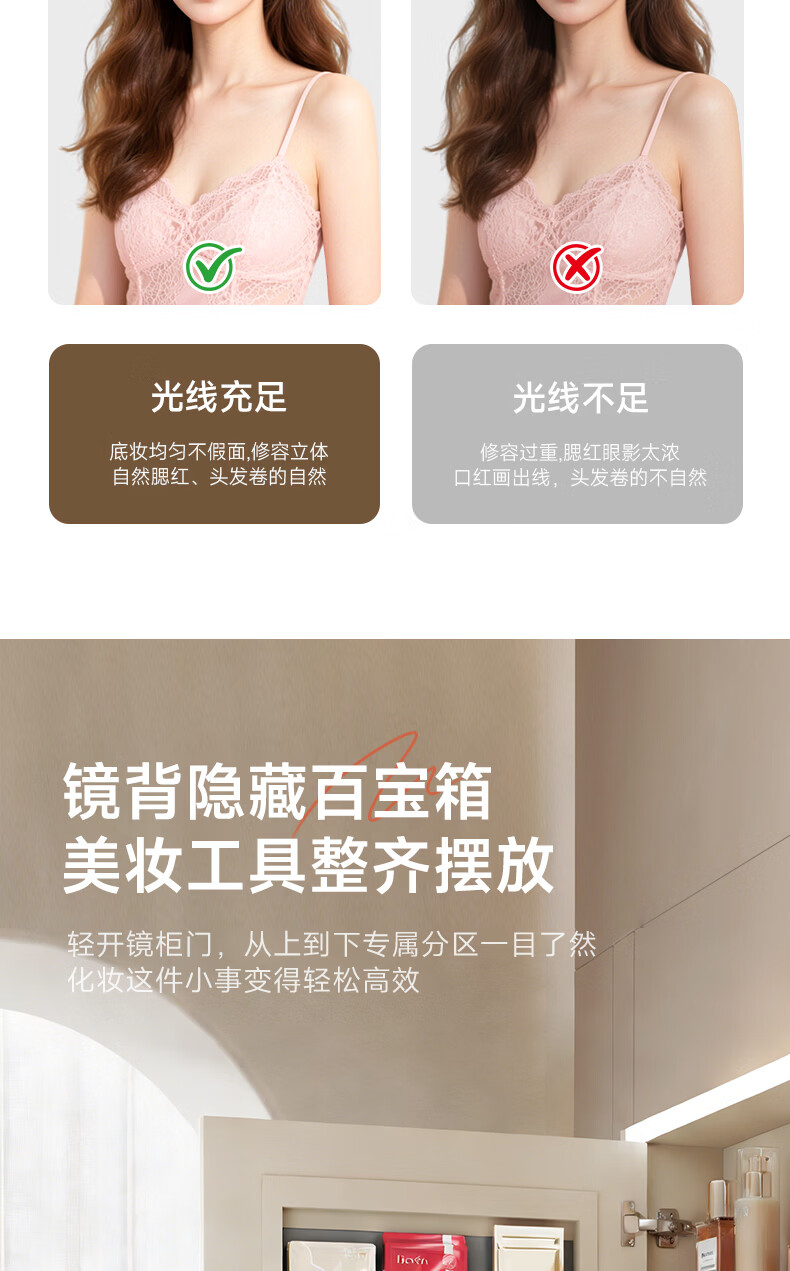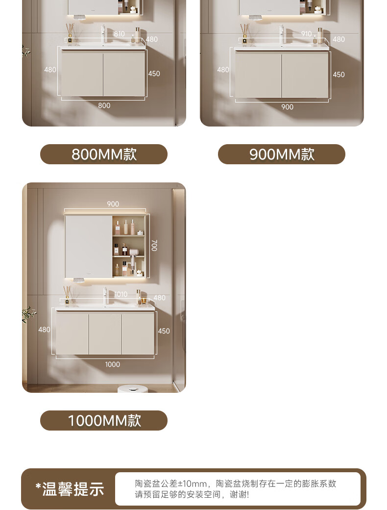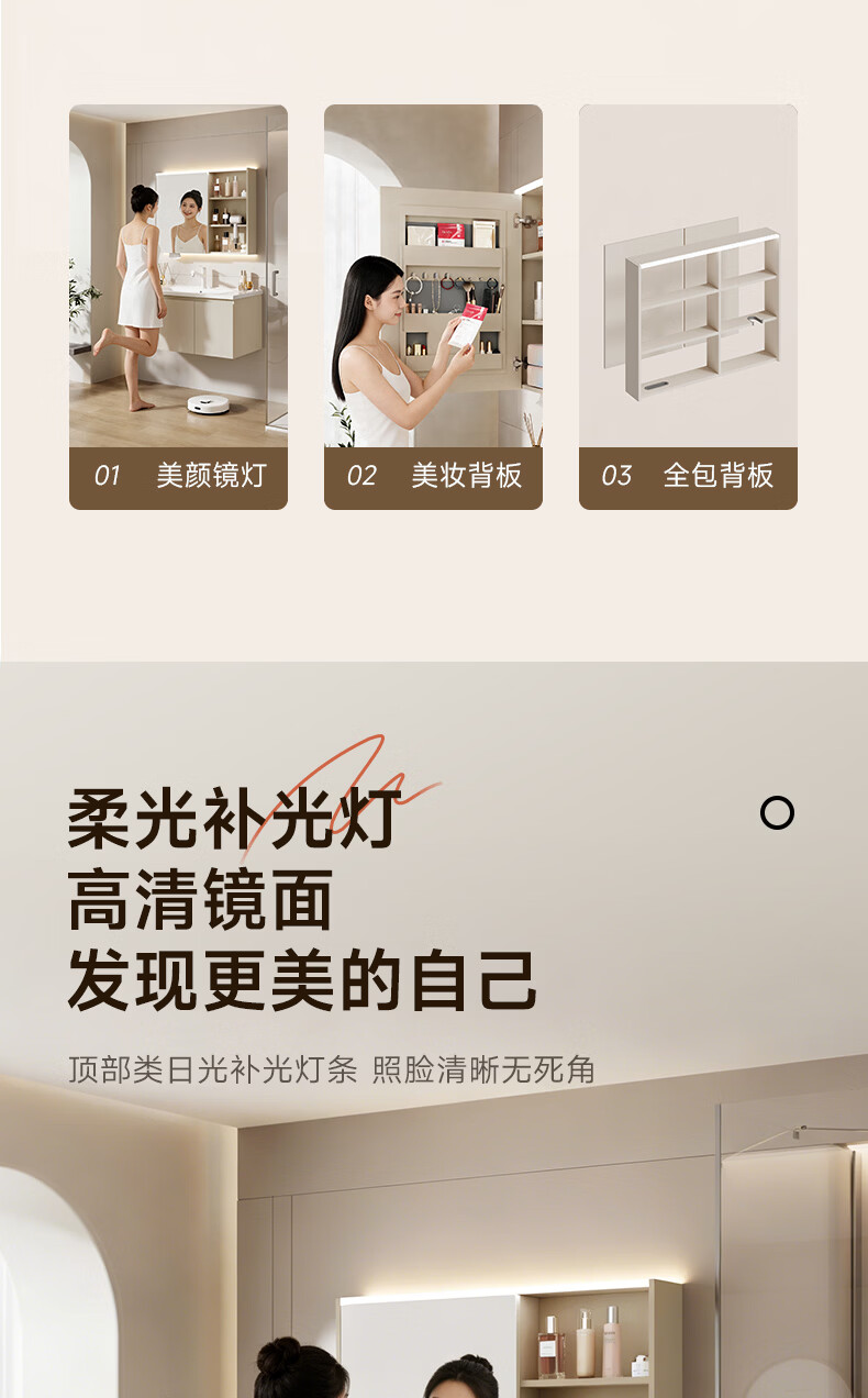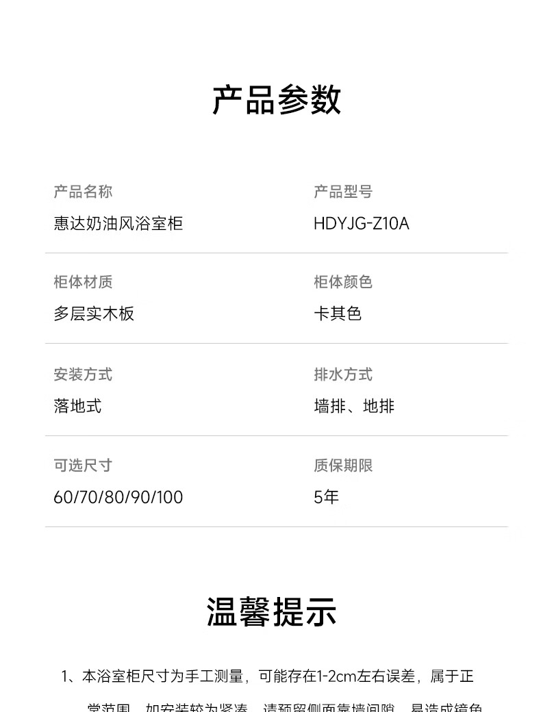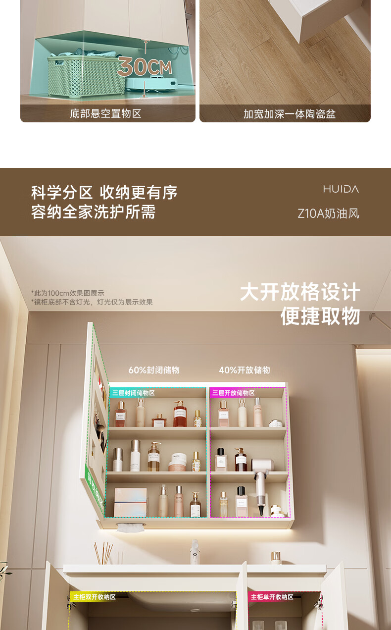 惠达(HUIDA)智能浴室柜 陶瓷一体盆卫生间洗脸盆柜组合Z10AMZ(T216升级款) 70cm卡其色【智能镜柜】