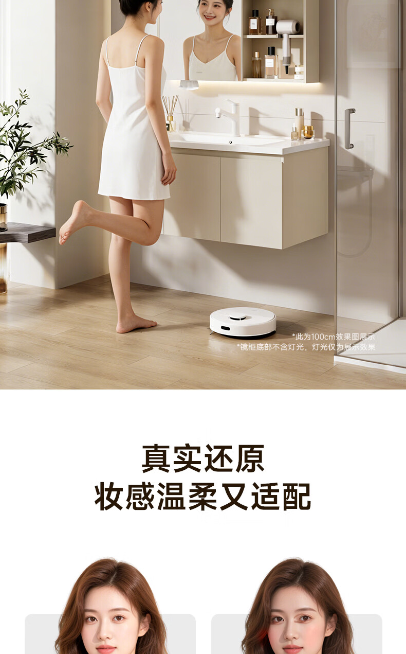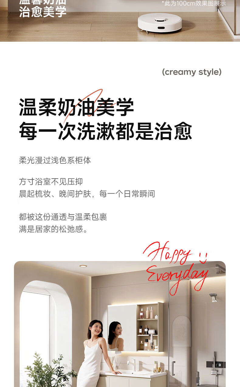 浴美优品洗衣机柜一体水盆组合阳台卫生间智能洗漱洗脸岩板洗手台盆定制 120cm智能圆镜+侧边柜+岩板陶瓷盆 【送安装】