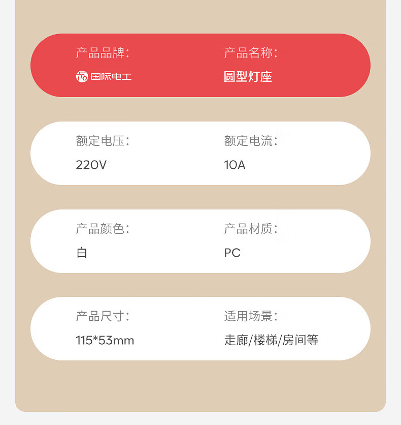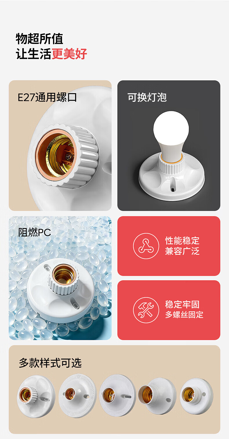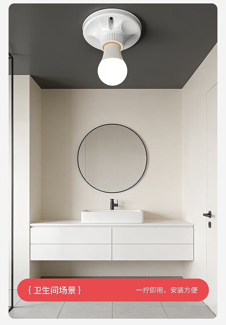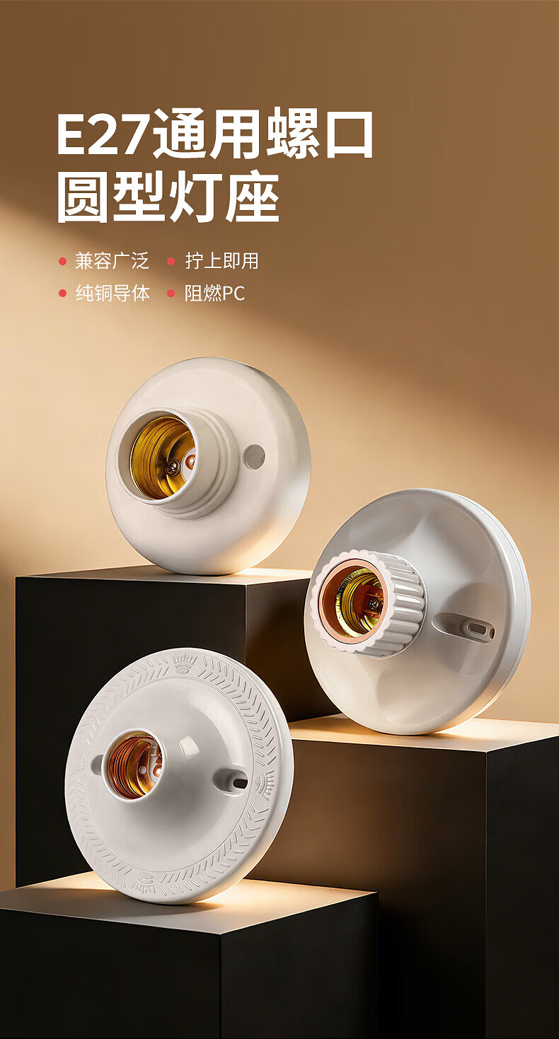 国际电工(FDD)灯头灯座家用E27螺口通用型明装可控LED节能灯泡明线螺纹电灯底座 (中号)圆形灯座 1只装