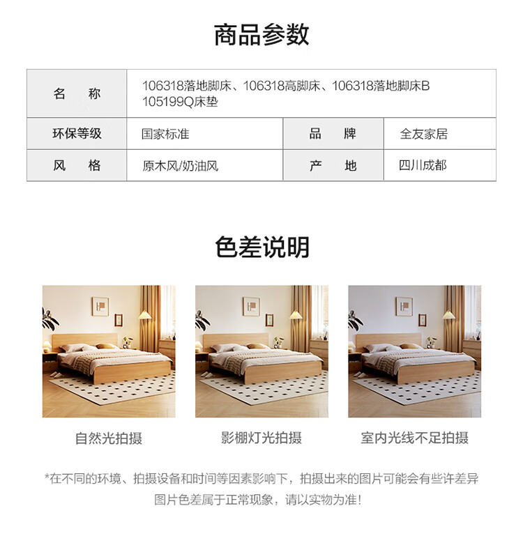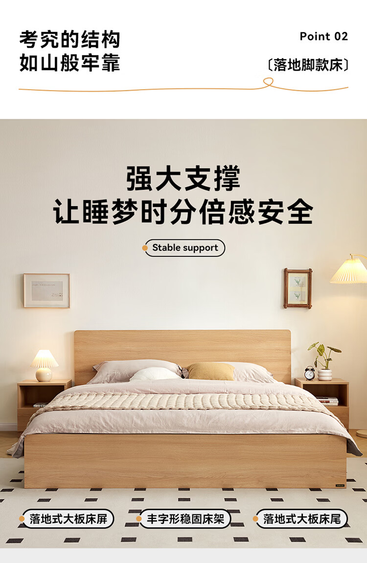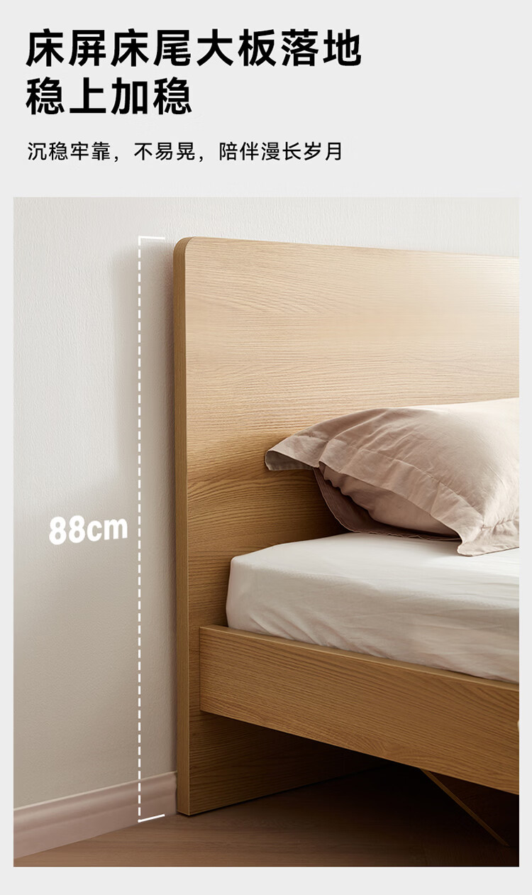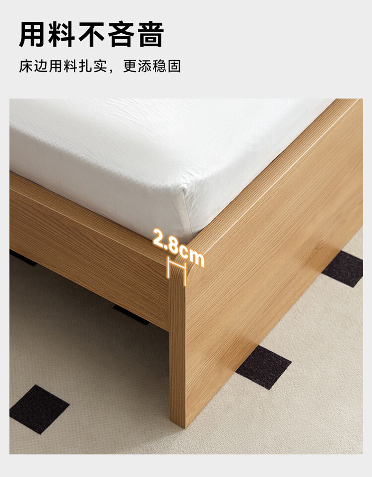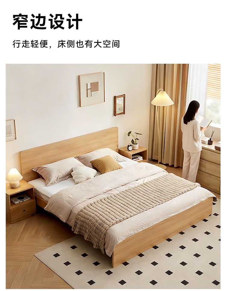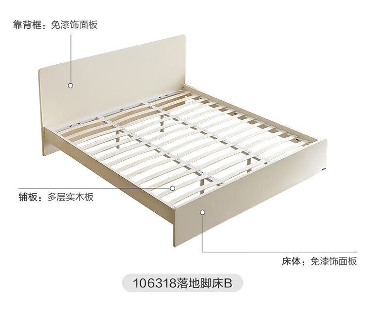全友家居奶油风单人板式床小户型主卧室1.5米X2米高箱储物收纳双人床 【象牙白 | 常规落地脚款 】床+床垫 1.2x2米