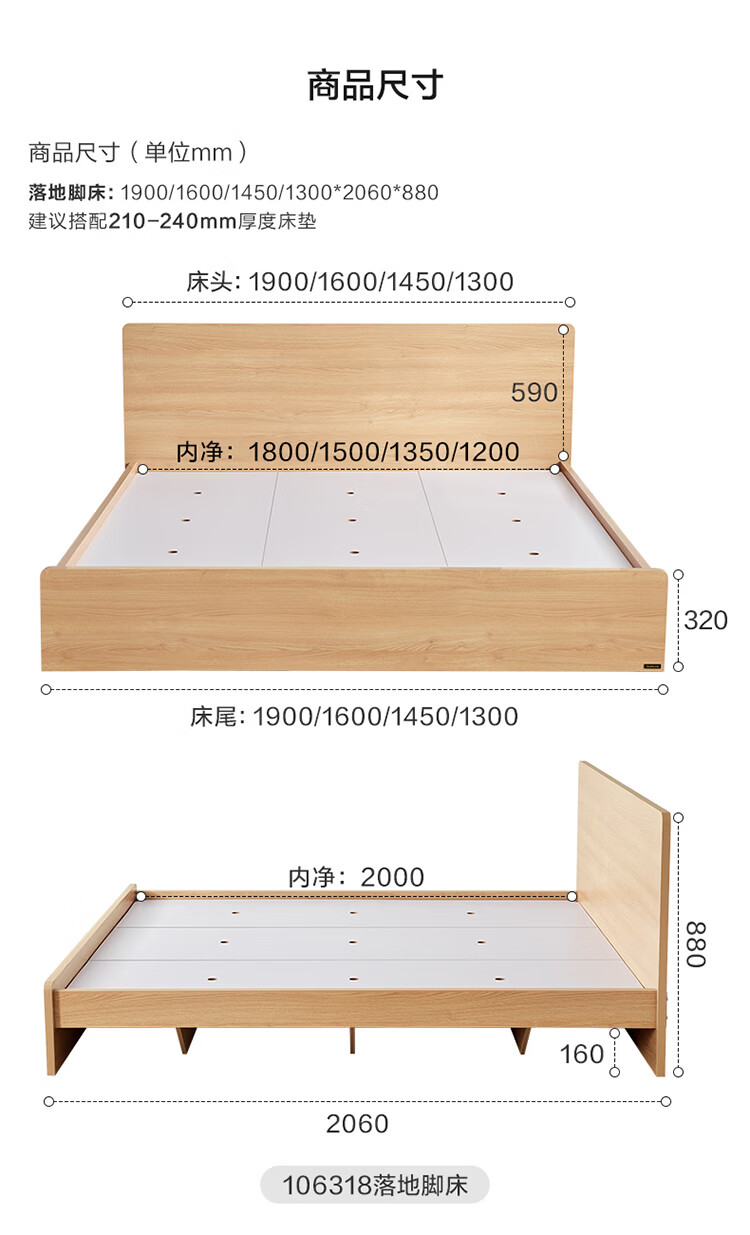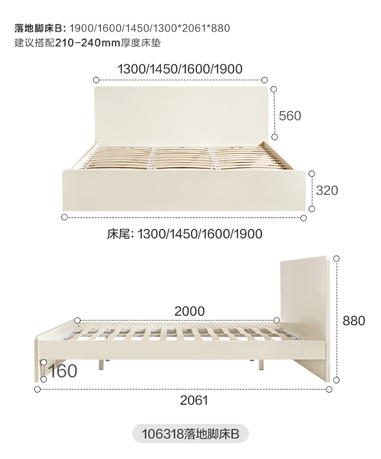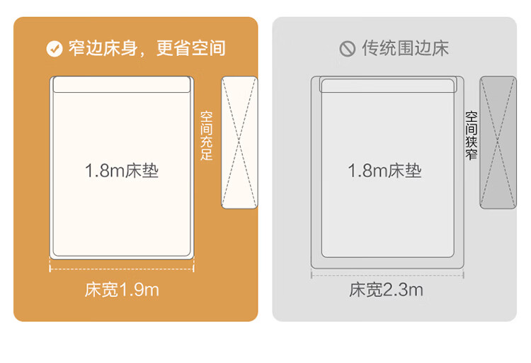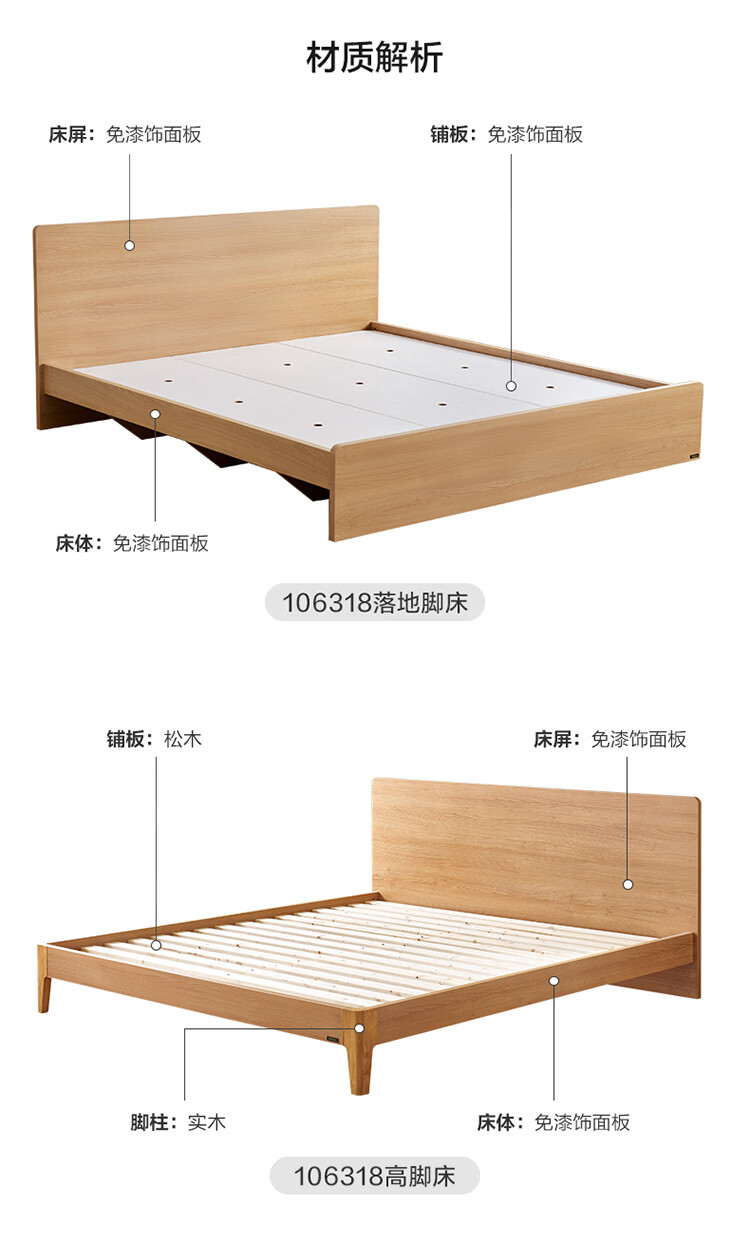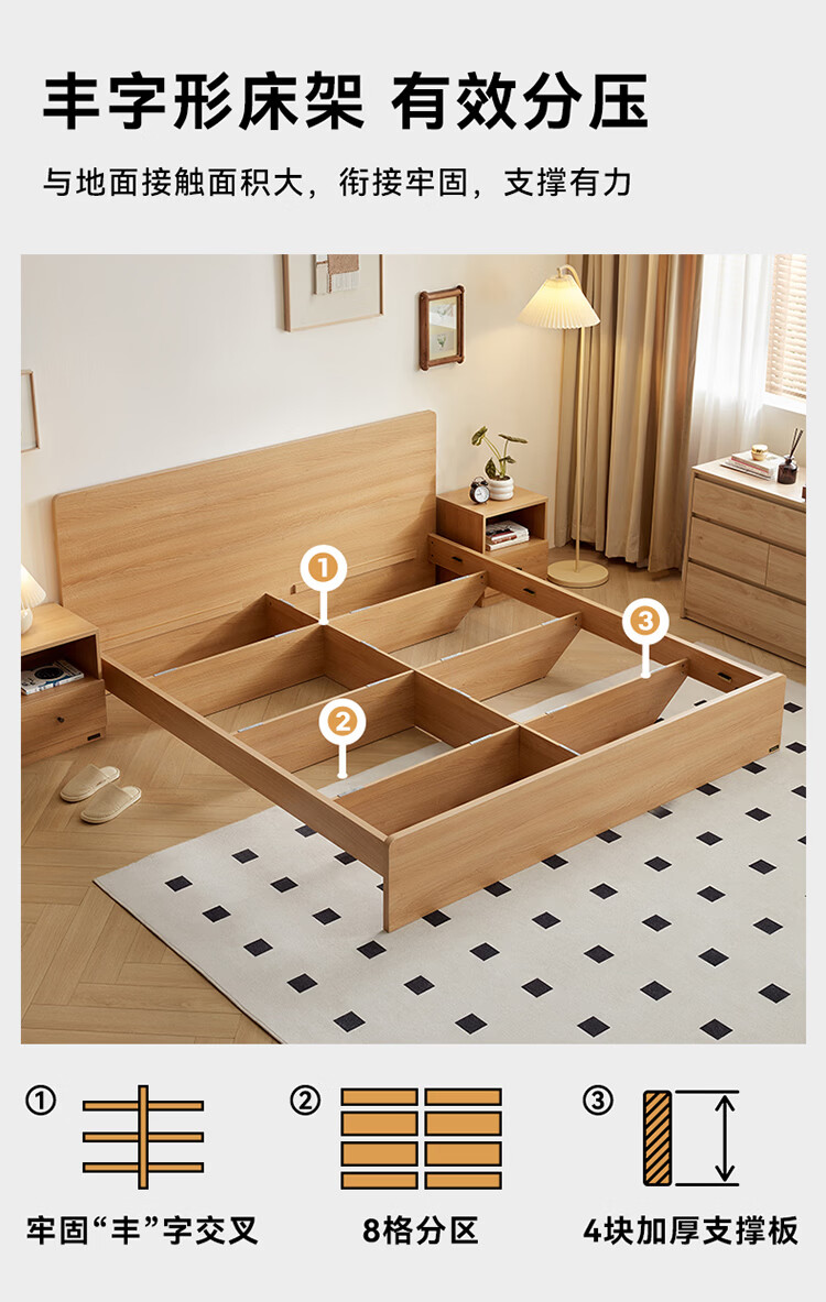 全友家居奶油风单人板式床小户型主卧室1.5米X2米高箱储物收纳双人床 【象牙白 | 常规落地脚款 】床+床垫 1.2x2米