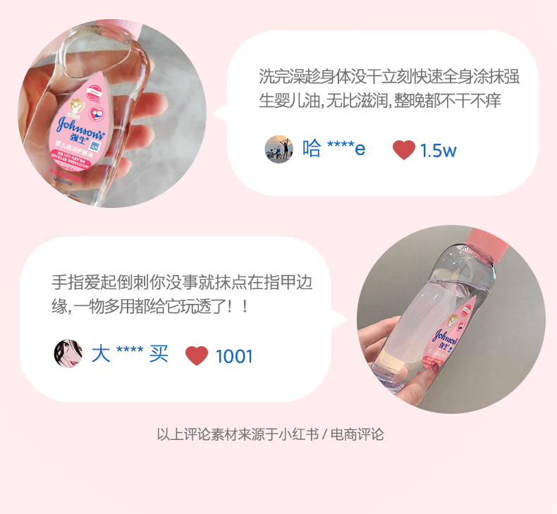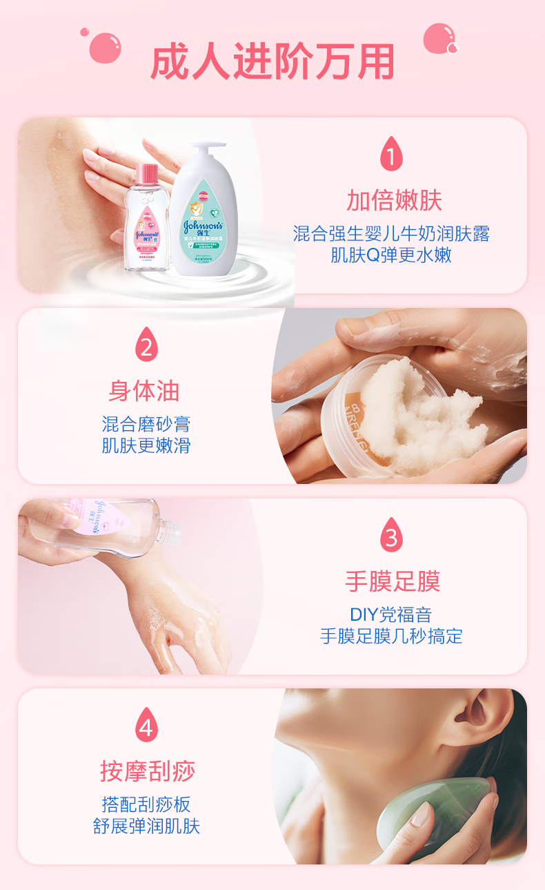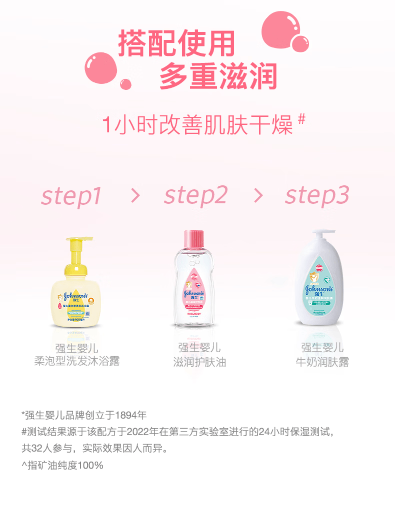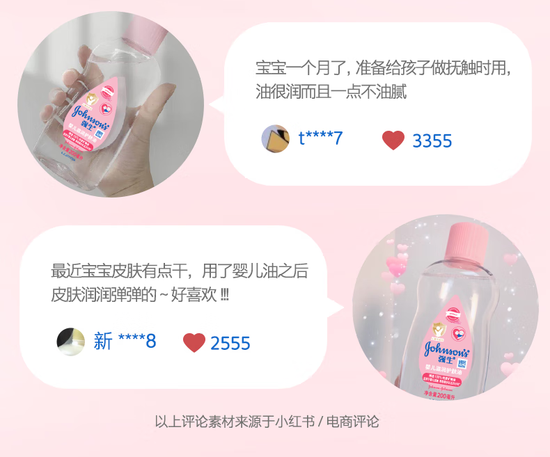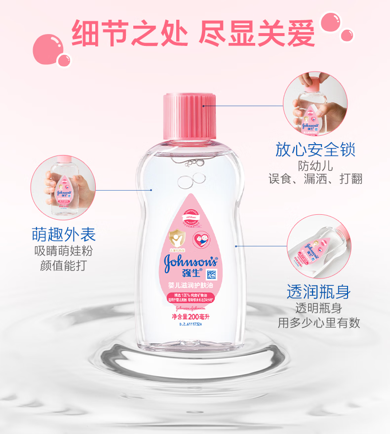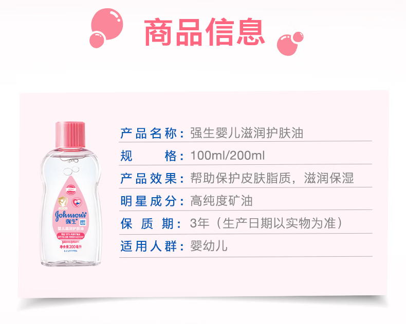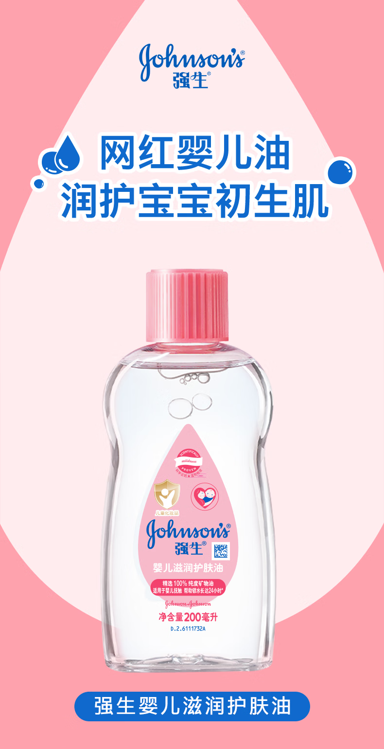 强生(Johnson)婴儿抚触油200ml*2 新生儿宝宝保湿护肤按摩润肤护发身体精油