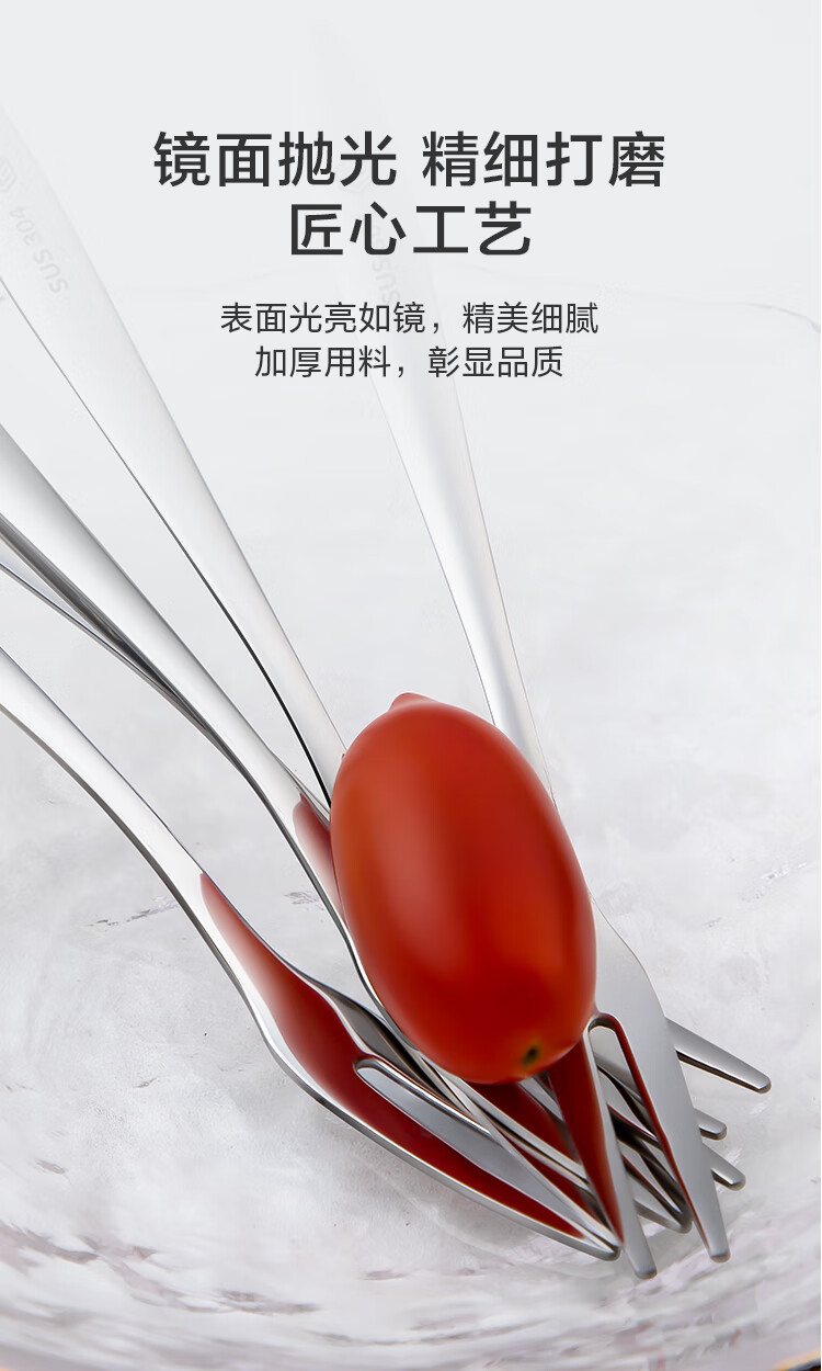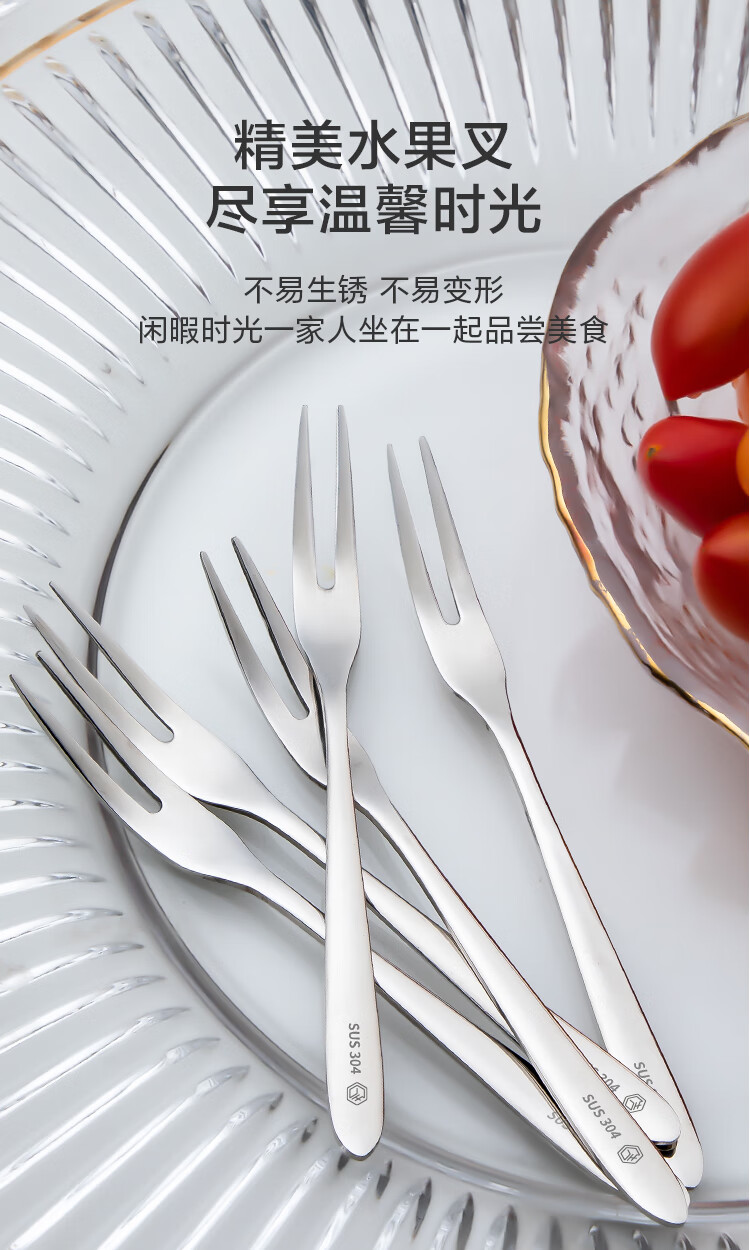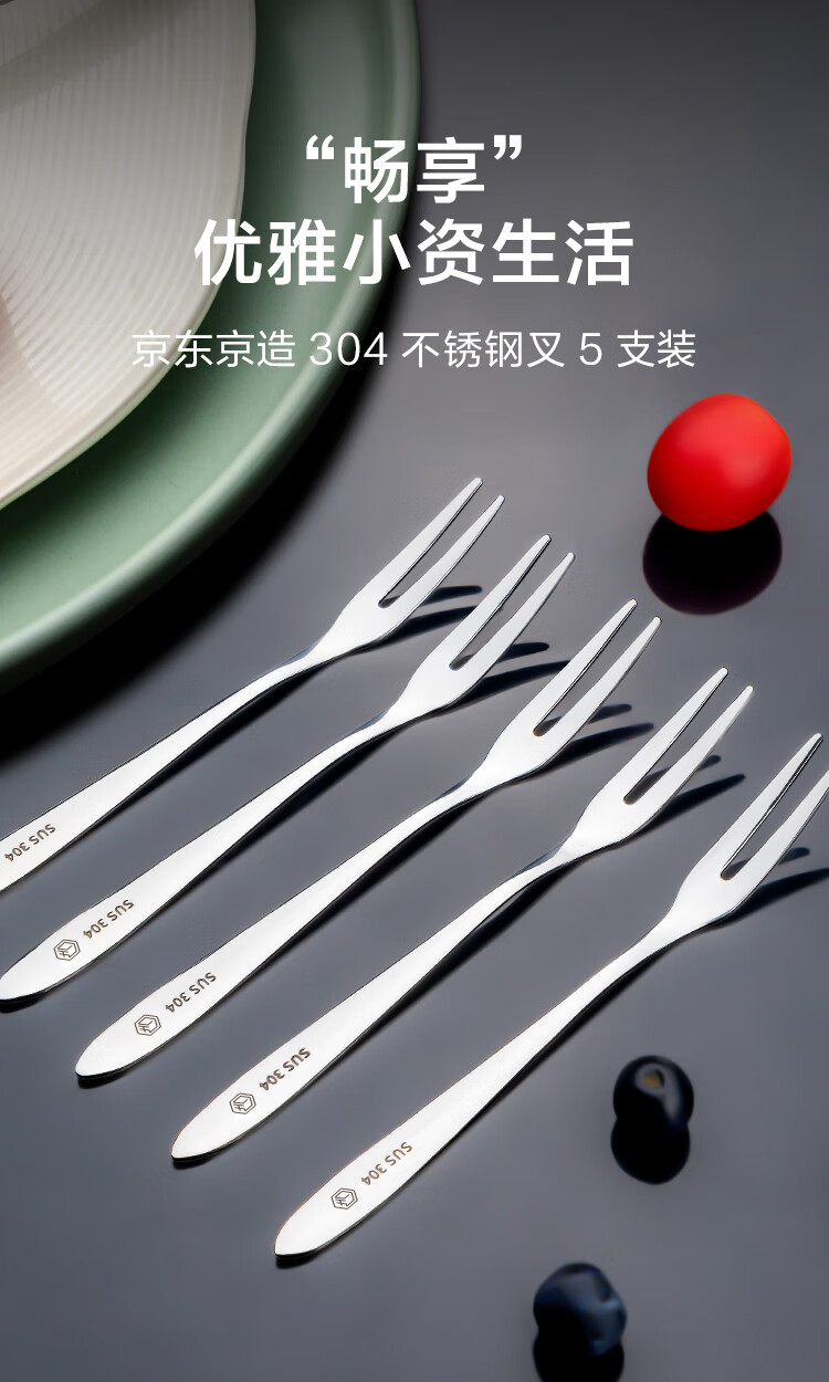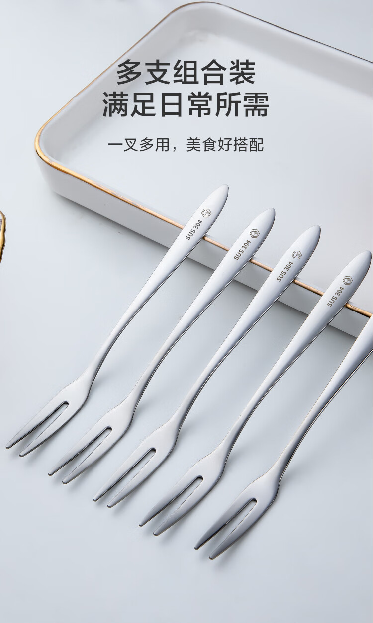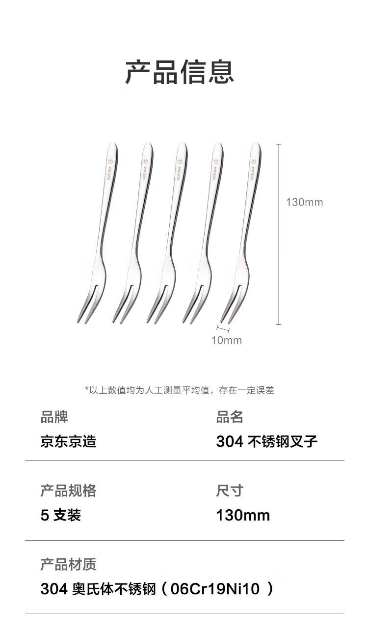 京东京造 叉子 水果叉牛排西餐餐具套装不锈钢【加长叉头】5只装